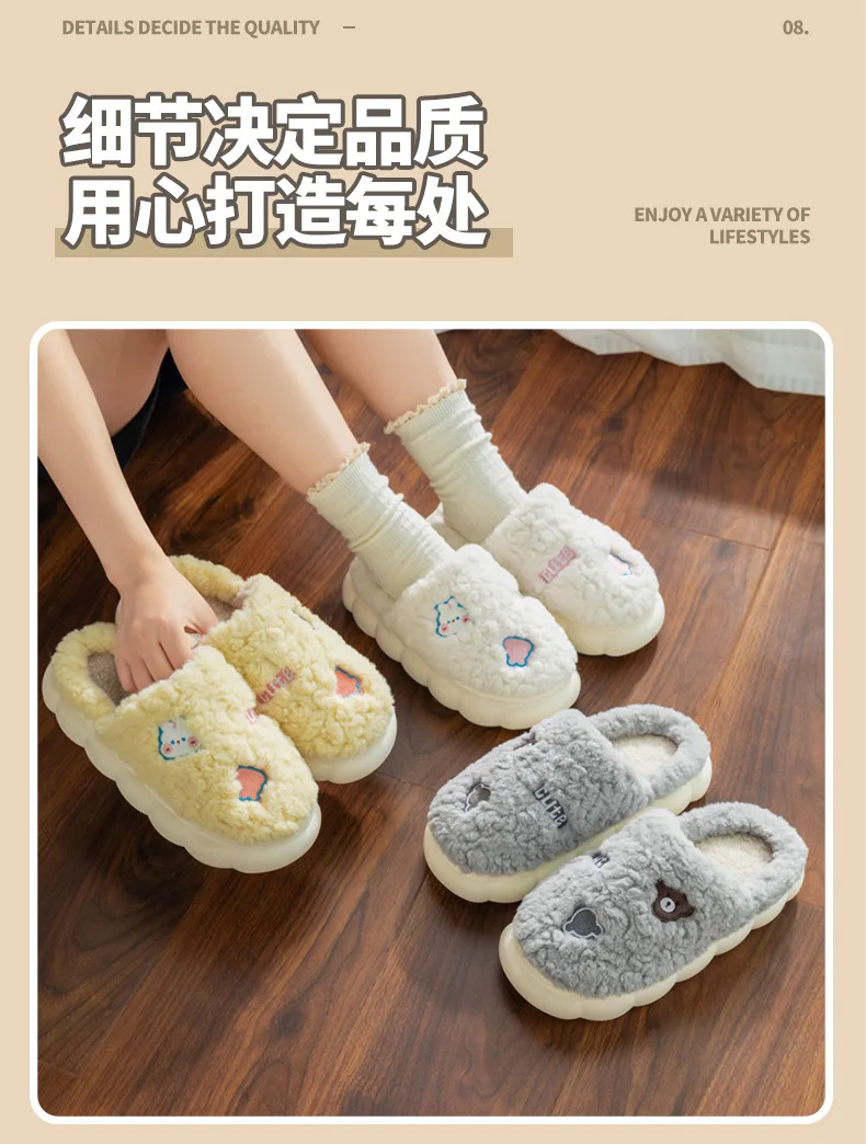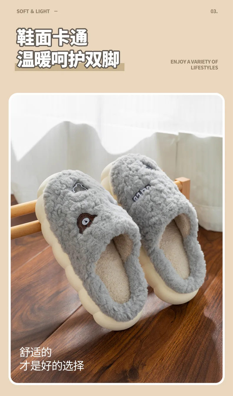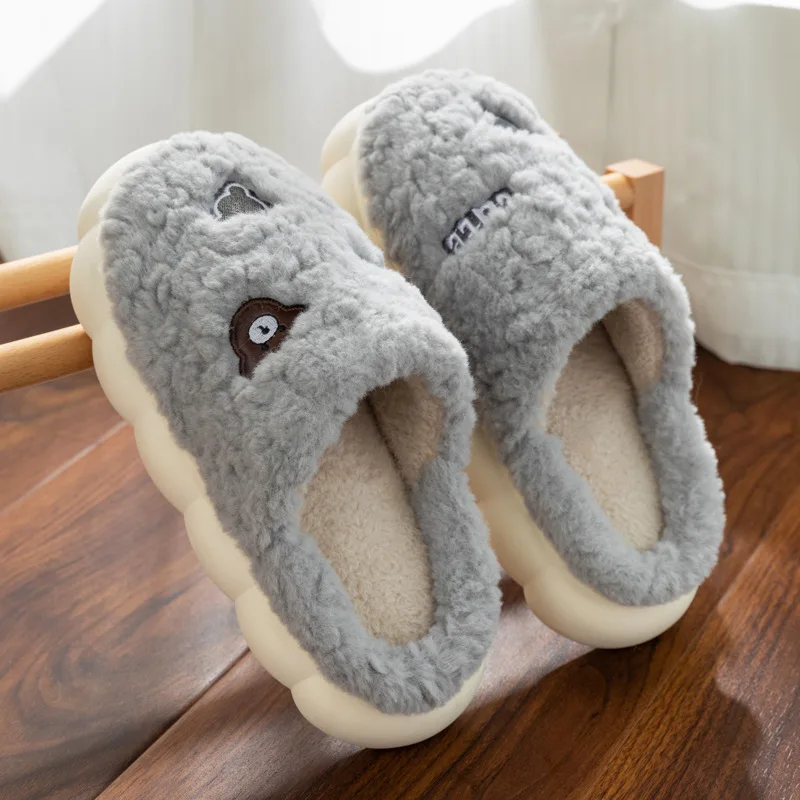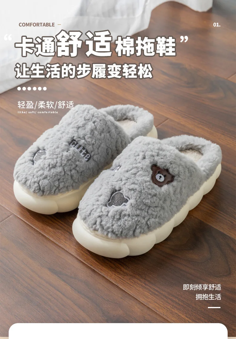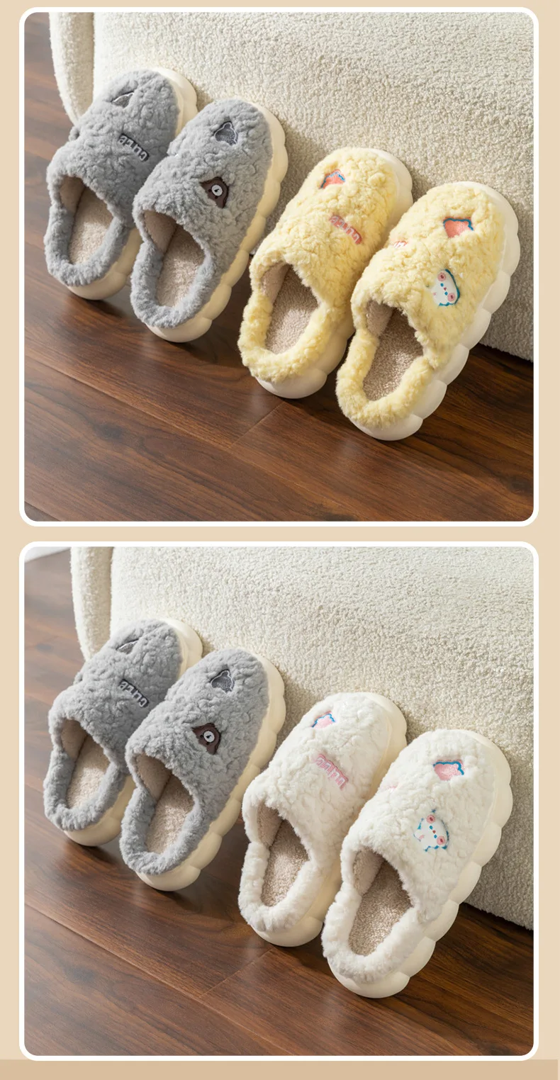 Cartoon Couple Plush Cotton Slippers for Women Autumn and Winter New Home, Indoor Household, Non slip Slippers for Men