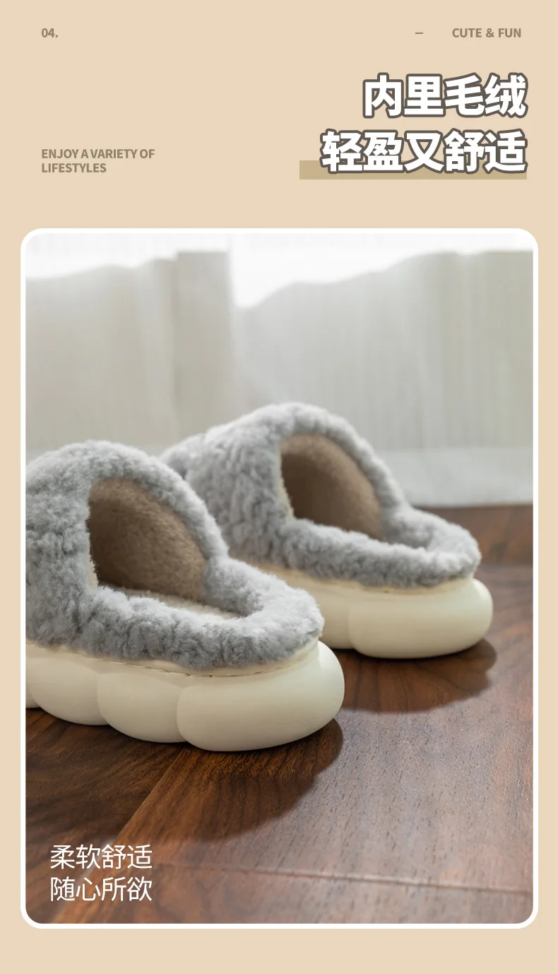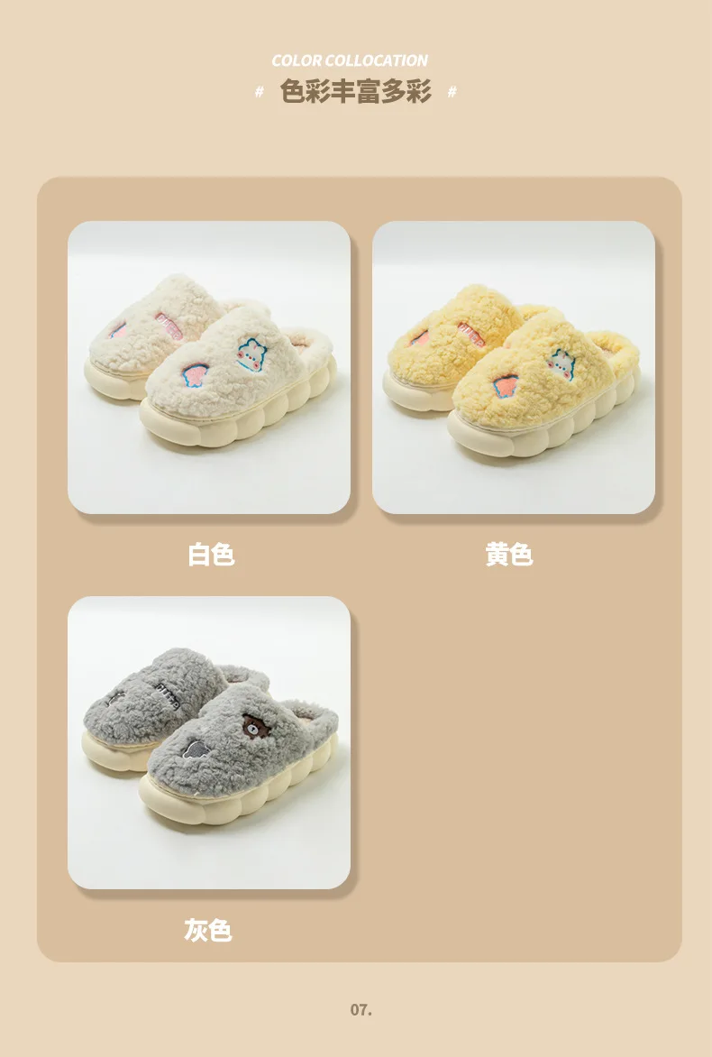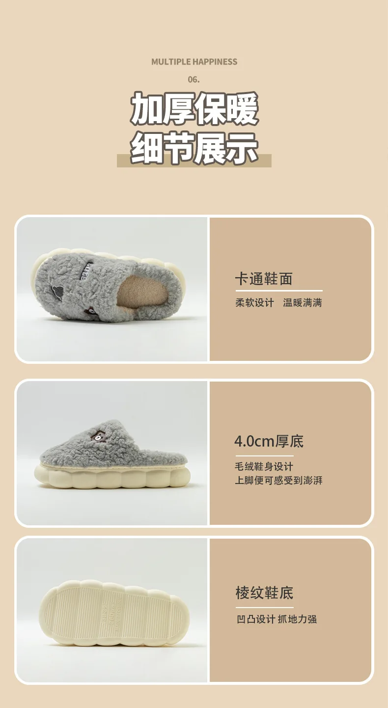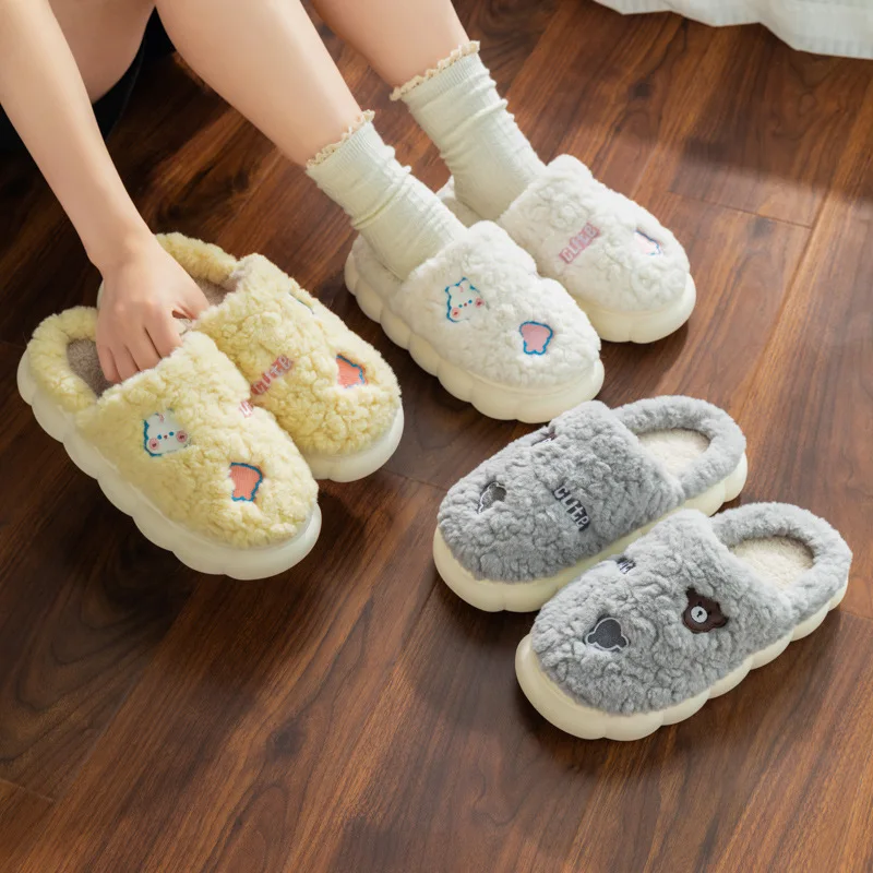 Cartoon Couple Plush Cotton Slippers for Women Autumn and Winter New Home, Indoor Household, Non slip Slippers for Men