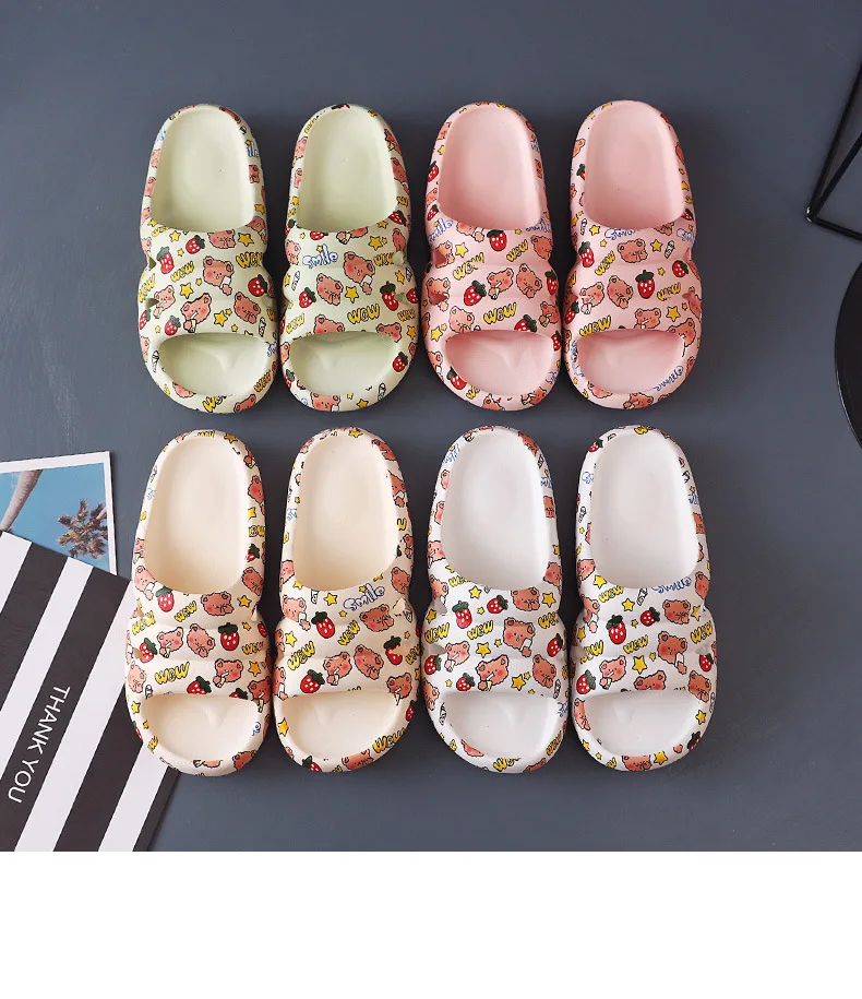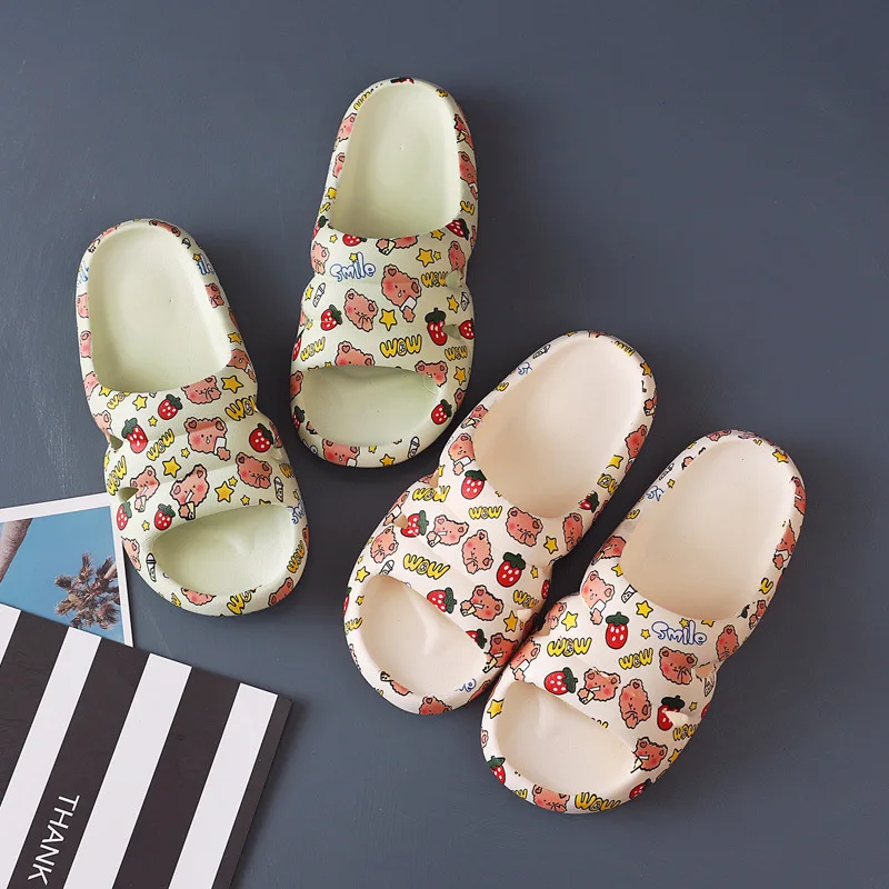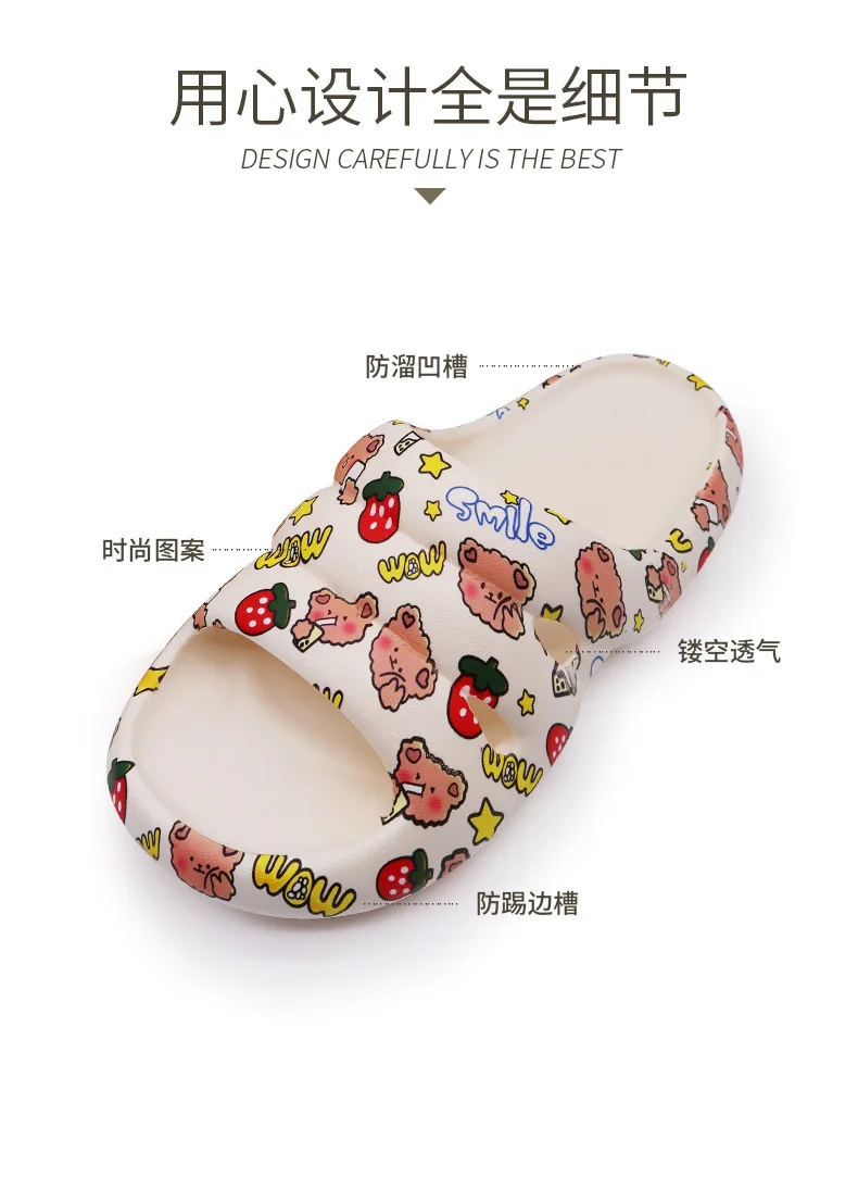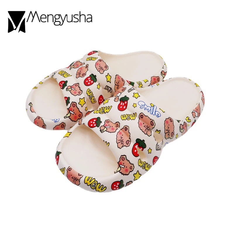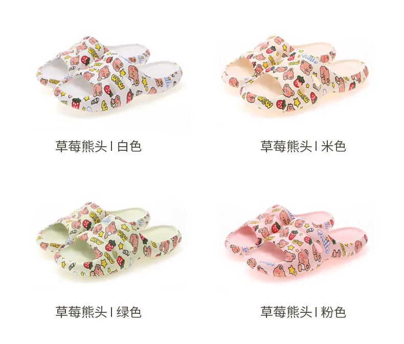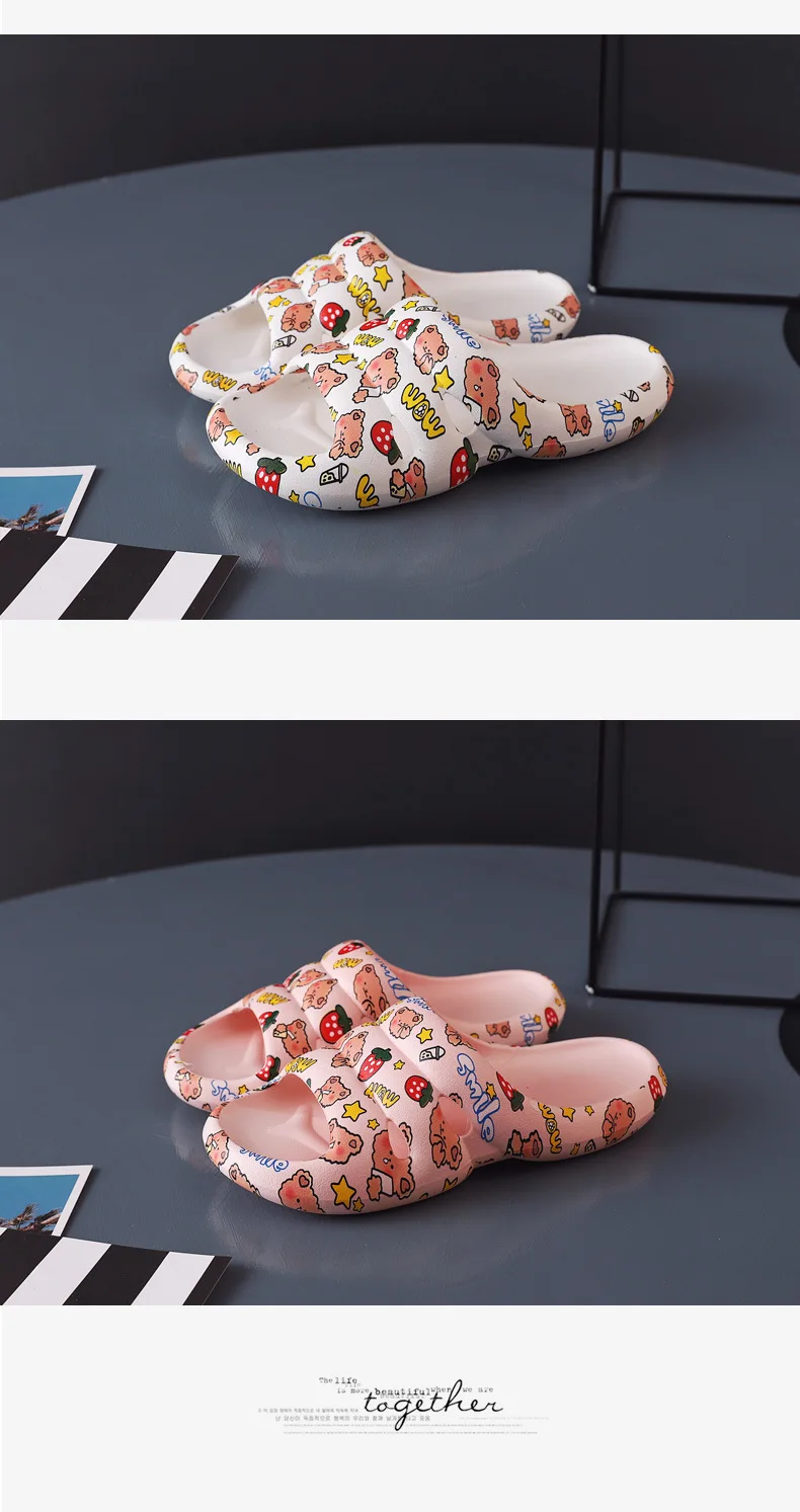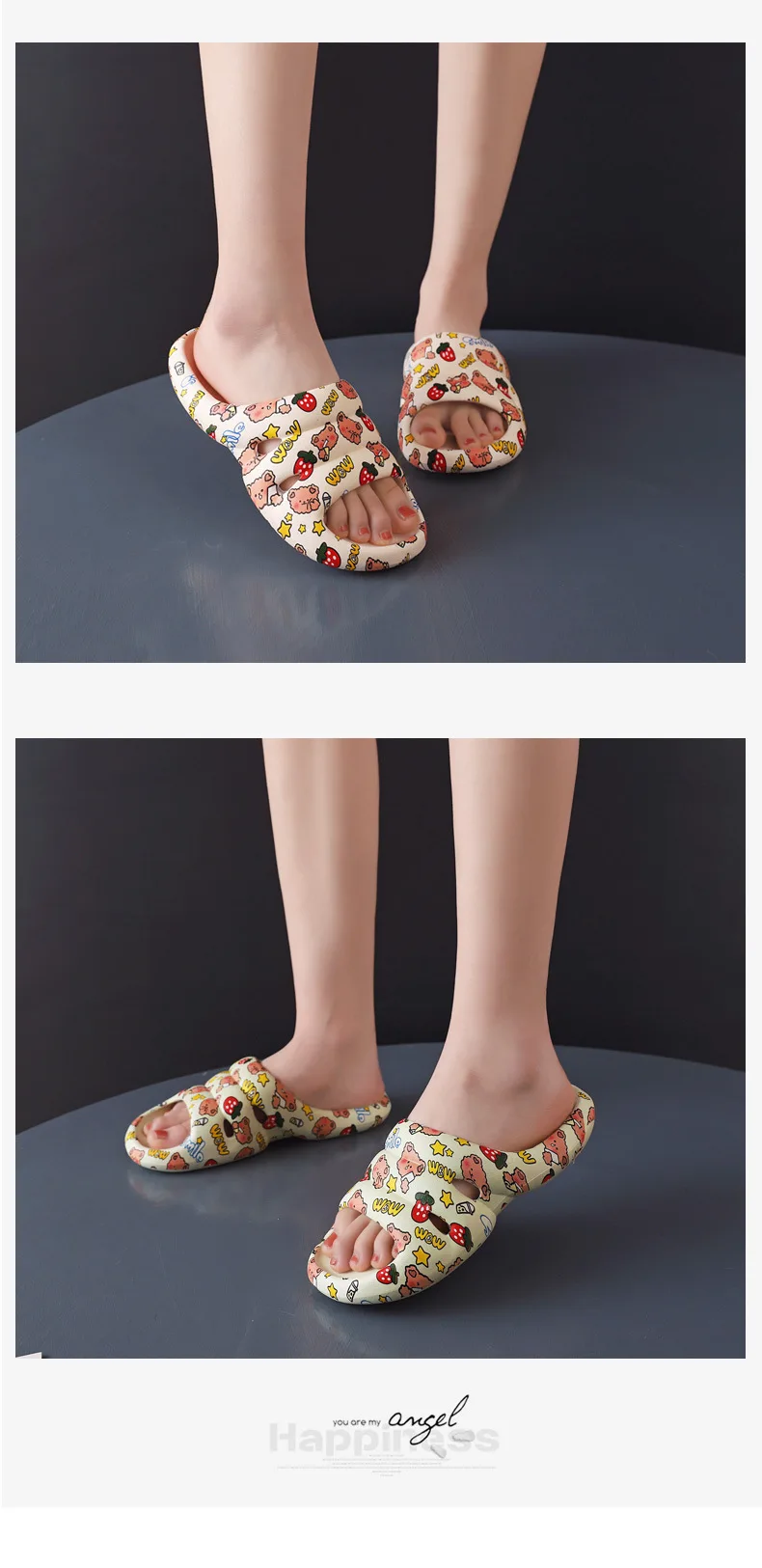 Cartoon Milk&Strawberry Shoes Girls Woman Slippers Home EVA Noiseless Sandals Soft Slip On Bathroom Slides Ladies Clog Flipflops