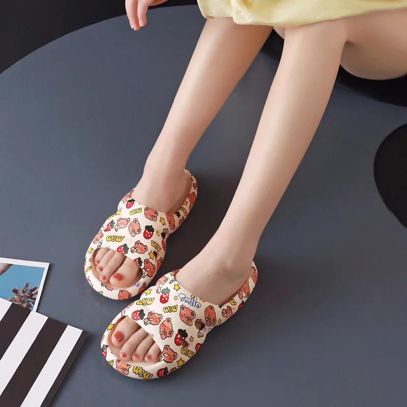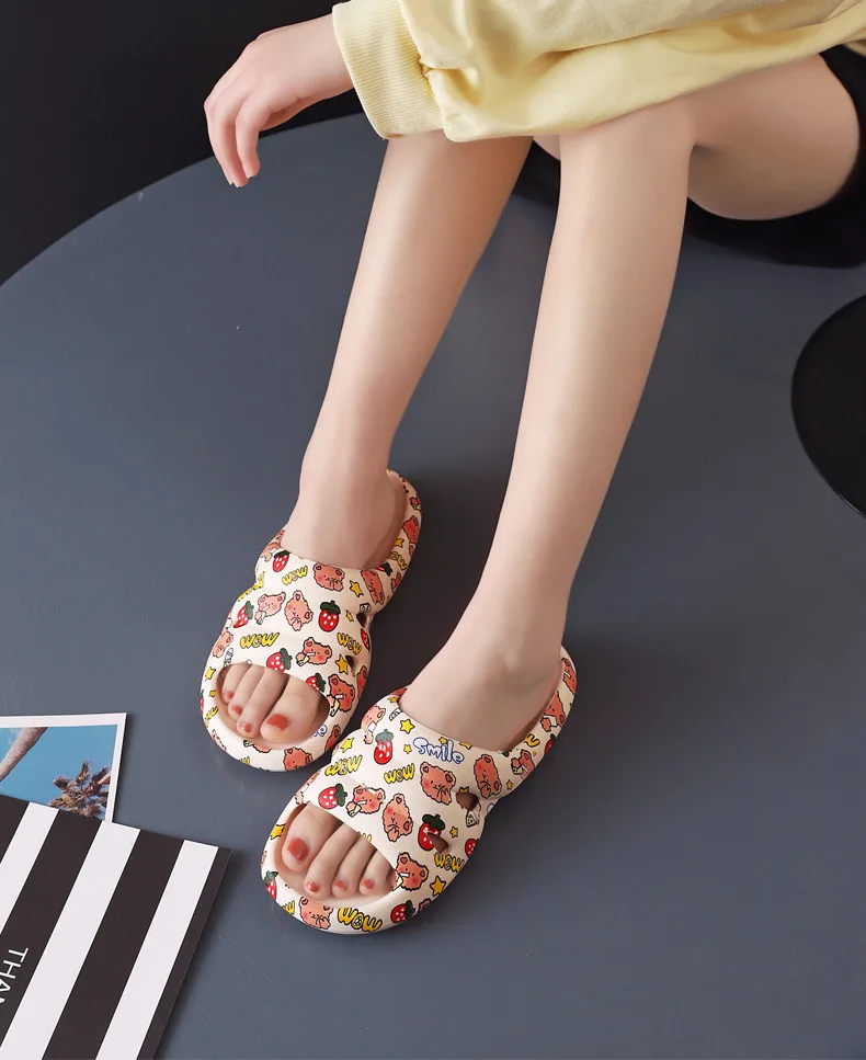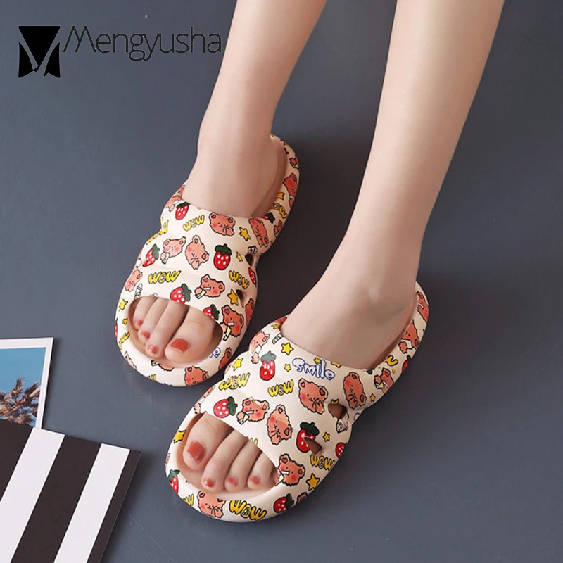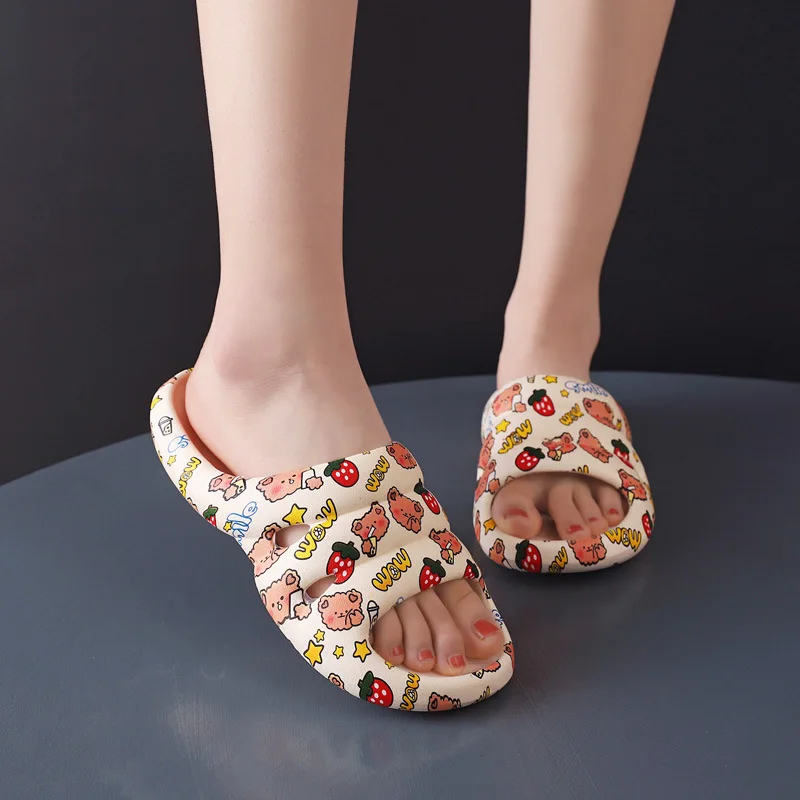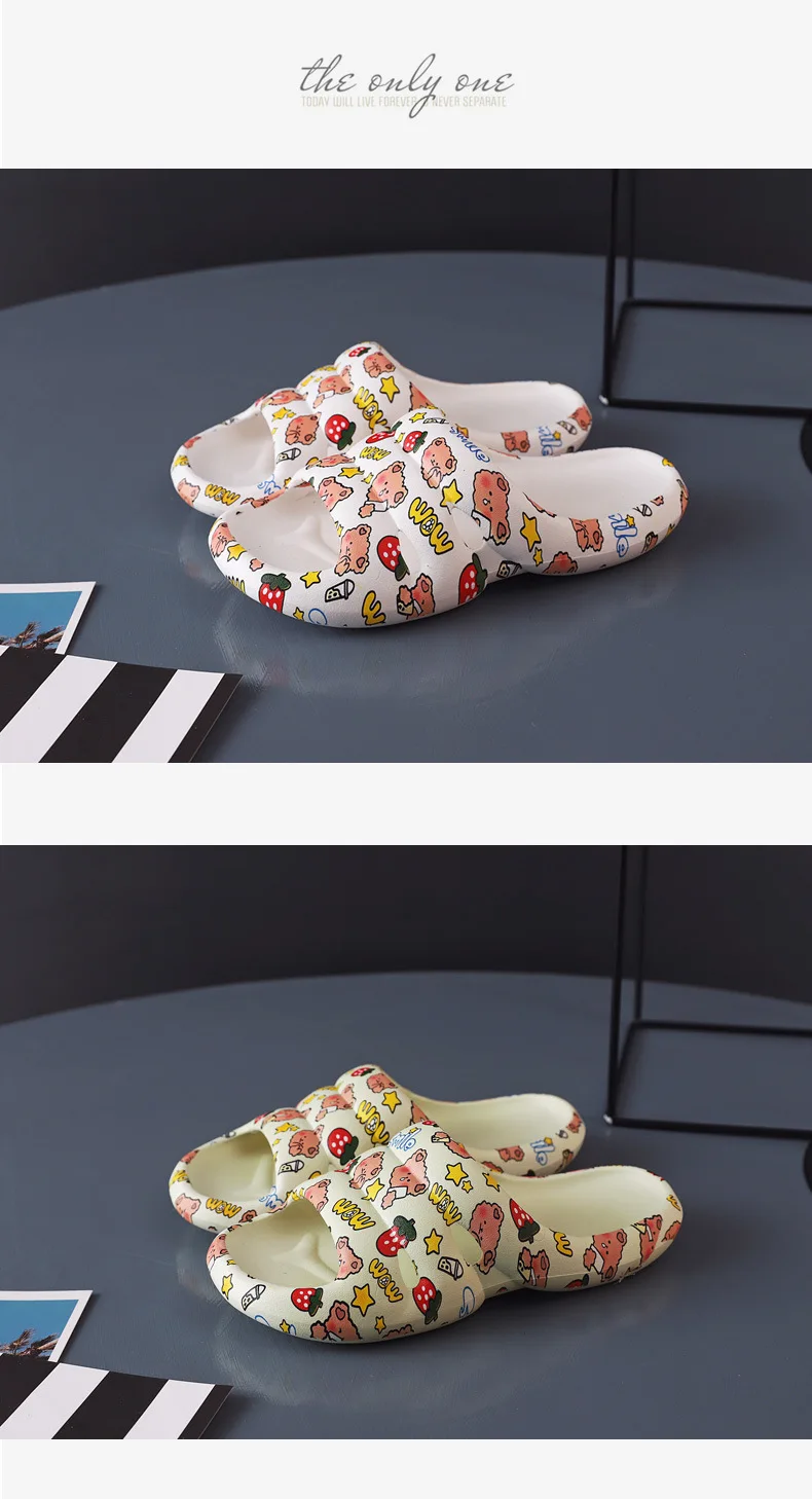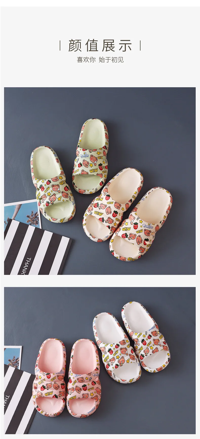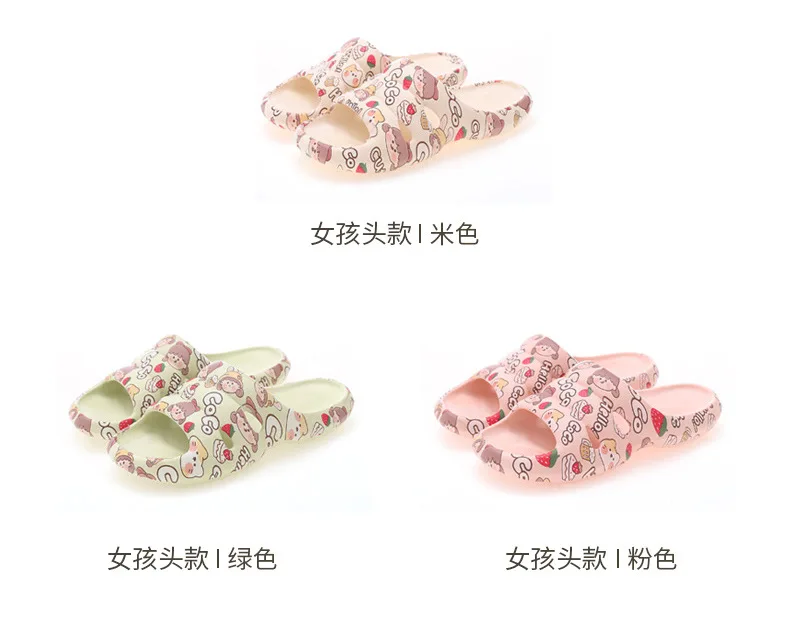 Cartoon Milk&Strawberry Shoes Girls Woman Slippers Home EVA Noiseless Sandals Soft Slip On Bathroom Slides Ladies Clog Flipflops