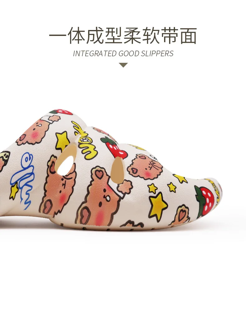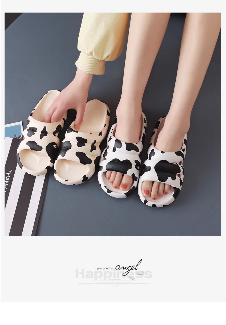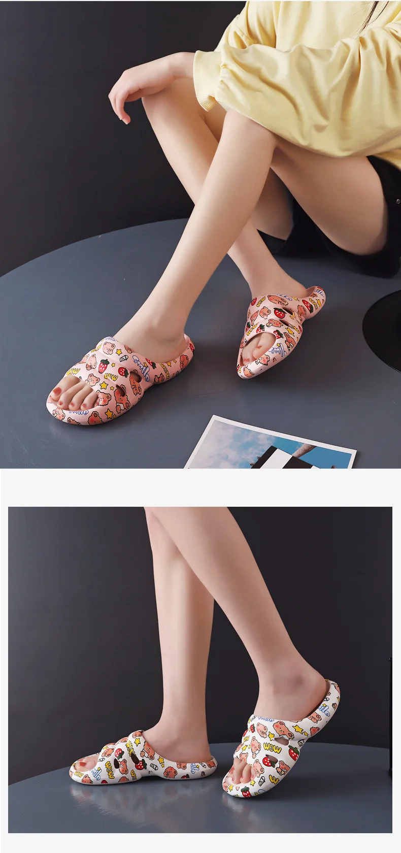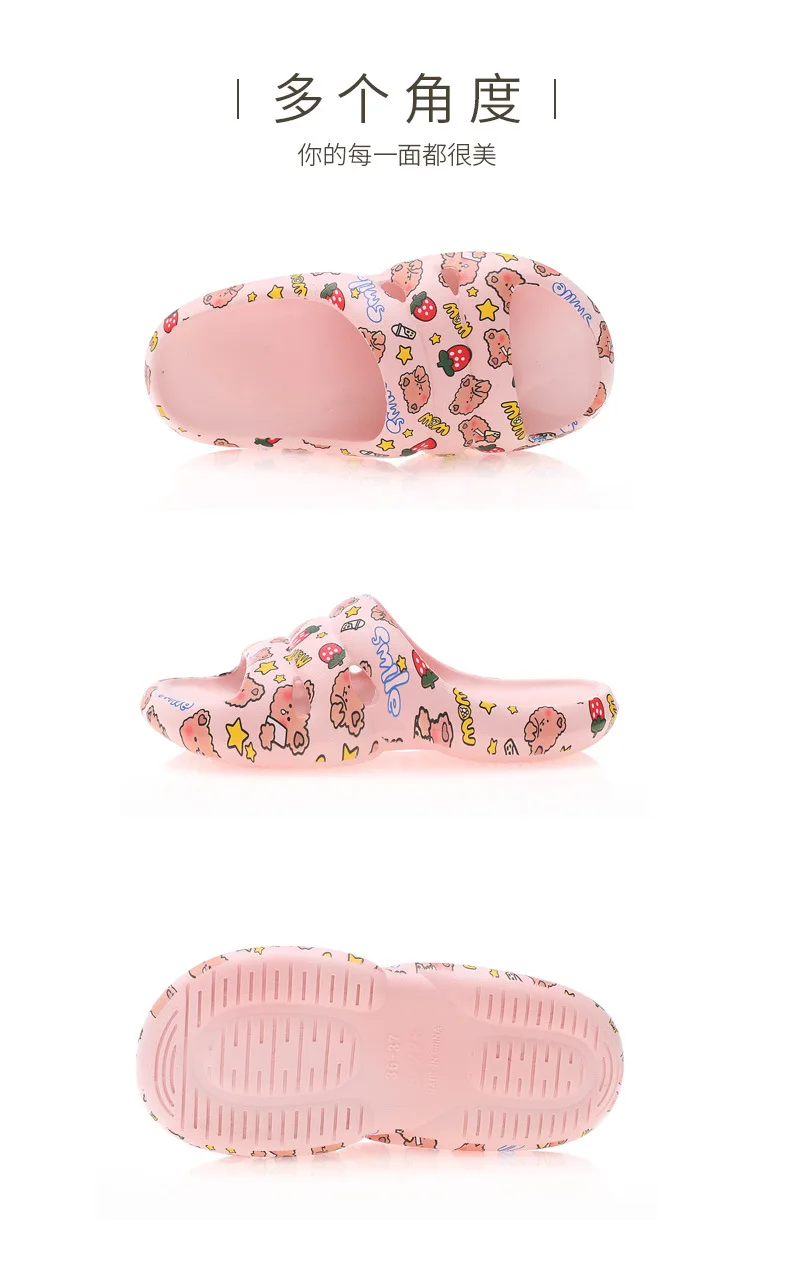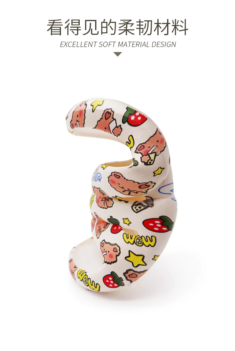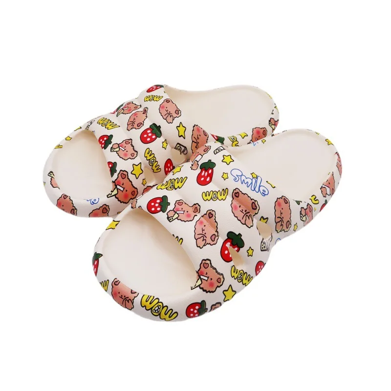 Cartoon Milk&Strawberry Shoes Girls Woman Slippers Home EVA Noiseless Sandals Soft Slip On Bathroom Slides Ladies Clog Flipflops