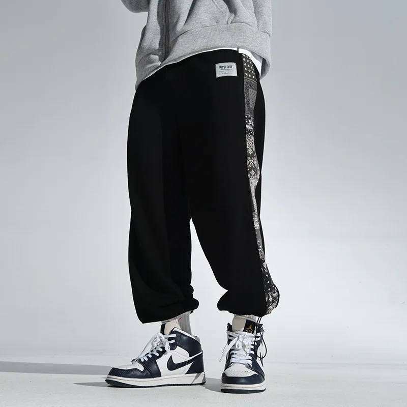 Cashew Flower Stitching Pants Men’s Harajuku Casual Trousers Autumn Drawstring Guard Pants Streetwear Men Baggy Joggers Pants