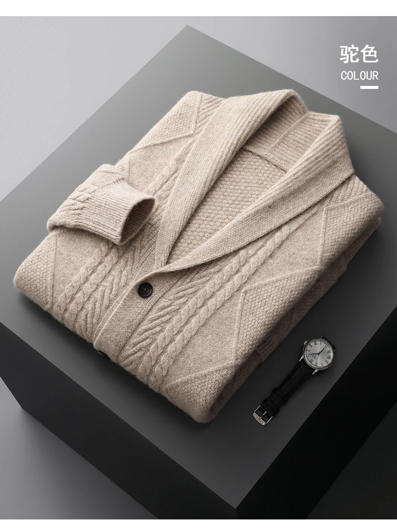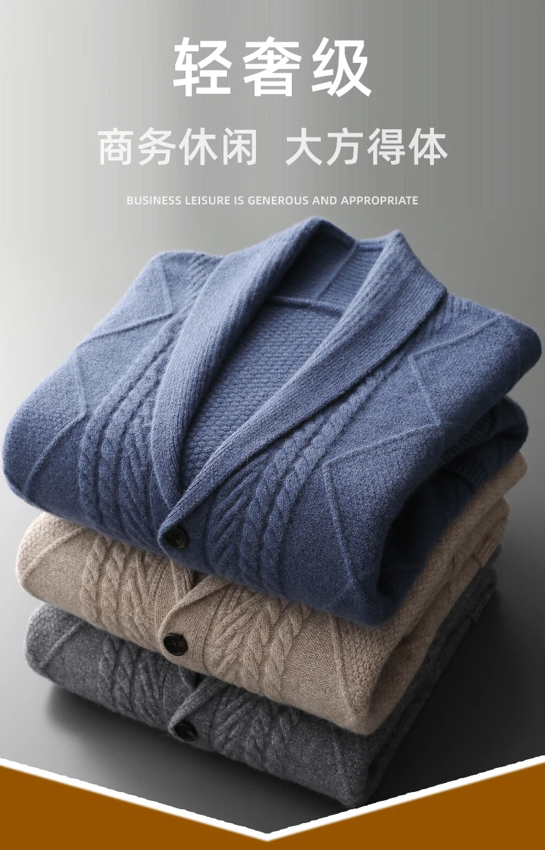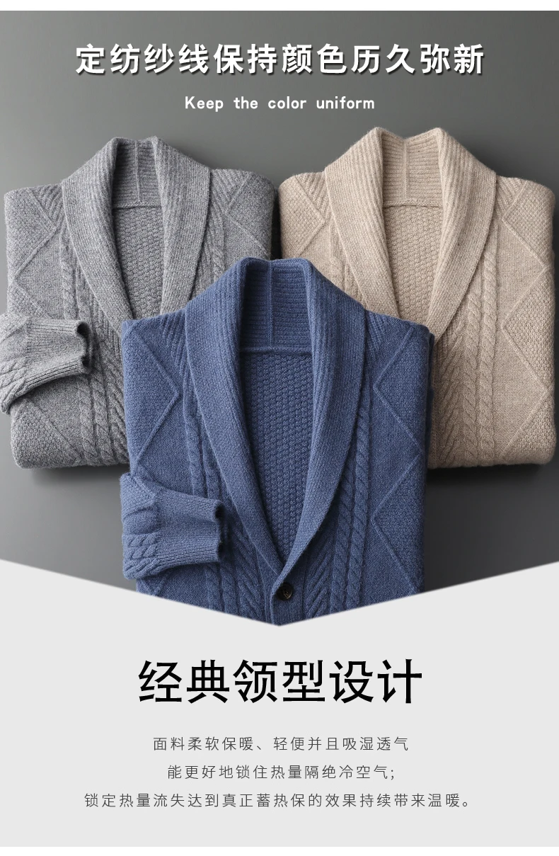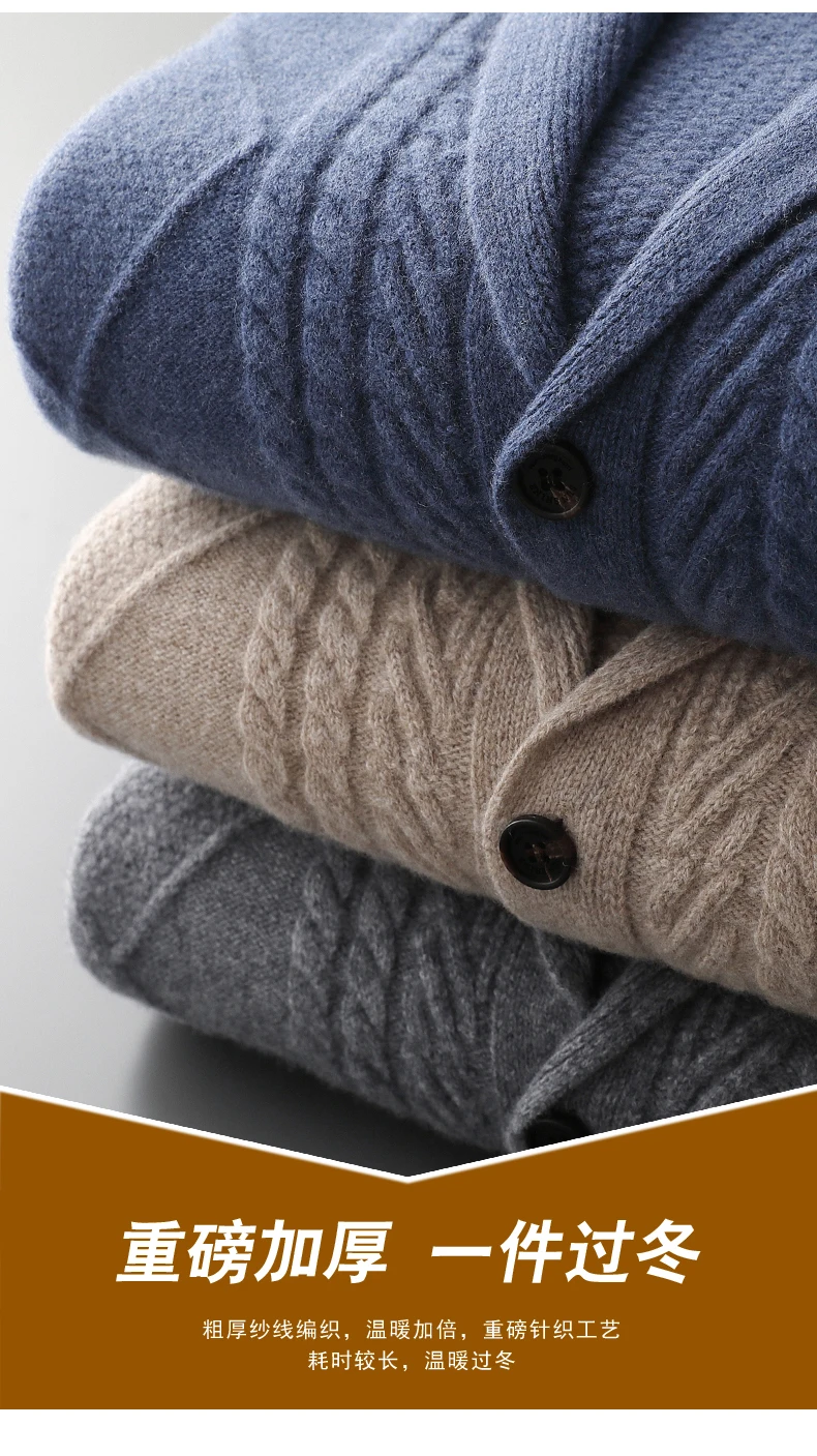 Cashmere Sweater Men’s New Thickened Knitted Cardigan 100% Melino Wool Solid Color Jacket Autumn/Winter Loose Large V-Neck Coat