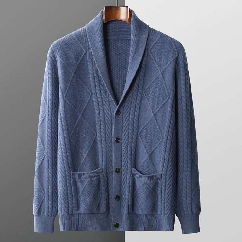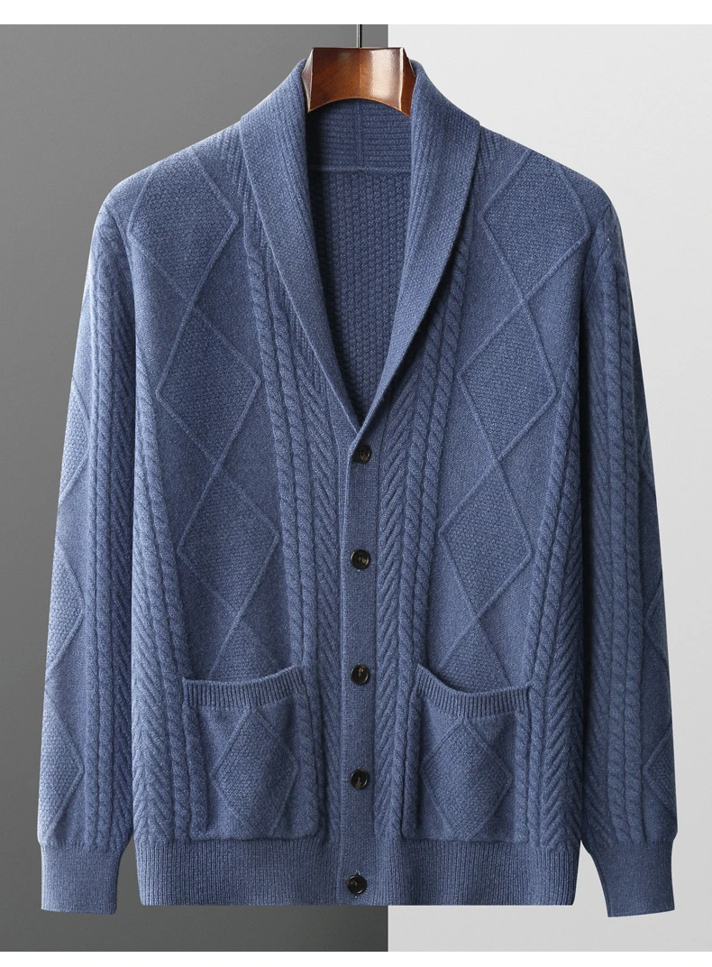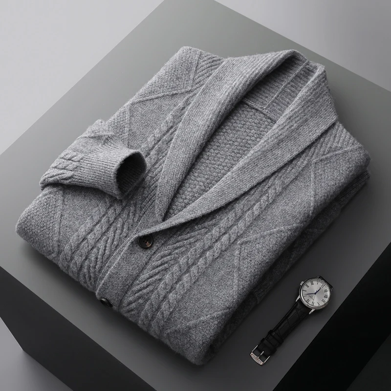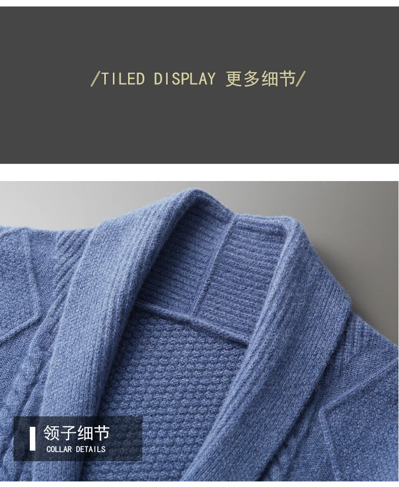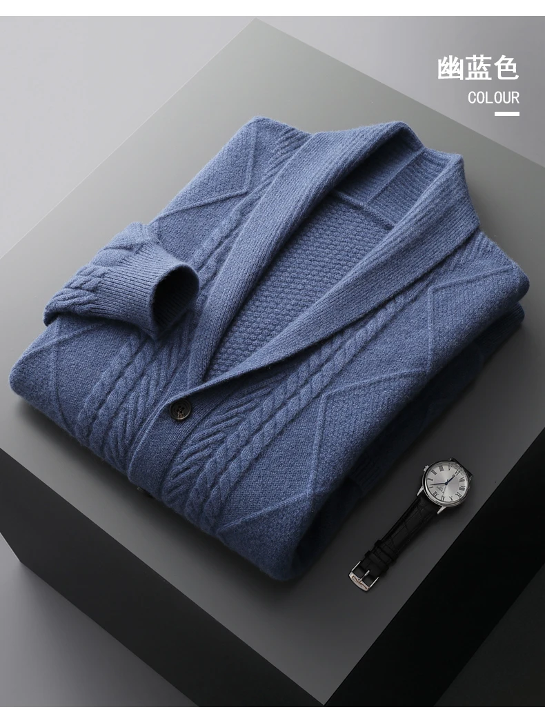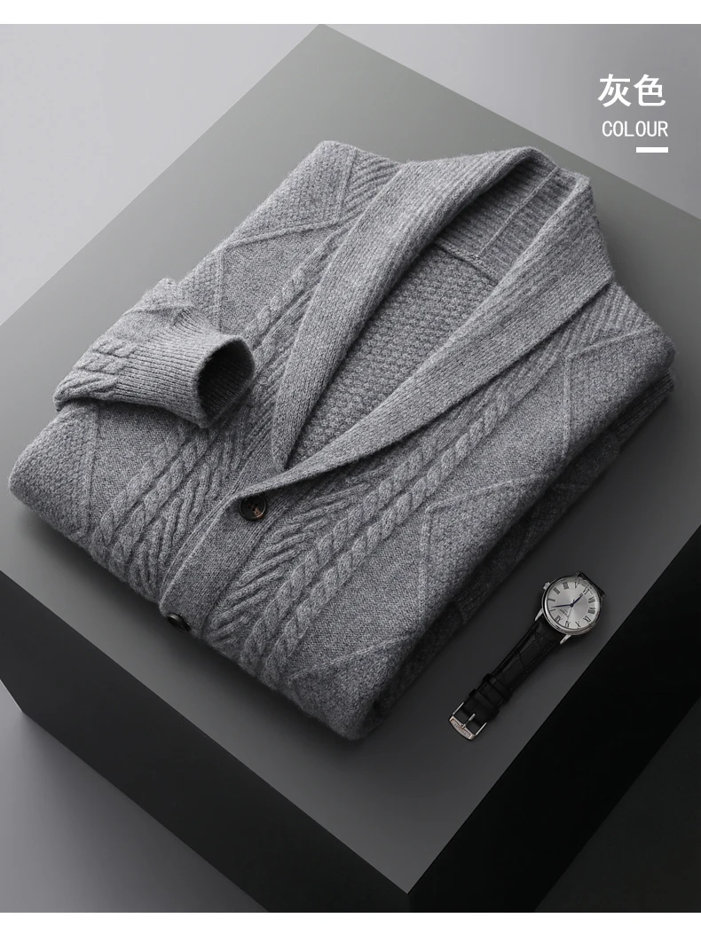 Cashmere Sweater Men’s New Thickened Knitted Cardigan 100% Melino Wool Solid Color Jacket Autumn/Winter Loose Large V-Neck Coat