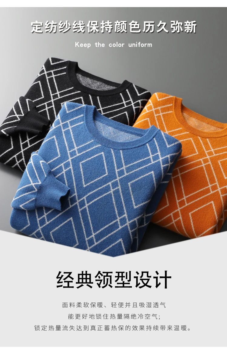 Cashmere Sweater Pullover For Men’s Casual Business Sweater Long Sleeved Knitted Men’s O-neck 100% Pure Wool Sweater Hot Sell