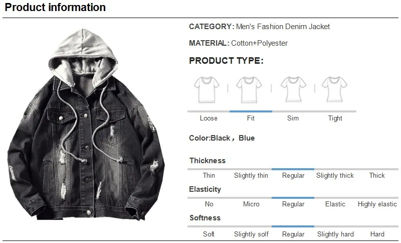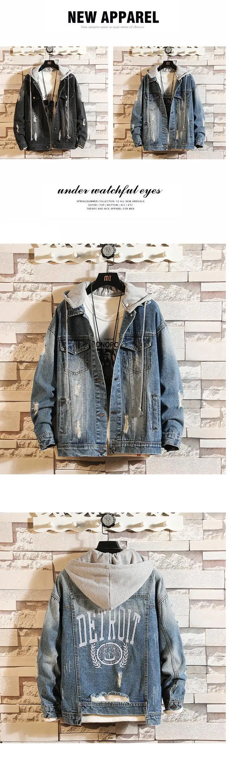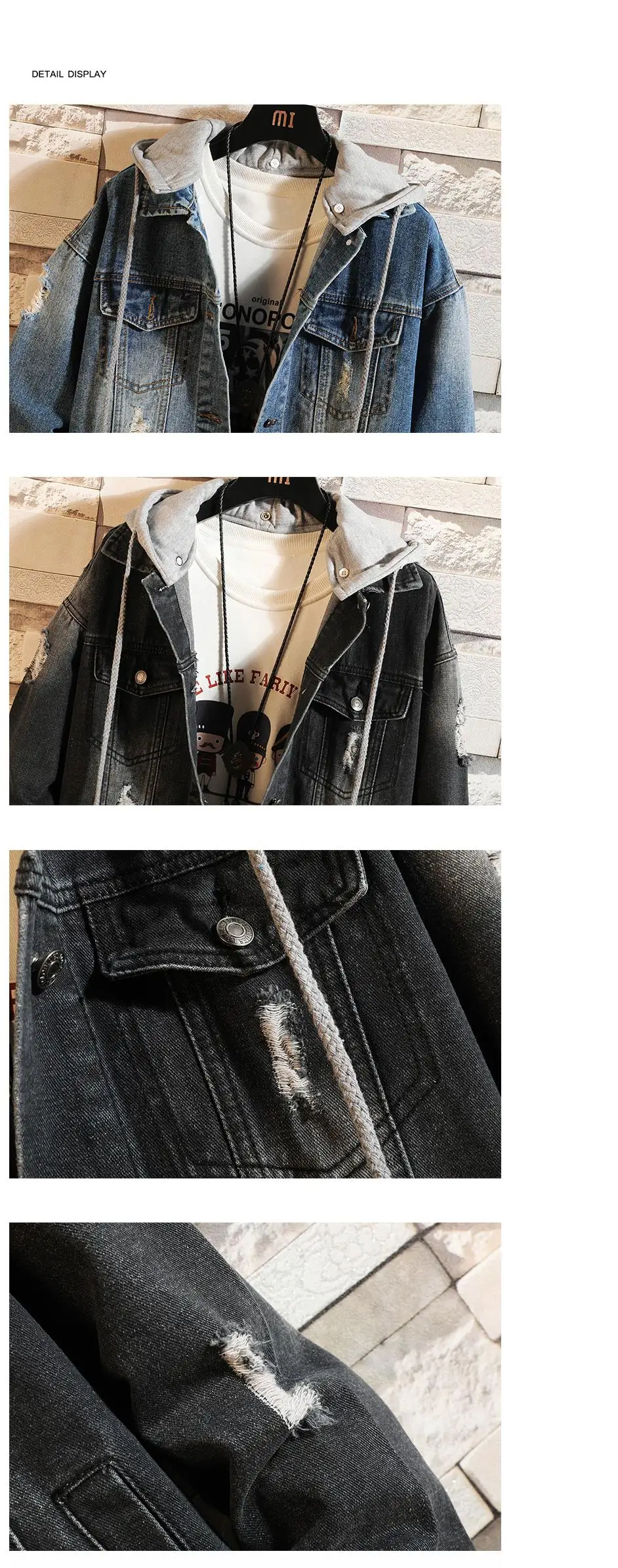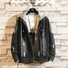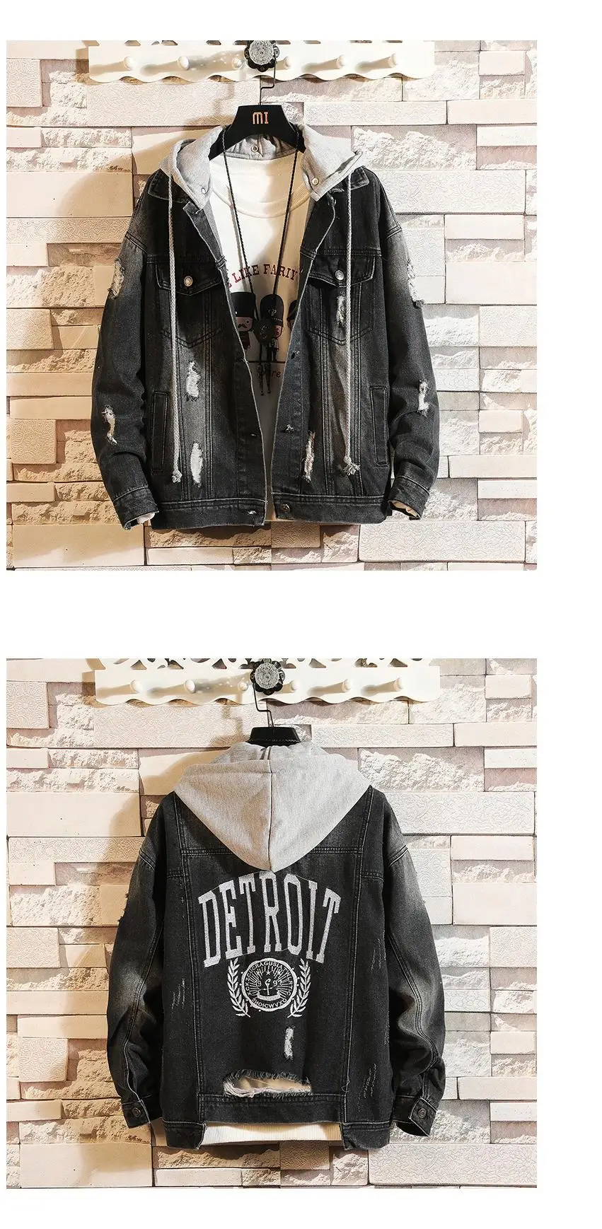 Casual Jacket Pop Mens Denim Jacket Coat Loose Fit Men Hip Hop Ripped Jeans Jackets Hoodies Cowboy Plus Size 5XL Hat Detachable