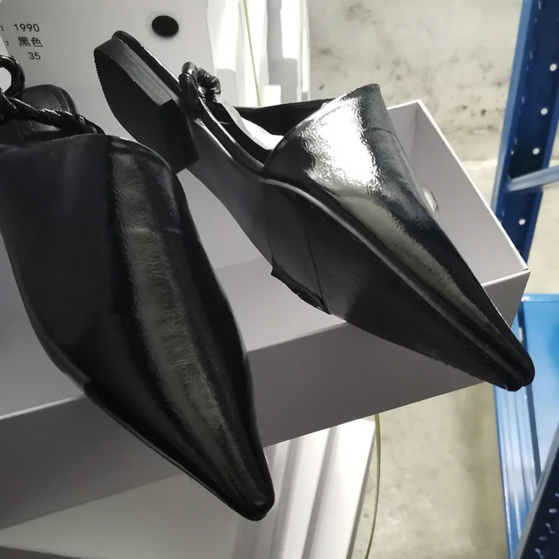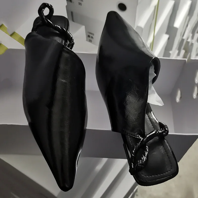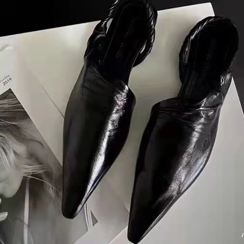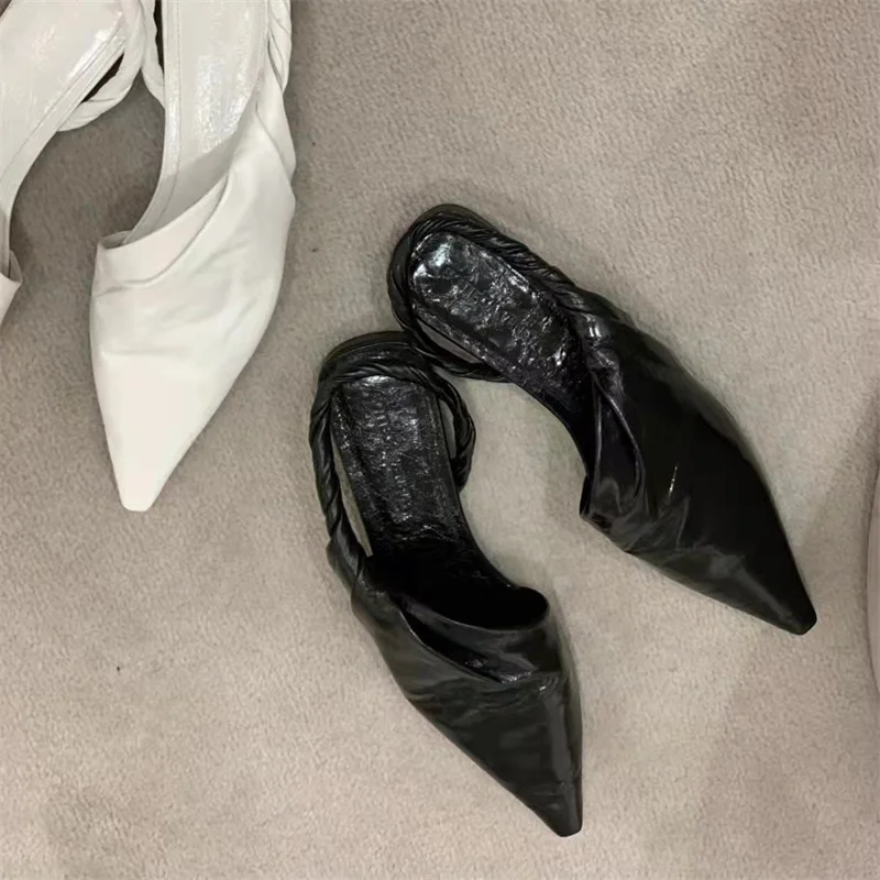 Casual Mules Slippers Summer New Black Sandals 2023 Fashion Pointed Toe Flats Luxury Brand Weaving Women’s Shoes Female Footwear