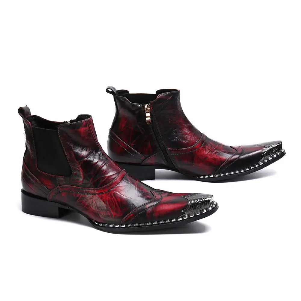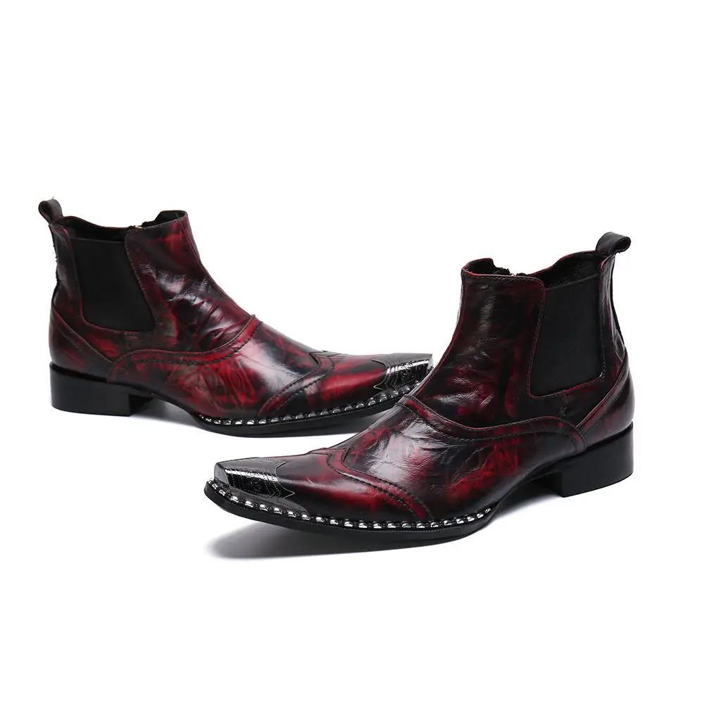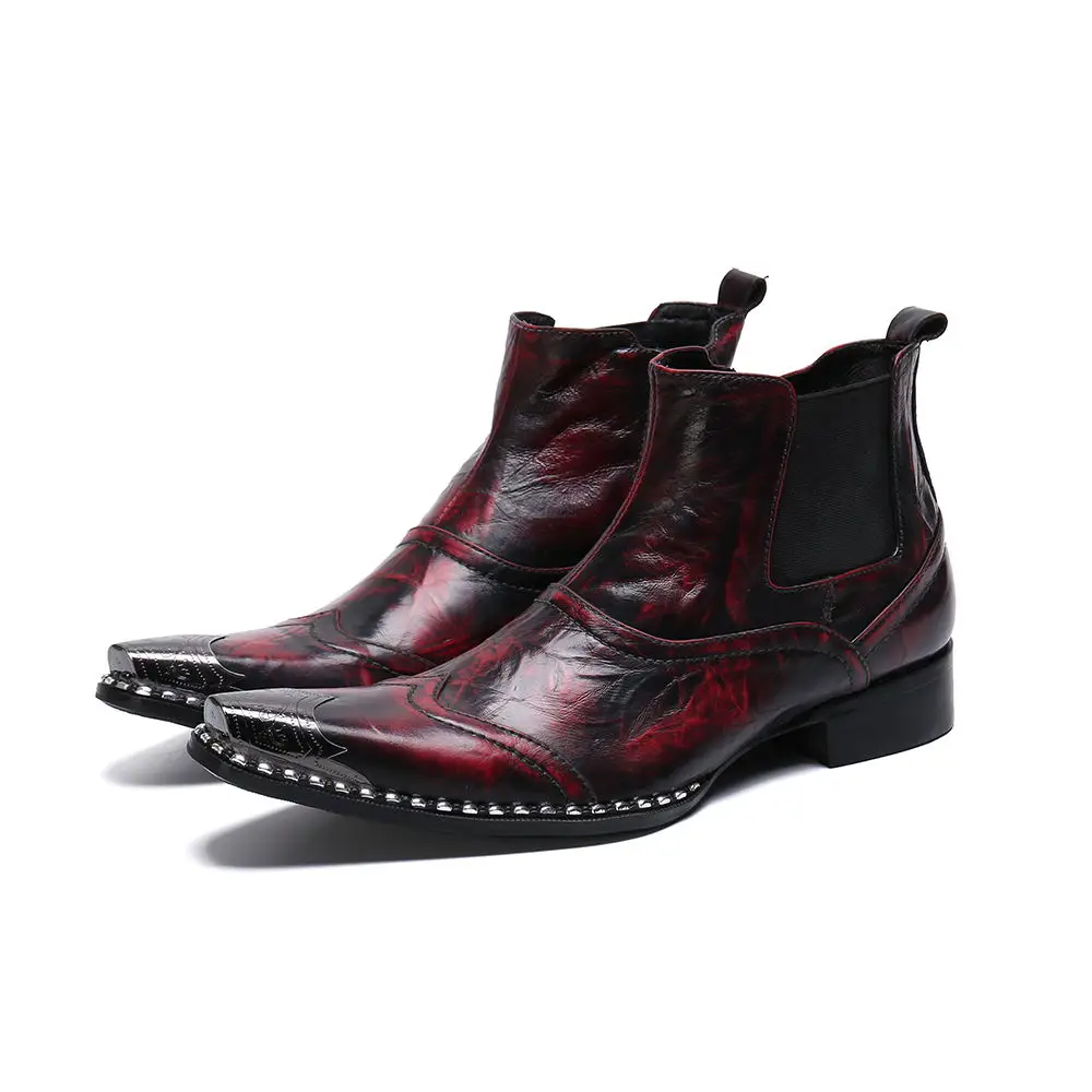 Chaussure Homme Italian Boots Mens classic Style Winter Footwear Military Boots Wine Red Rivets Waterproof Botas Hombre