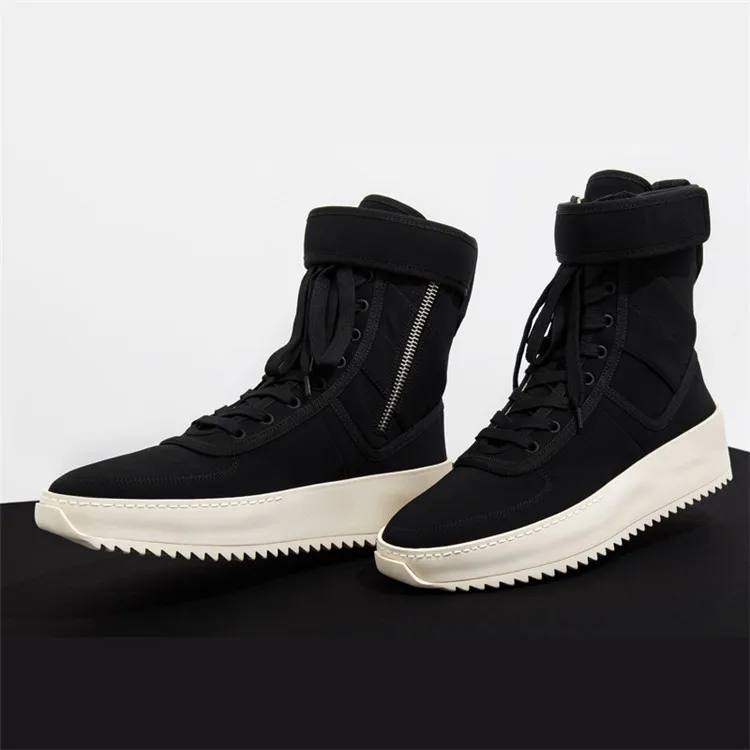 Chaussure Homme Superstar Runway High Top Sneakers Military Shoes Men Platform Ankle Boots Black Thick Bottom Rubber Flat Botas