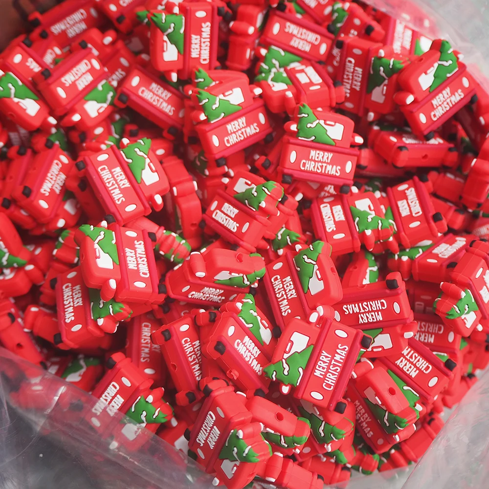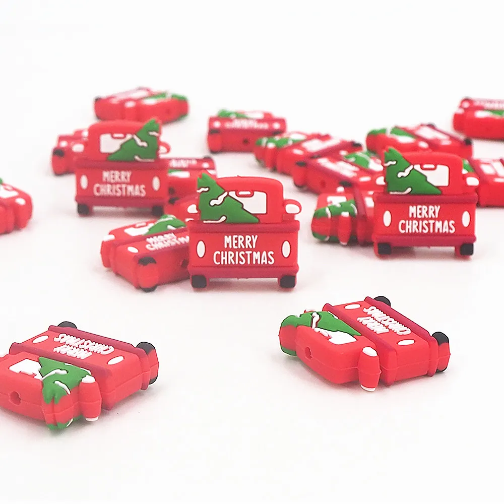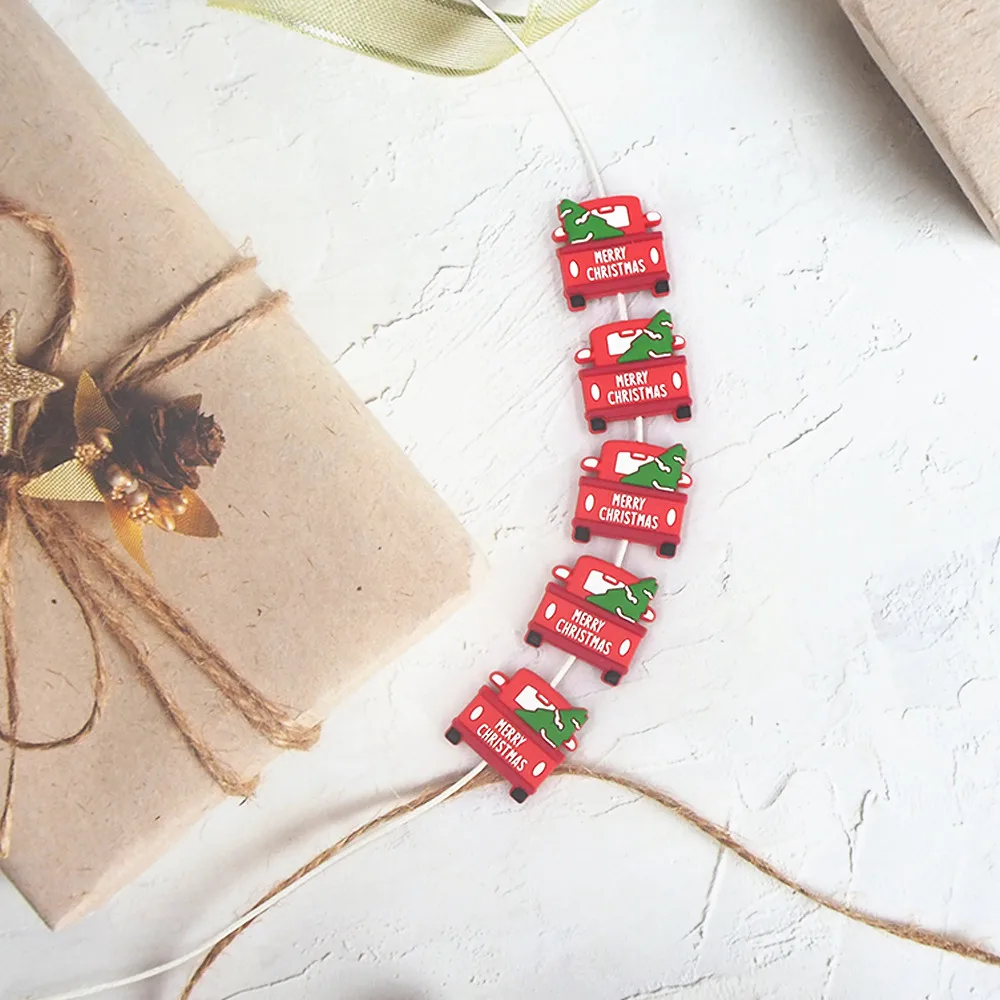 Chenkai 50PCS Christmas Truck Shape Beads BPA Free Silicone Beads Infant Chewable Dummy Necklace Pacifier Toy Gift Accessories