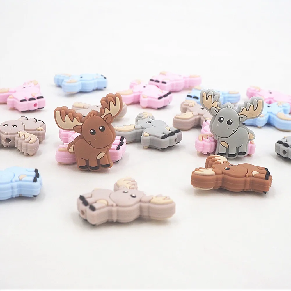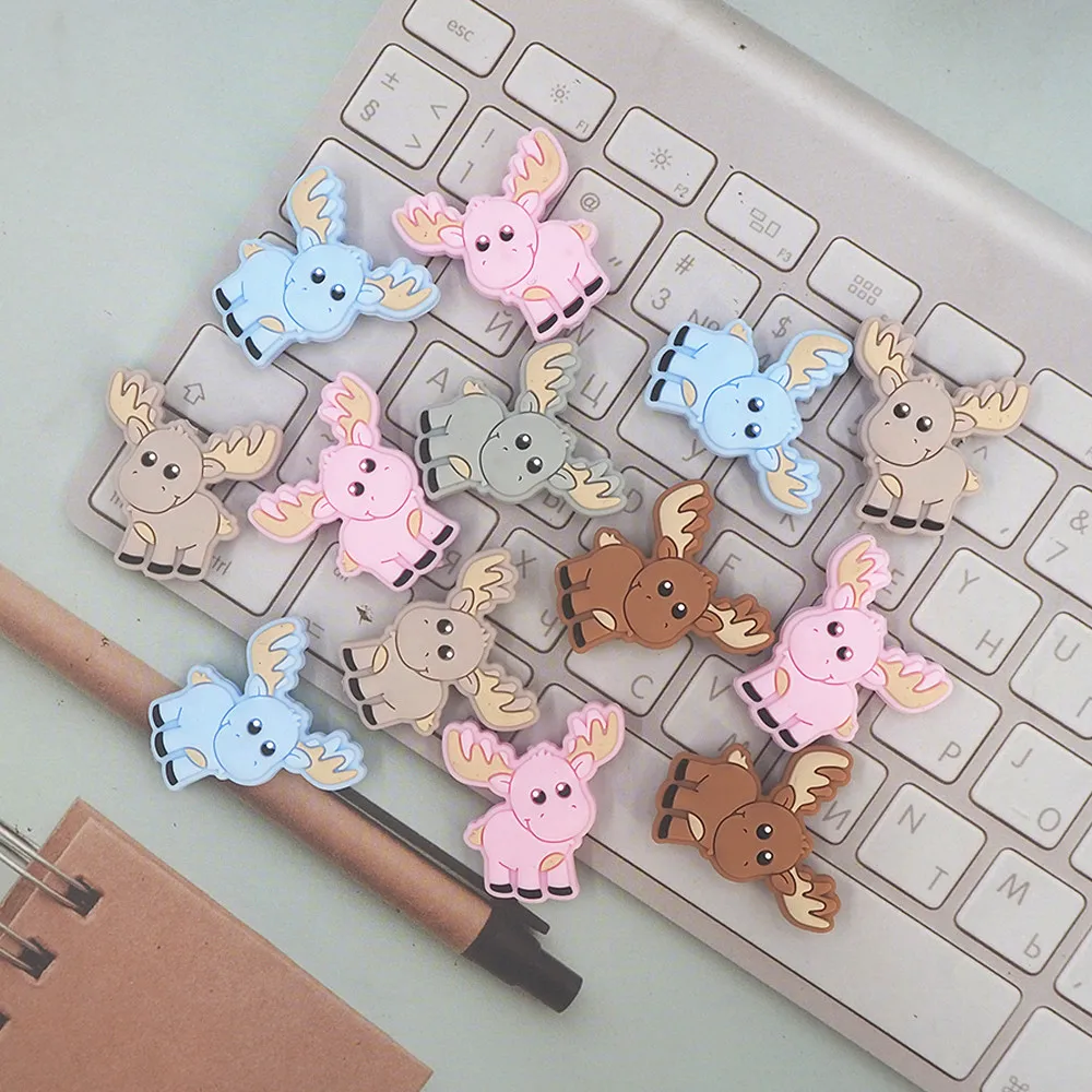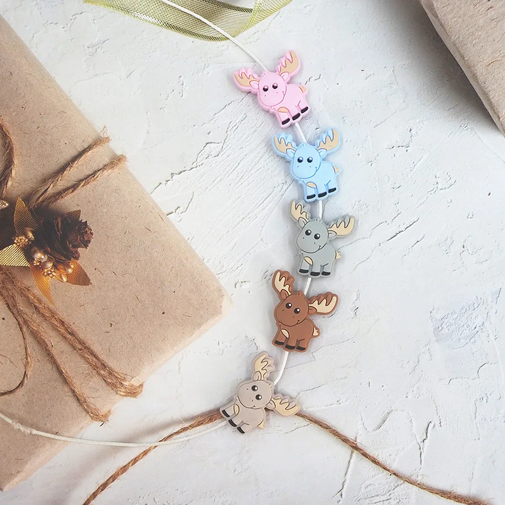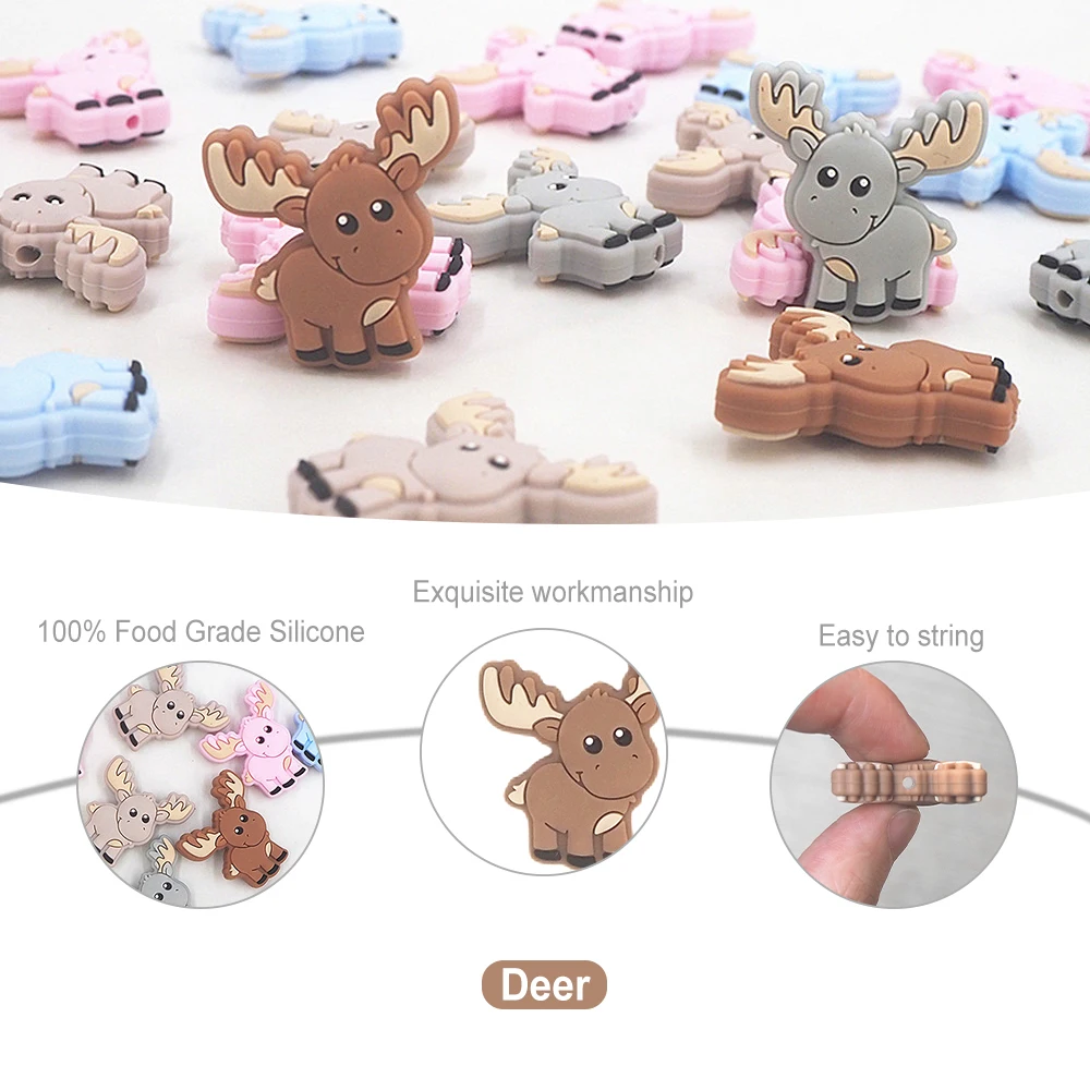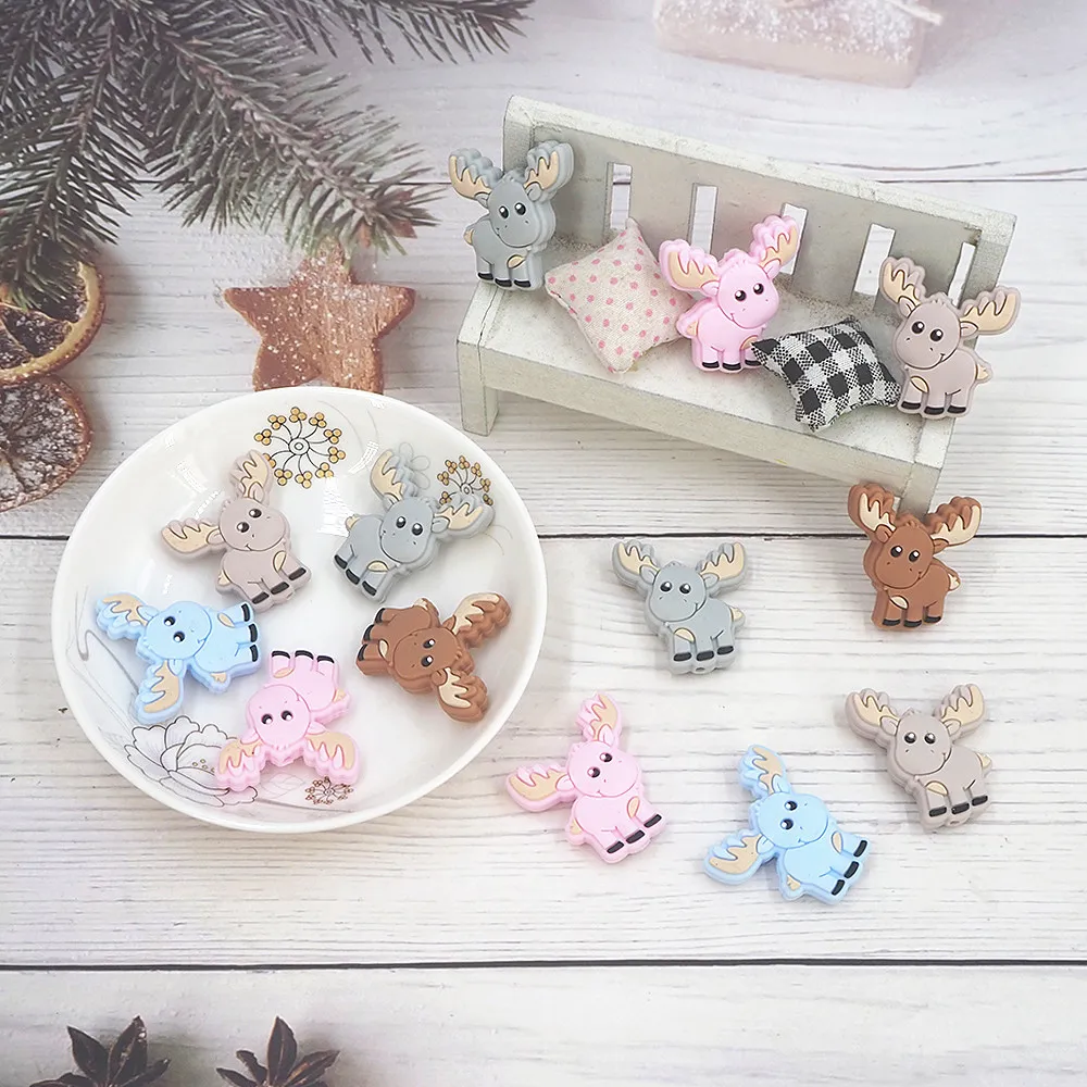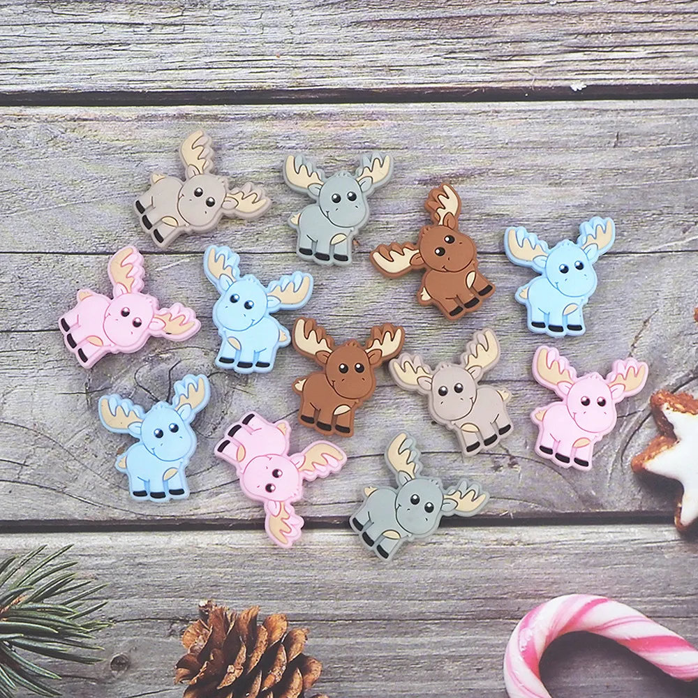 Chenkai 50pcs Deer Silicone Beads Christmas Beads BPA Free Teething Infant Chewable Dummy Necklace Pacifier Toy Gift Accessories