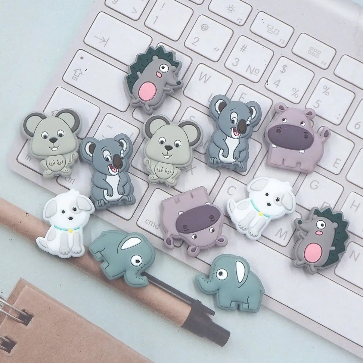 Chenkai 50PCS Elephant Focal Beads Silicone Charms For Pen Making Character Beads For Beadable Pen Baby Pacifier Dummy Chains