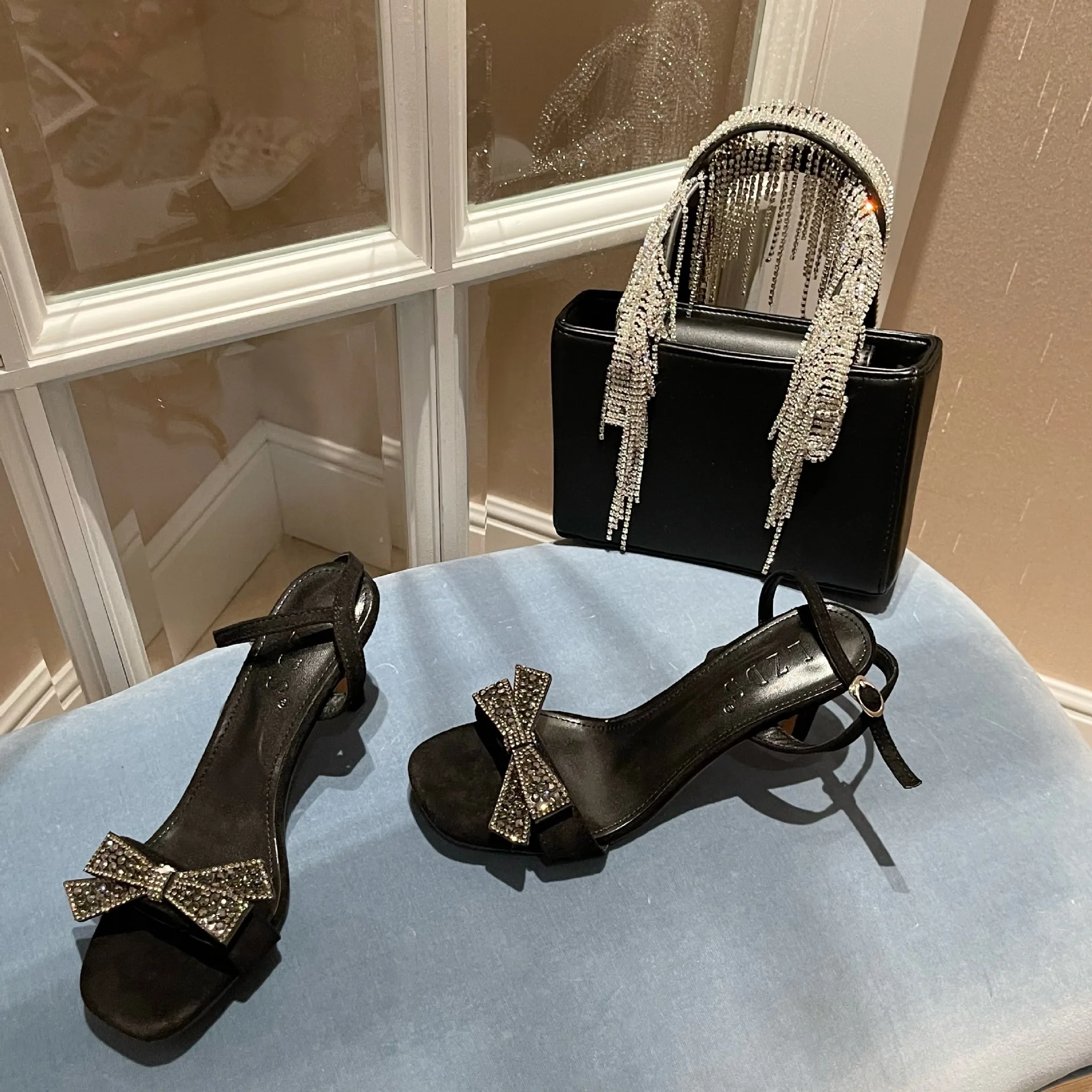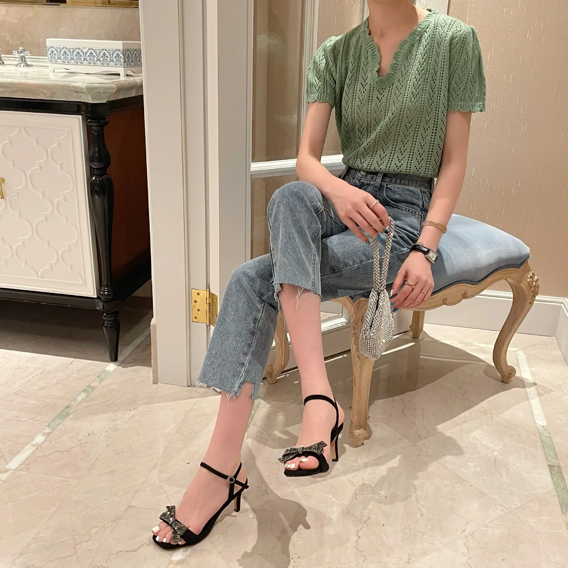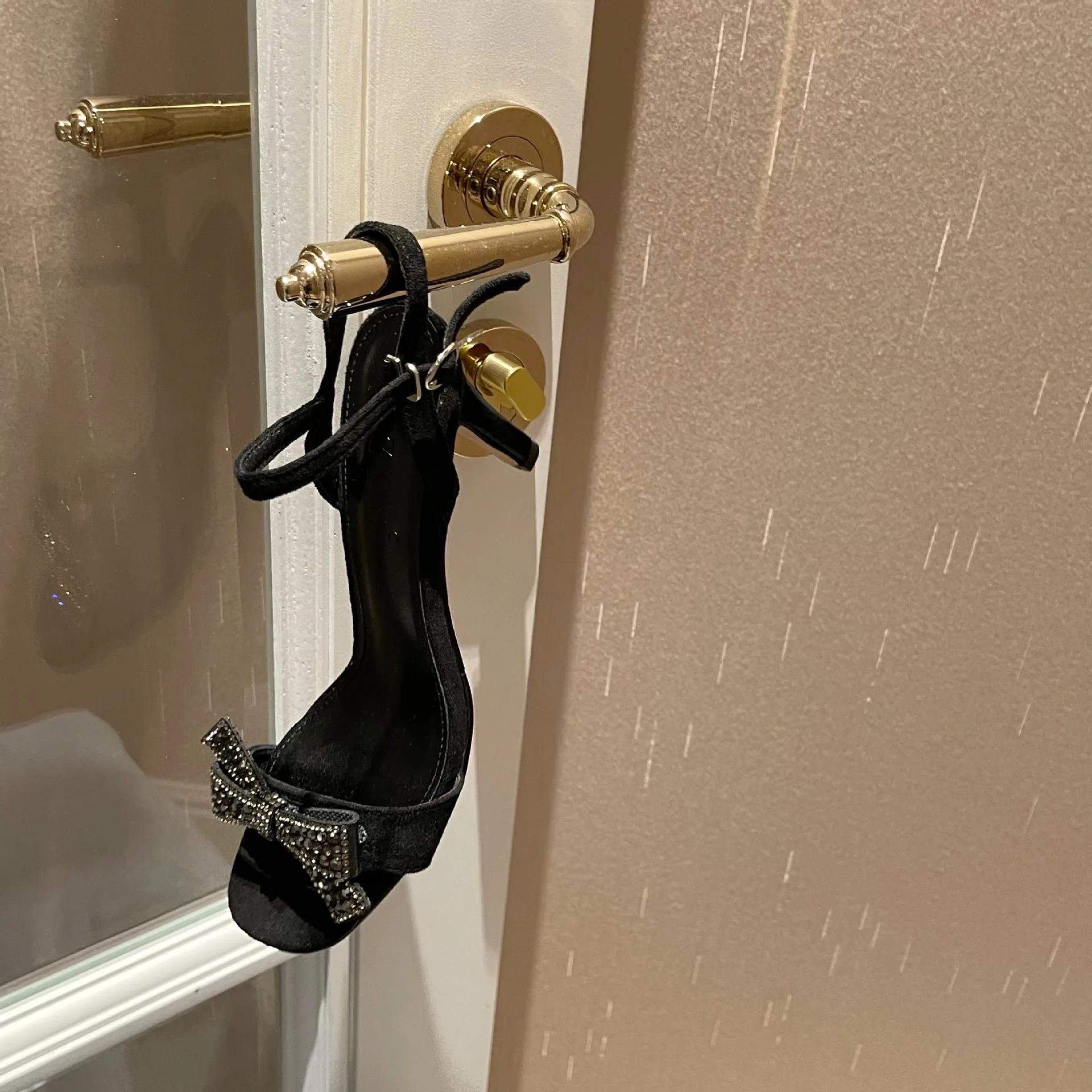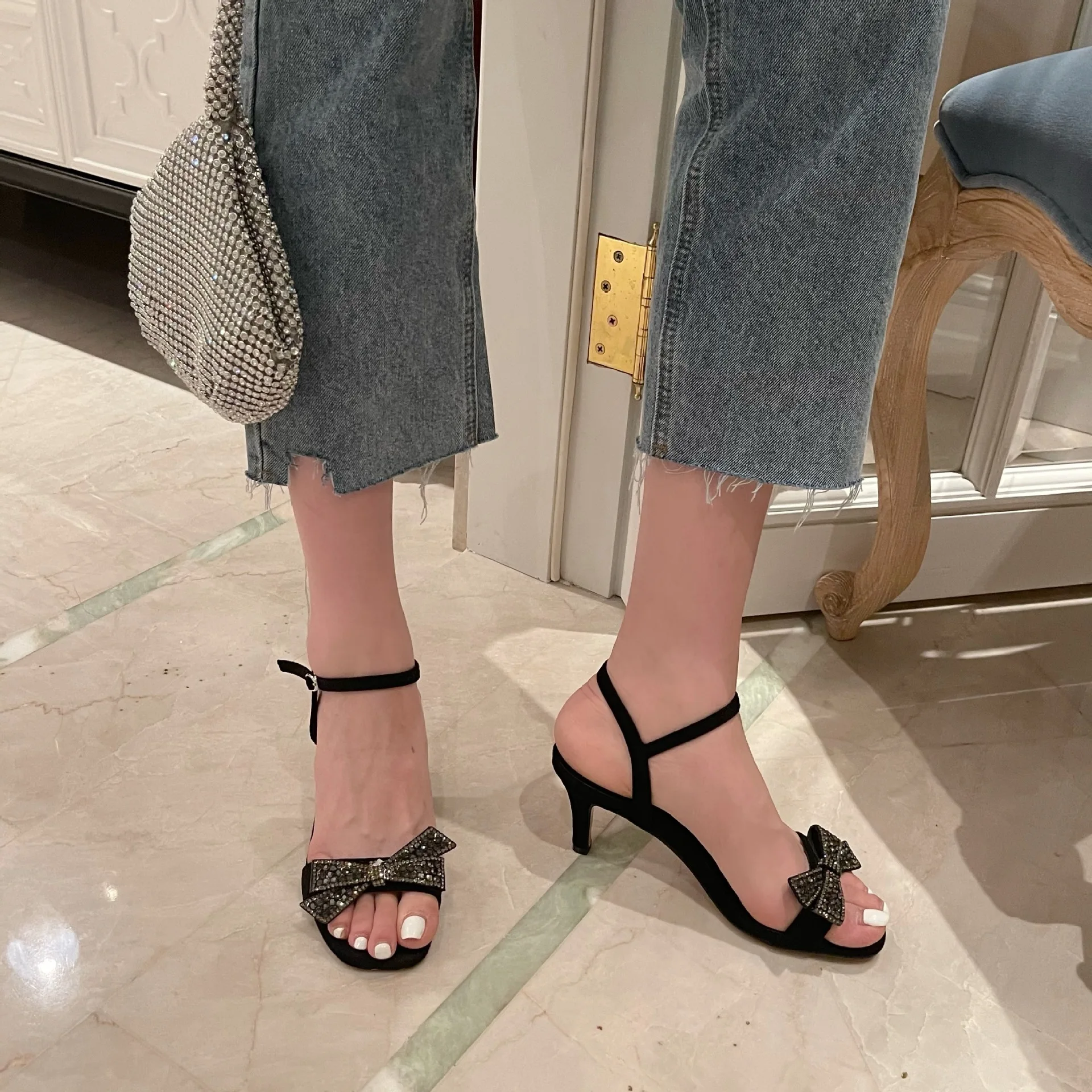Chic Crystal bow-knot sandals women slippers summer thin high heels shoes woman gladiator sandales buckle strap sandalias mujer