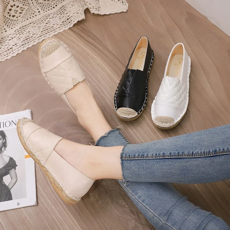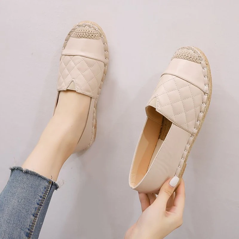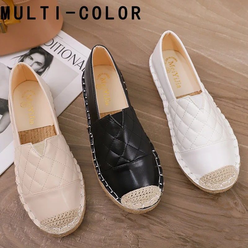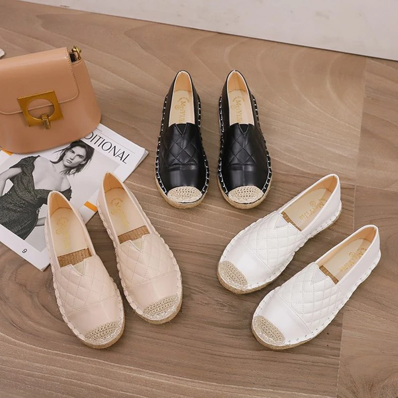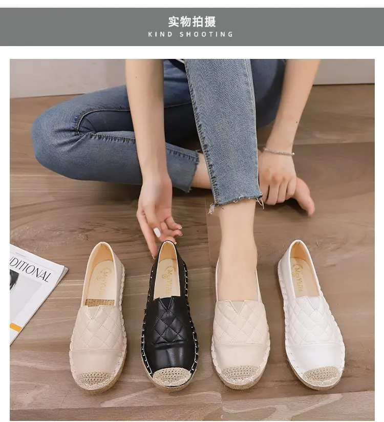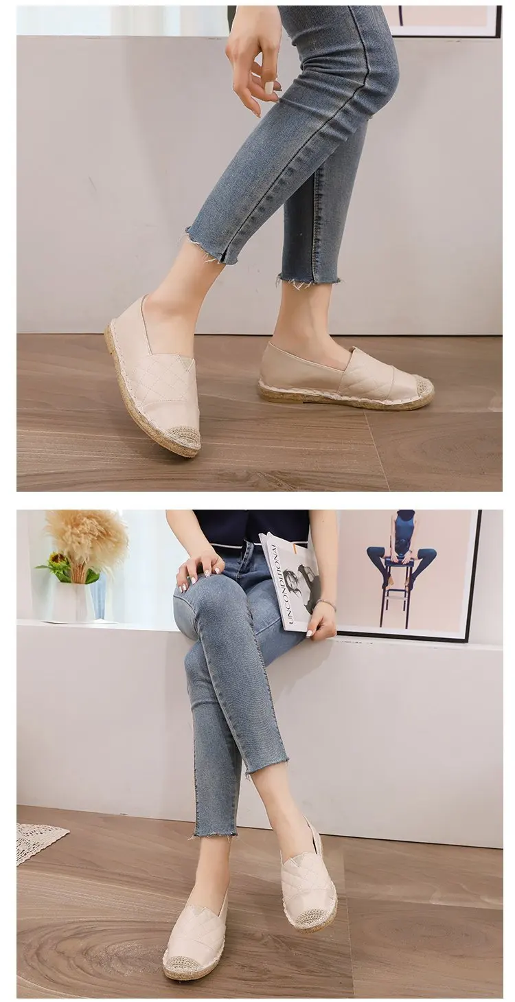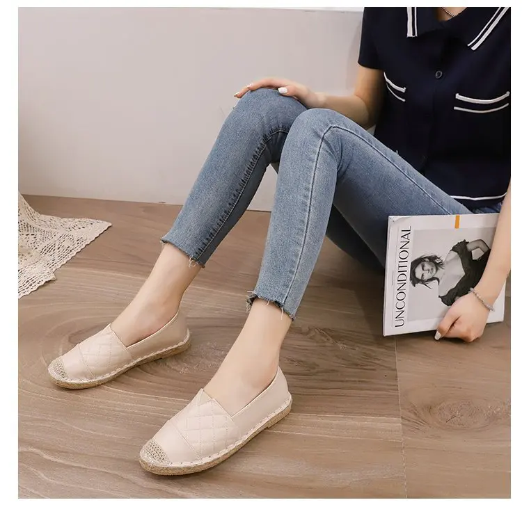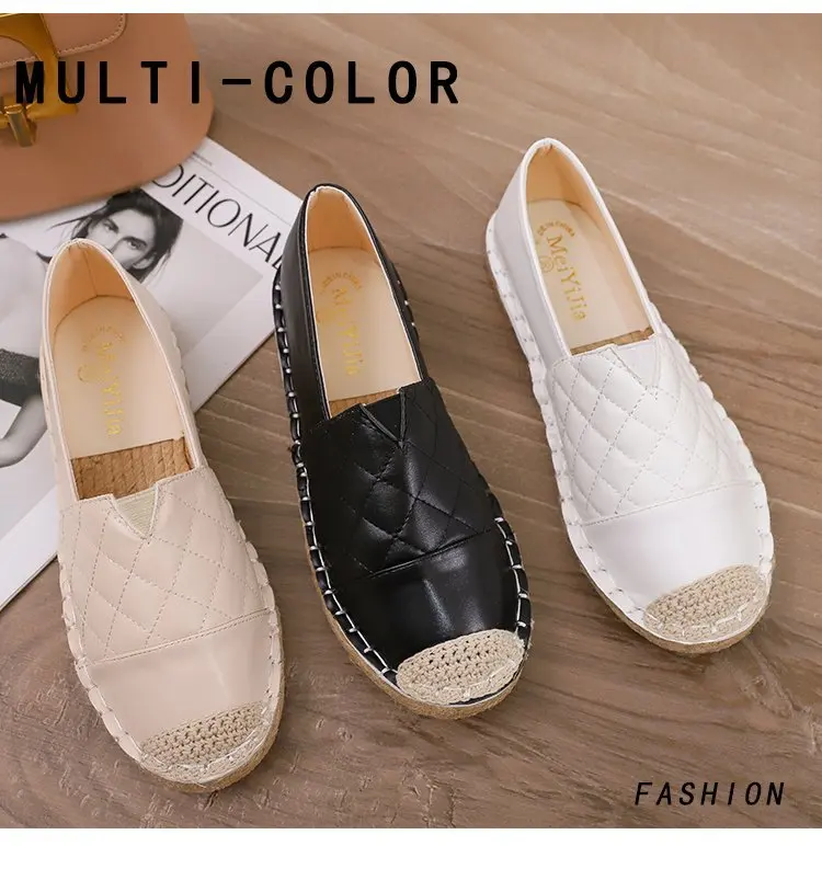 Chic Sewing diamond lattices fisherman shoes women espadrilles moccasins sneakers straw thicken soled loafers woman flats 2021