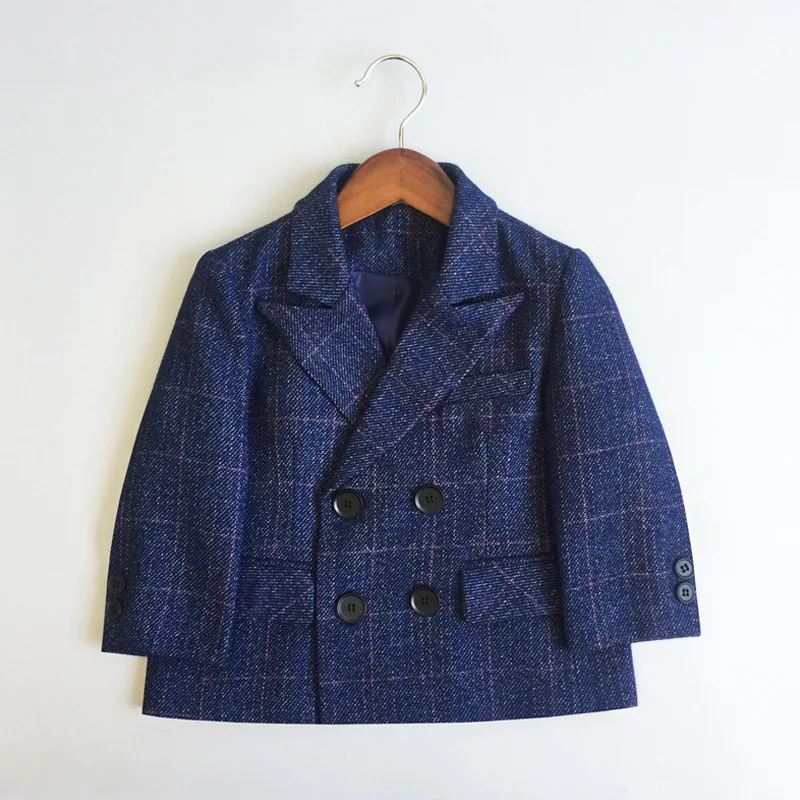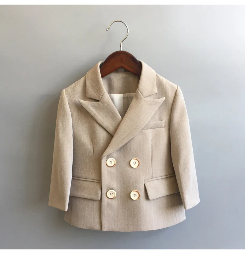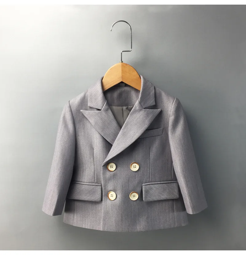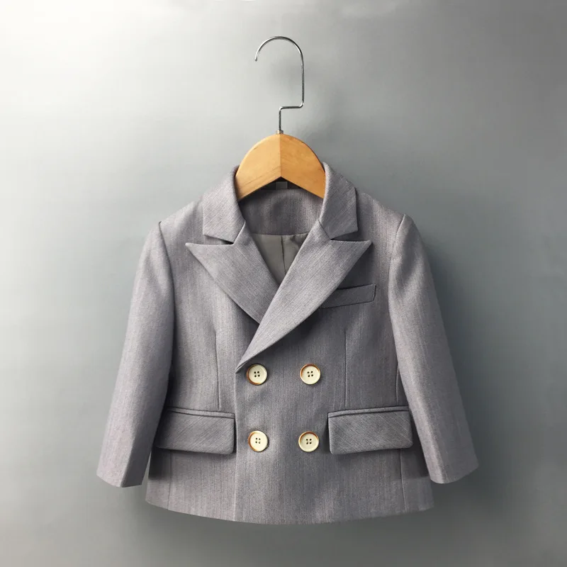 Child Single Suit Dress Clothes Spring Autumn Boys British Performance First Birthday Party Costume Kids Double Breasted Jacket