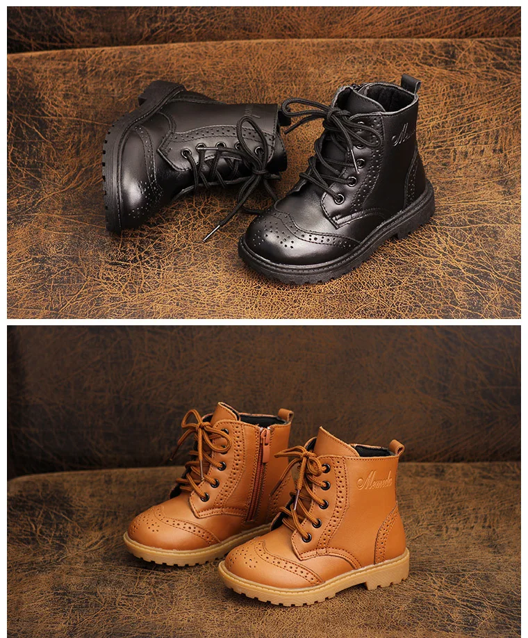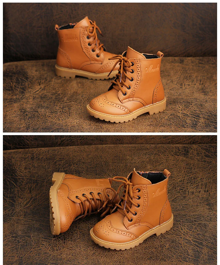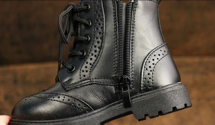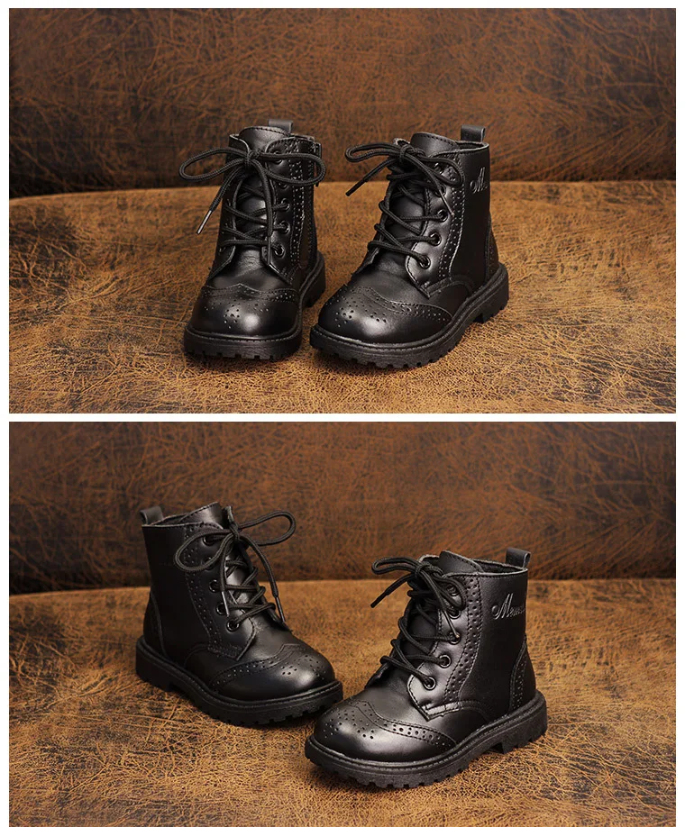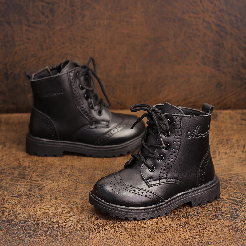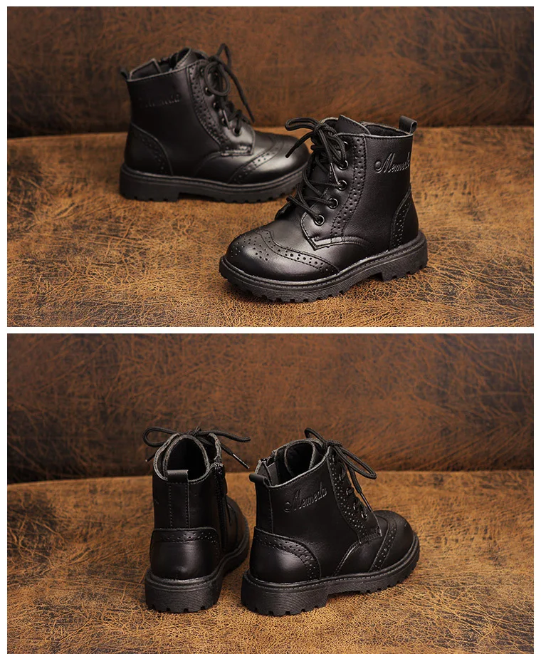 Children Martin Boots Boys Winter Warm Shoes Genuine Leather Girls Boots Side Side Zipper Kids Shoes Soft Bottom Botas Infant