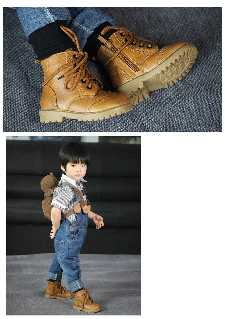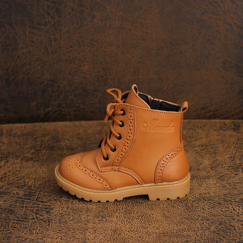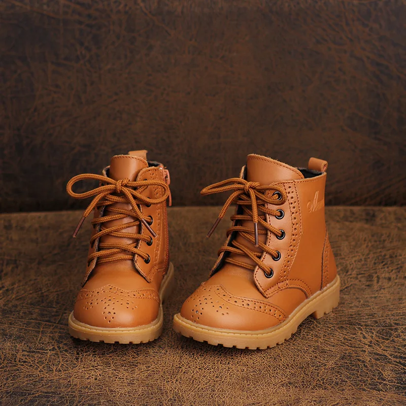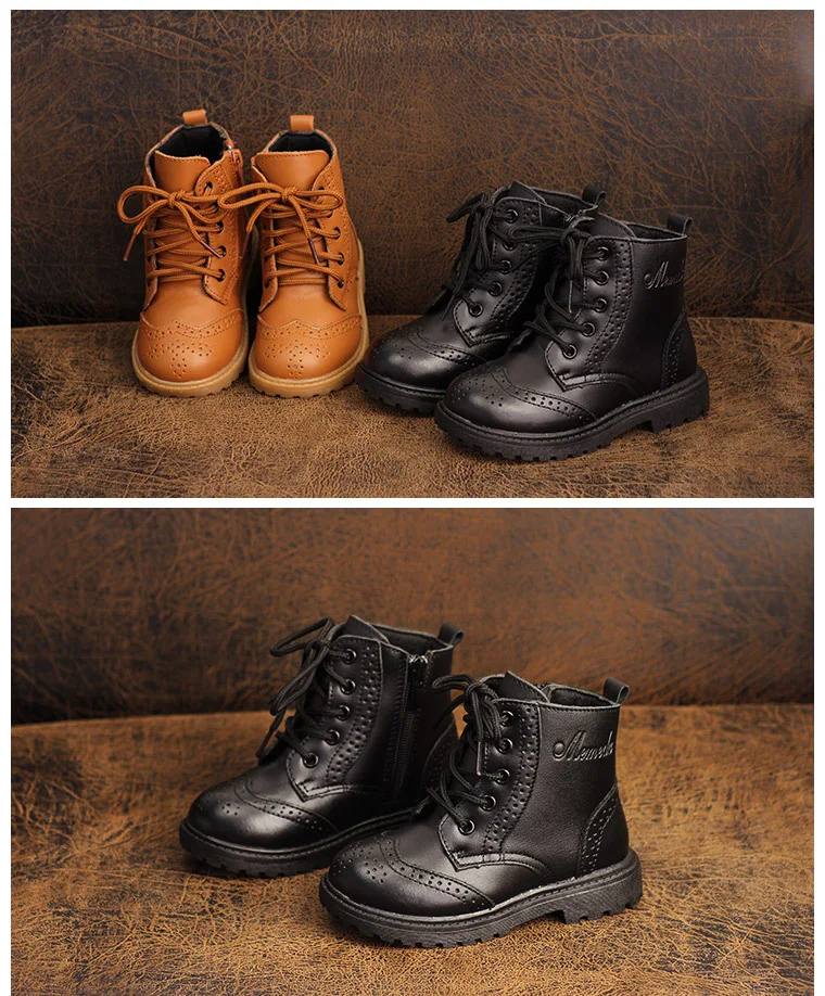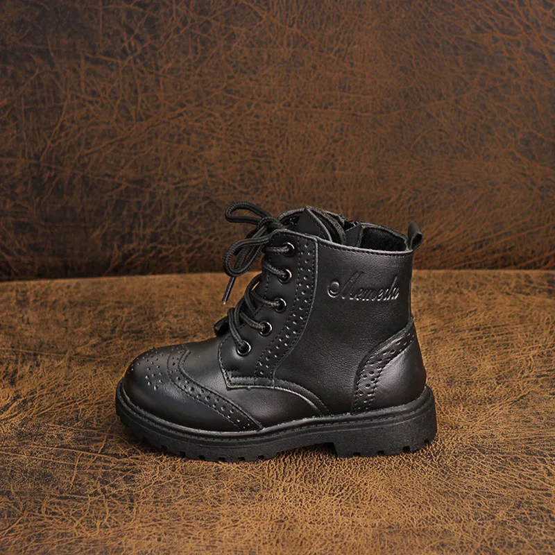 Children Martin Boots Boys Winter Warm Shoes Genuine Leather Girls Boots Side Side Zipper Kids Shoes Soft Bottom Botas Infant