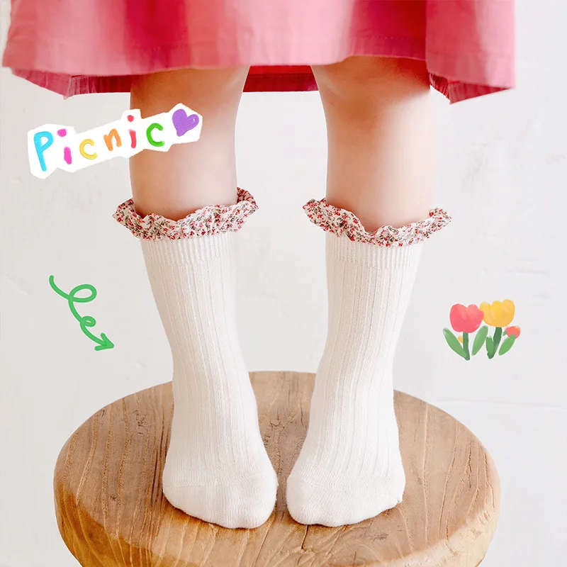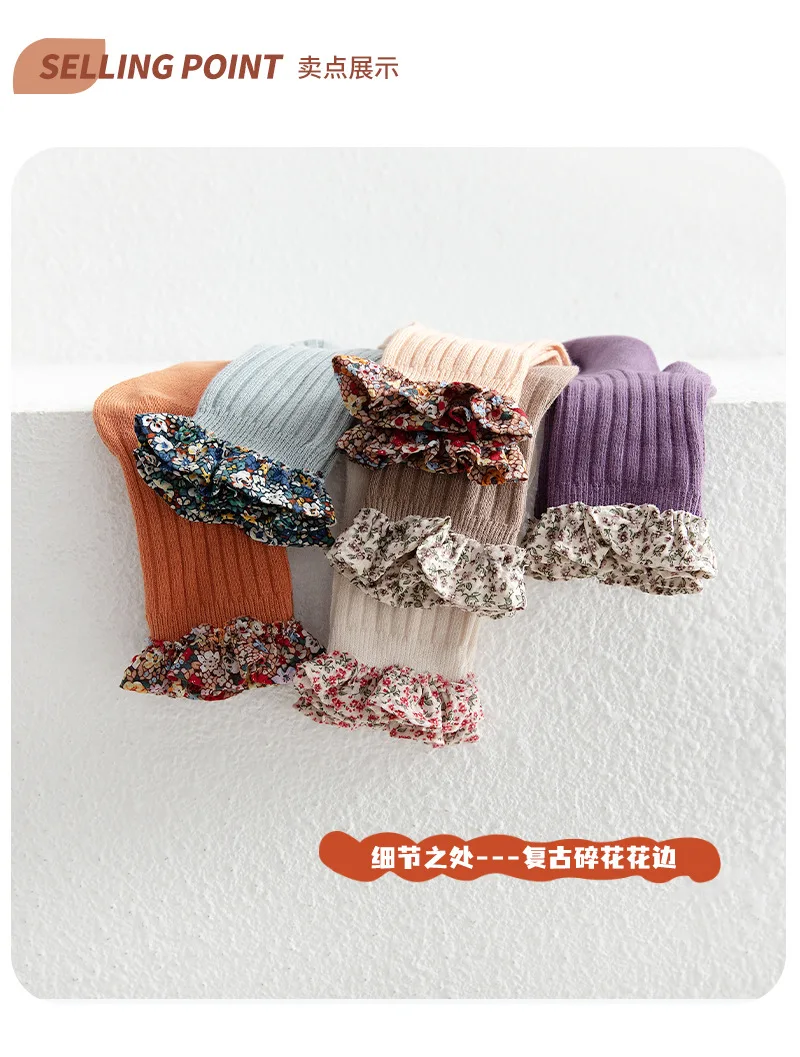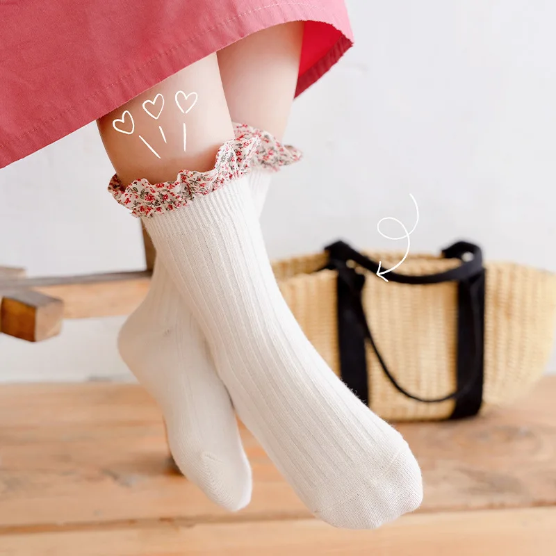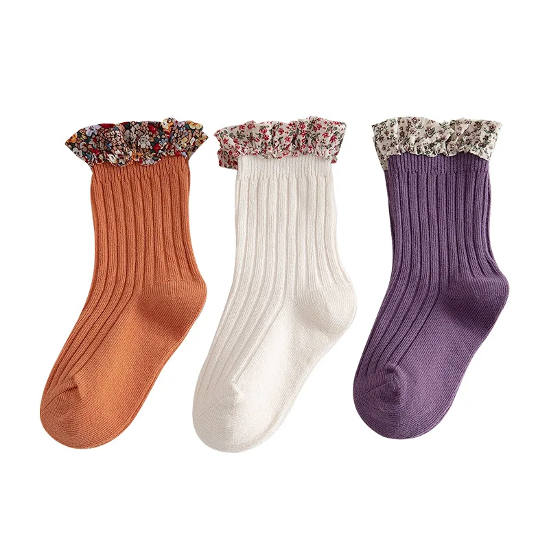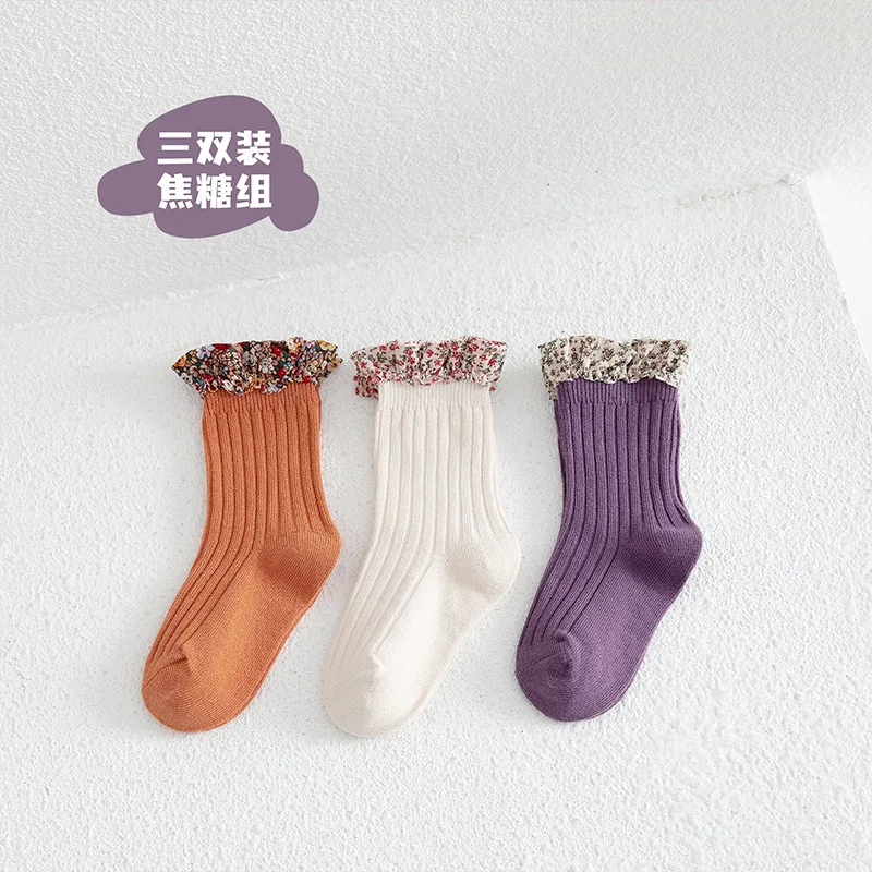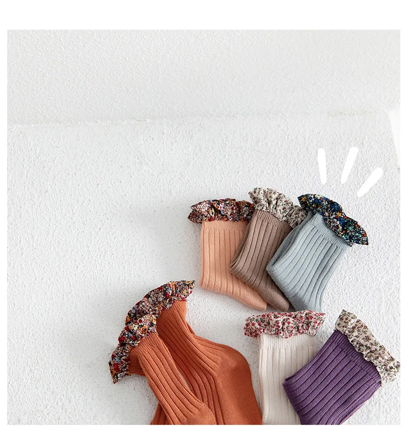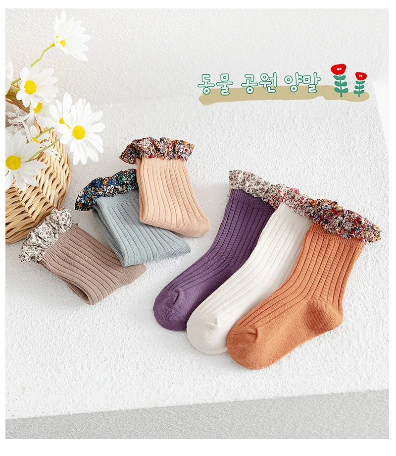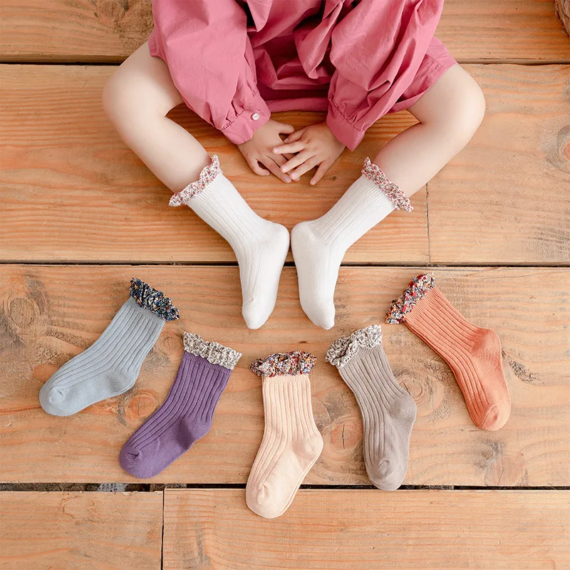 Children Socks Spring Autumn New Arrival Fashion Cute Floral Lace Casual Sports Kids Girls Socks Cotton Soft Solid Color Socks