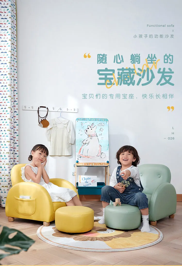 Children’s Armchair Reading Corner Living Room Cute Baby Sofa with Stool Mini Sofa for Children Home Tech Cloth Lazy Sofa Chair