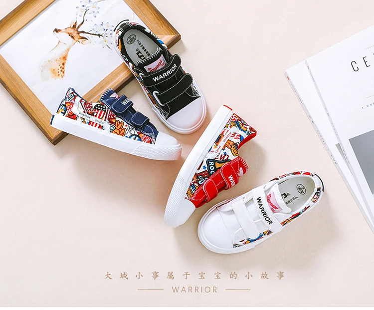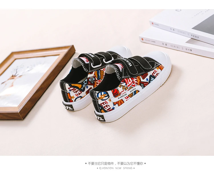 Children’s canvas shoes 2022 autumn new graffiti boy cloth shoes girls casual shoes Korean version of the tide