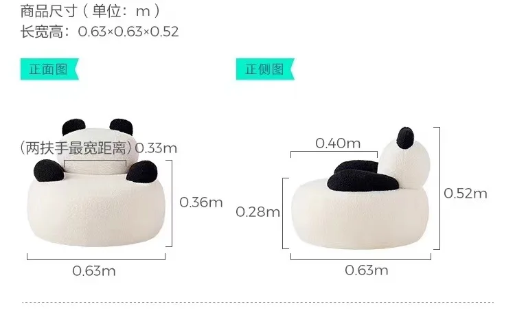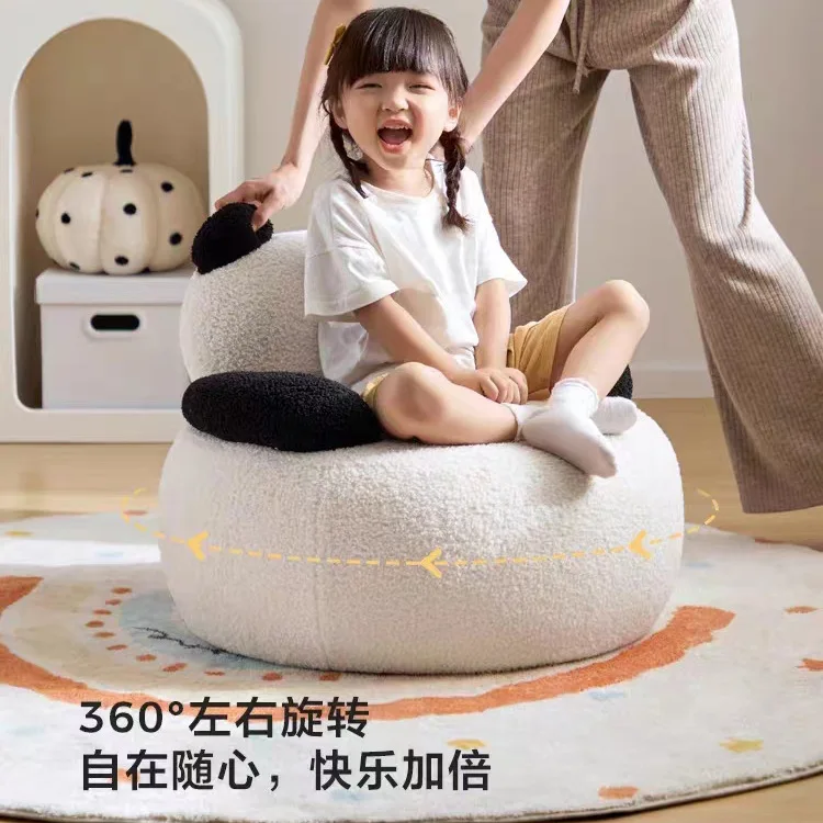 Children’s Cartoon Animal Sofa Chair Household Panda Shaped Sofa Rotatable Princess Sofa for Kids Toddler Room Furniture