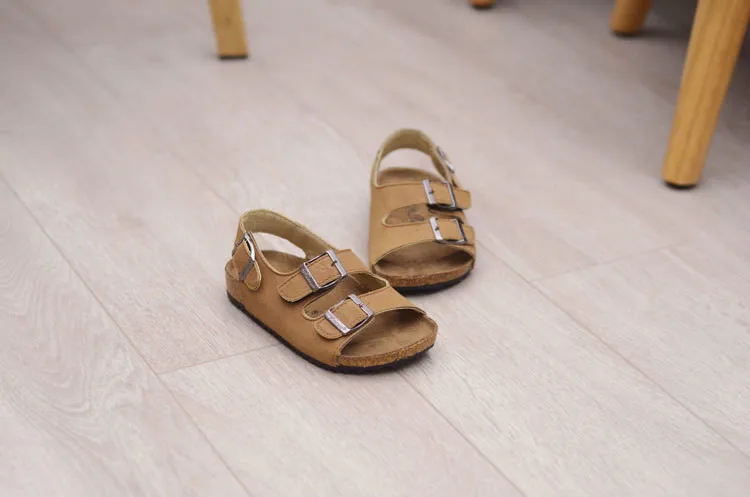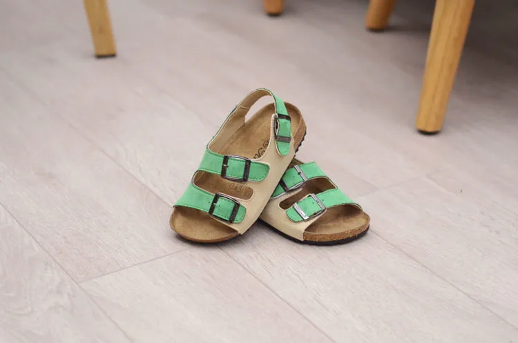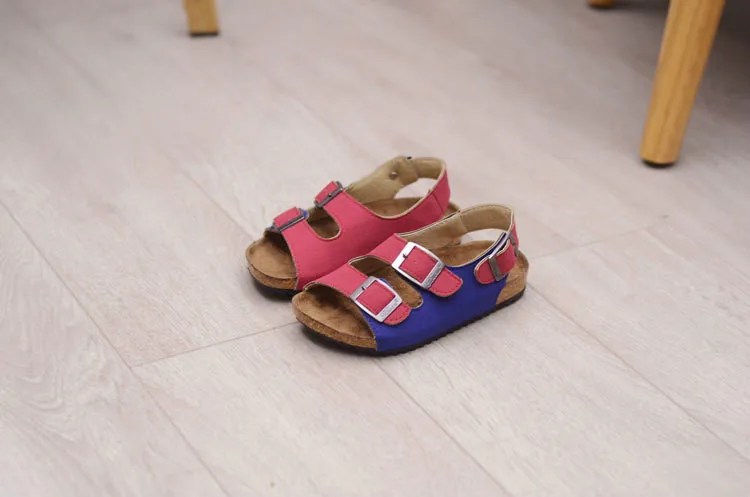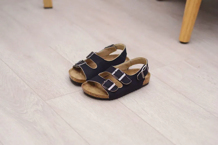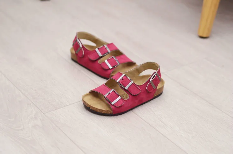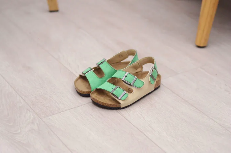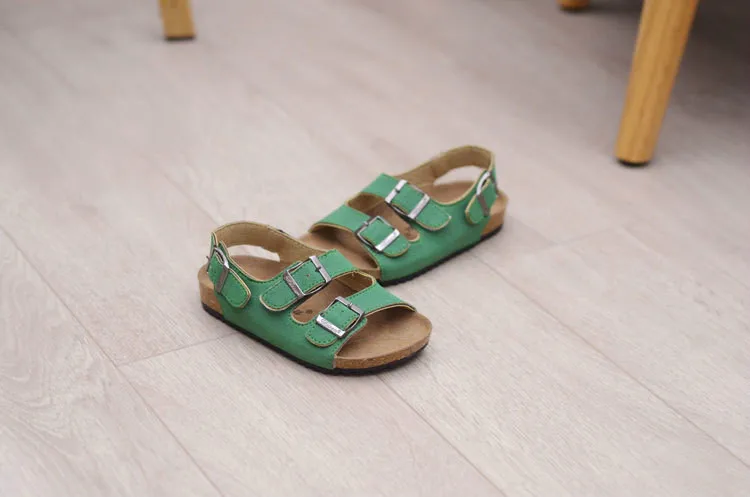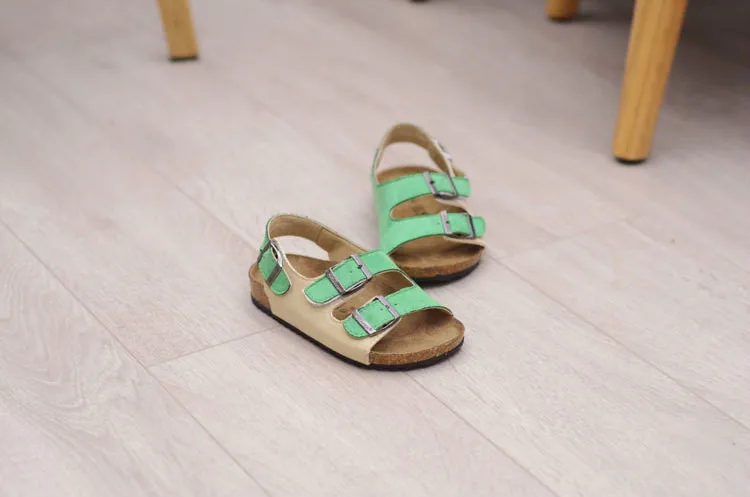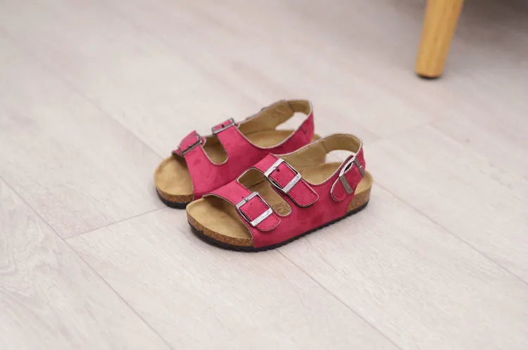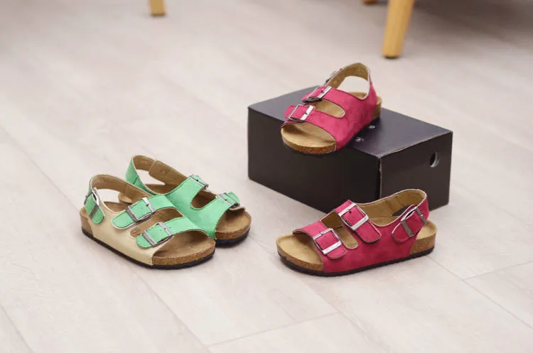 Childrens Cork Sandals Girls Shoes Boys Sandals Leather Kids Summer Shoes Baby Casual Sandals Exposed Toe Candy Color EUR 22-39#