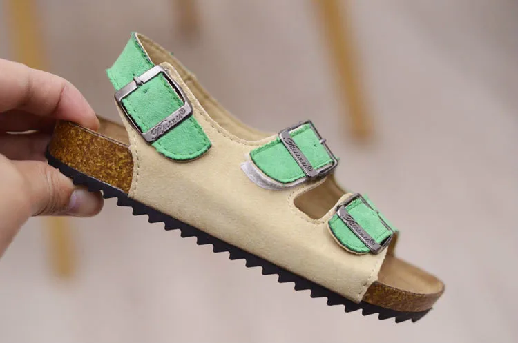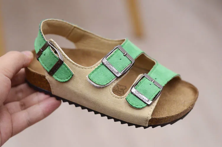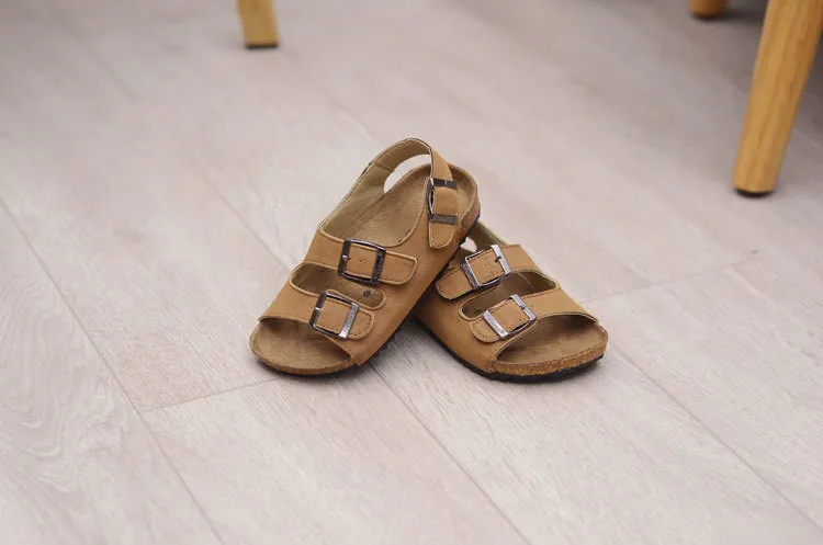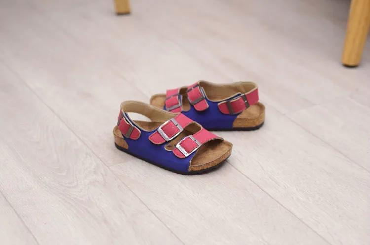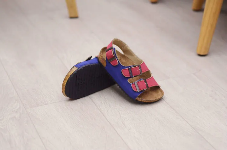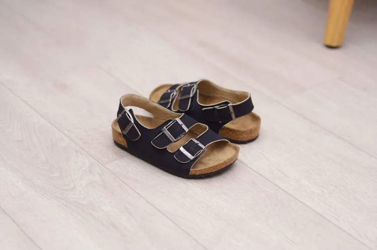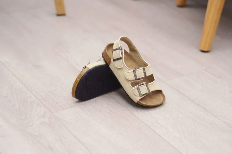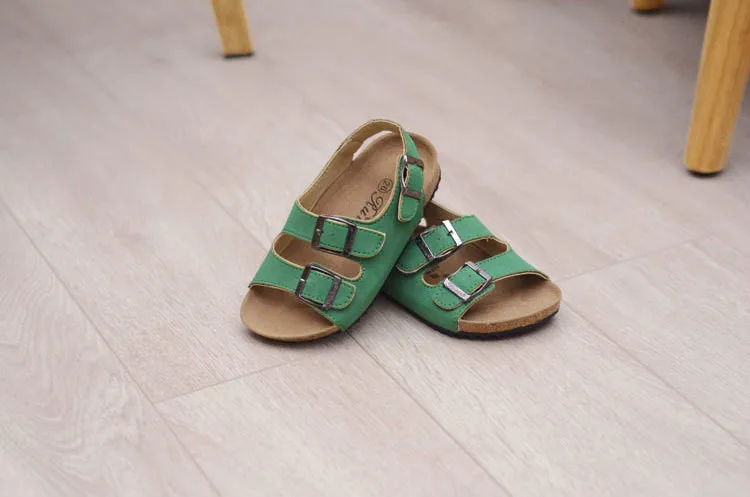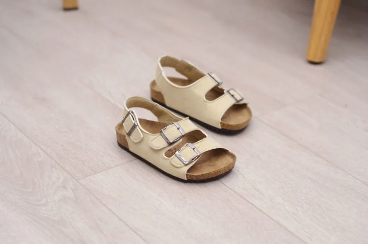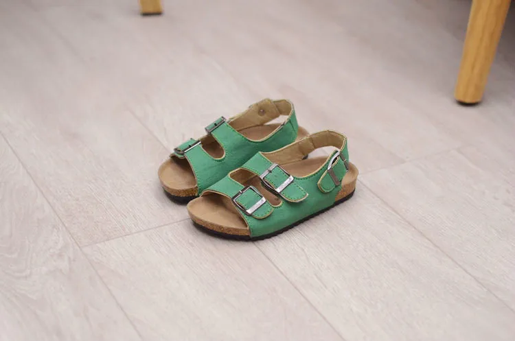 Childrens Cork Sandals Girls Shoes Boys Sandals Leather Kids Summer Shoes Baby Casual Sandals Exposed Toe Candy Color EUR 22-39#