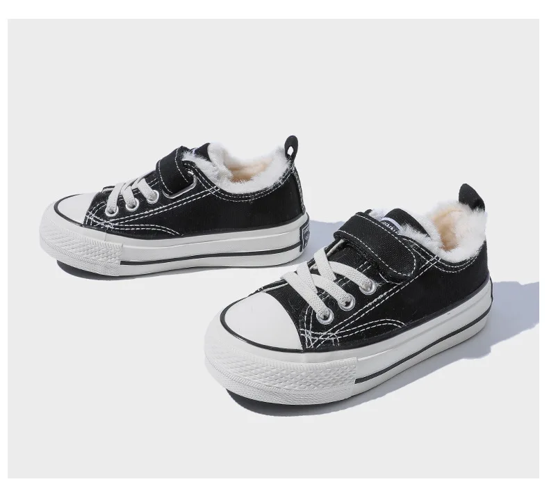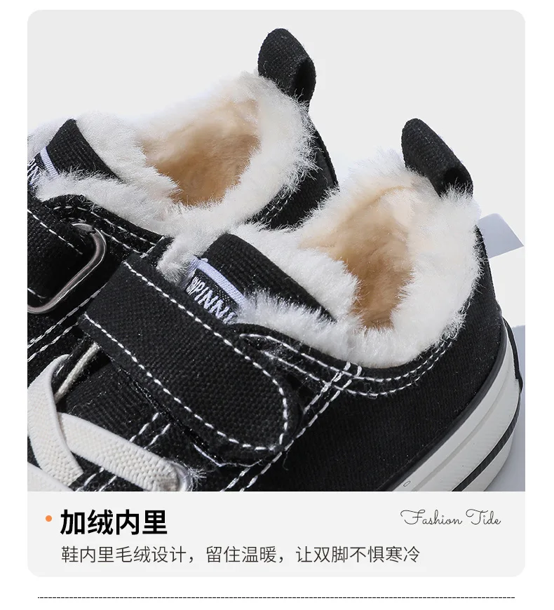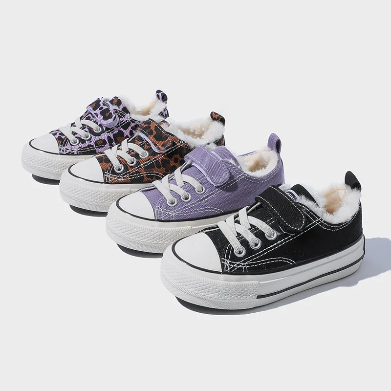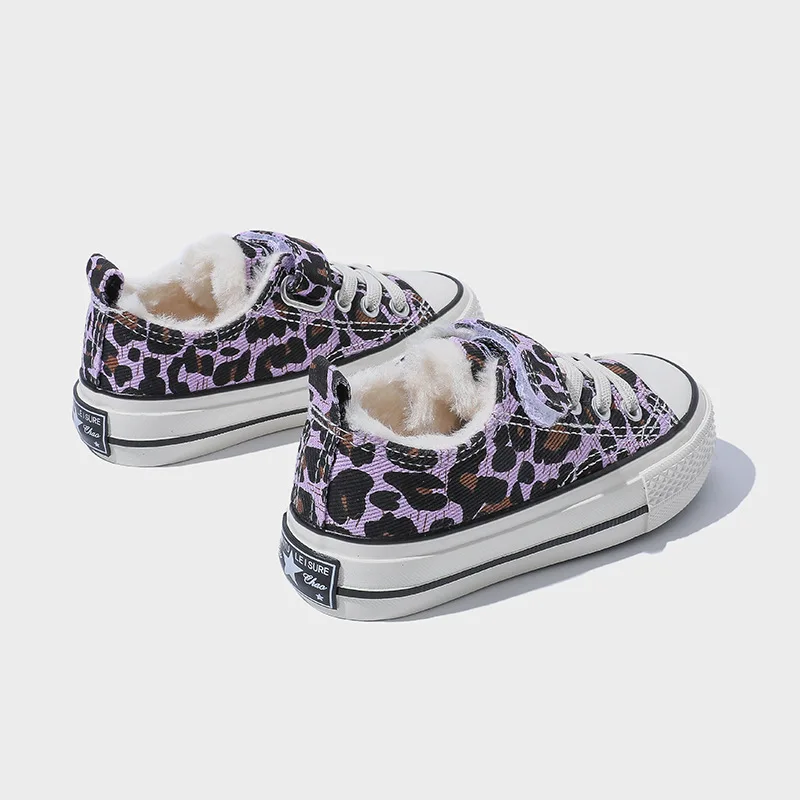 Children’s Shoes Cotton Shoes 2023 Winter New Plus Velvet Canvas Shoes Boys Leopard Fur Shoes Girls Plus Velvet Sports Shoes