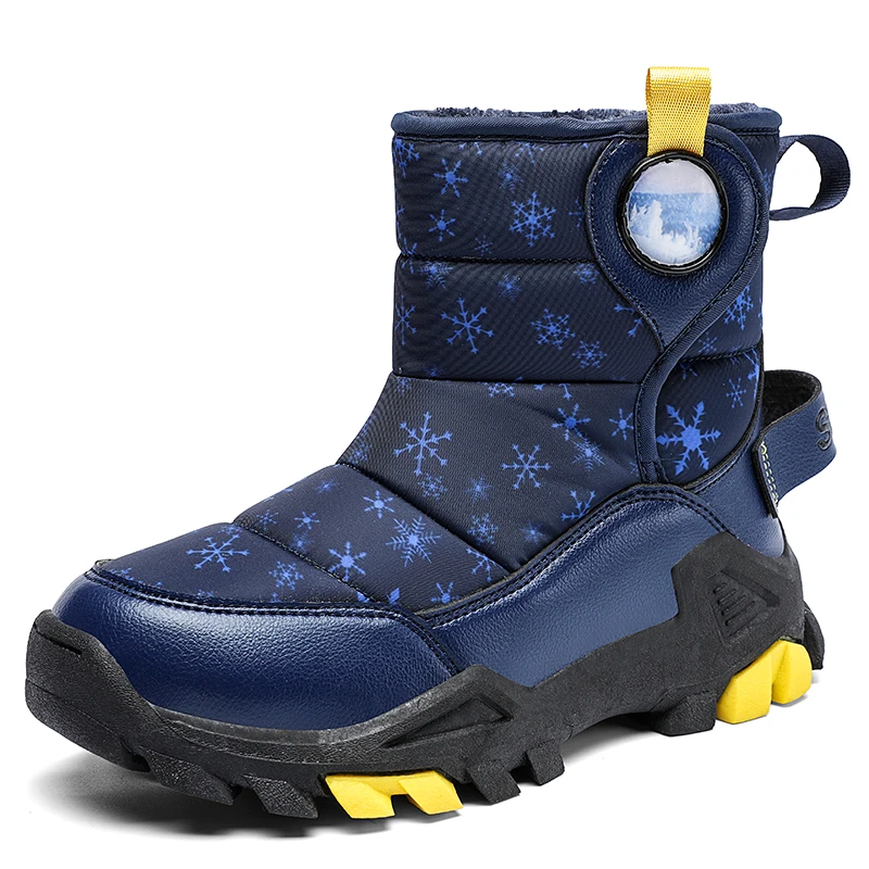 Children’s Snow Boots Winter Fur Warm Outdoor Waterproof Sports Shoes Boys Winter Snow Boots Fashion Leather Boys Snow Boots