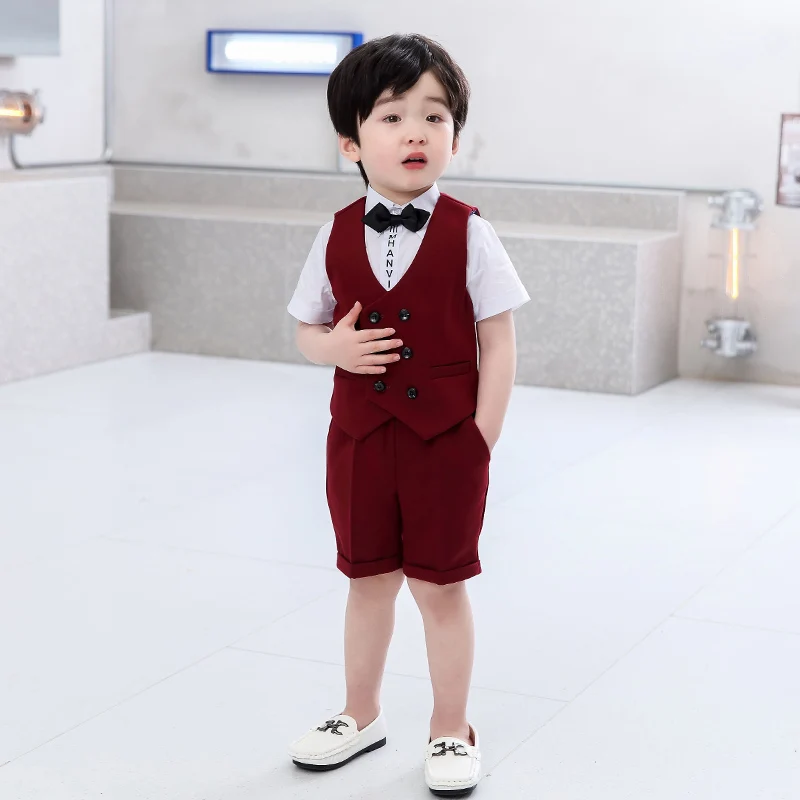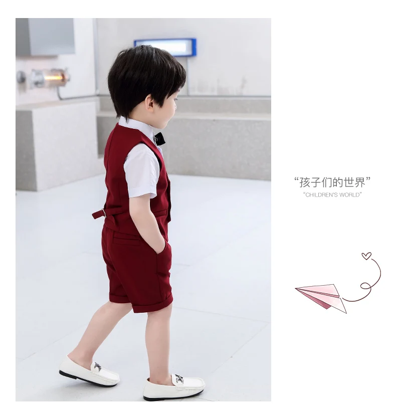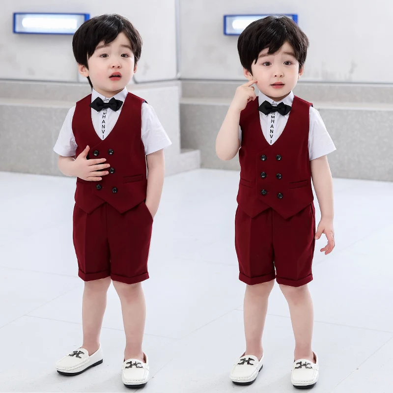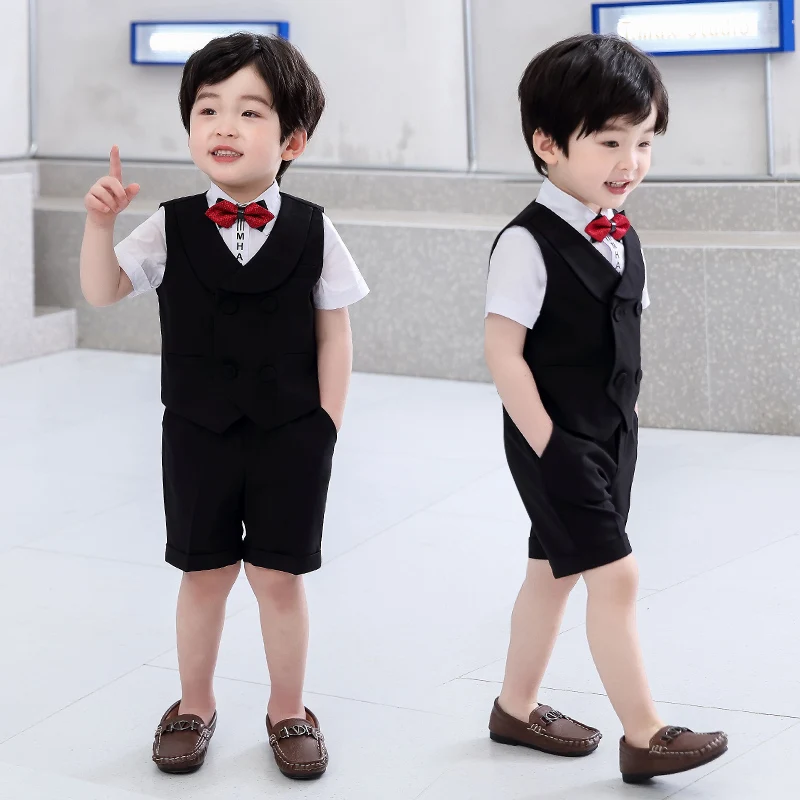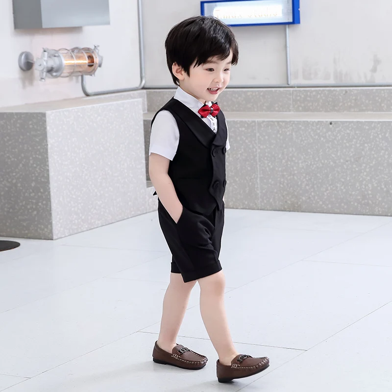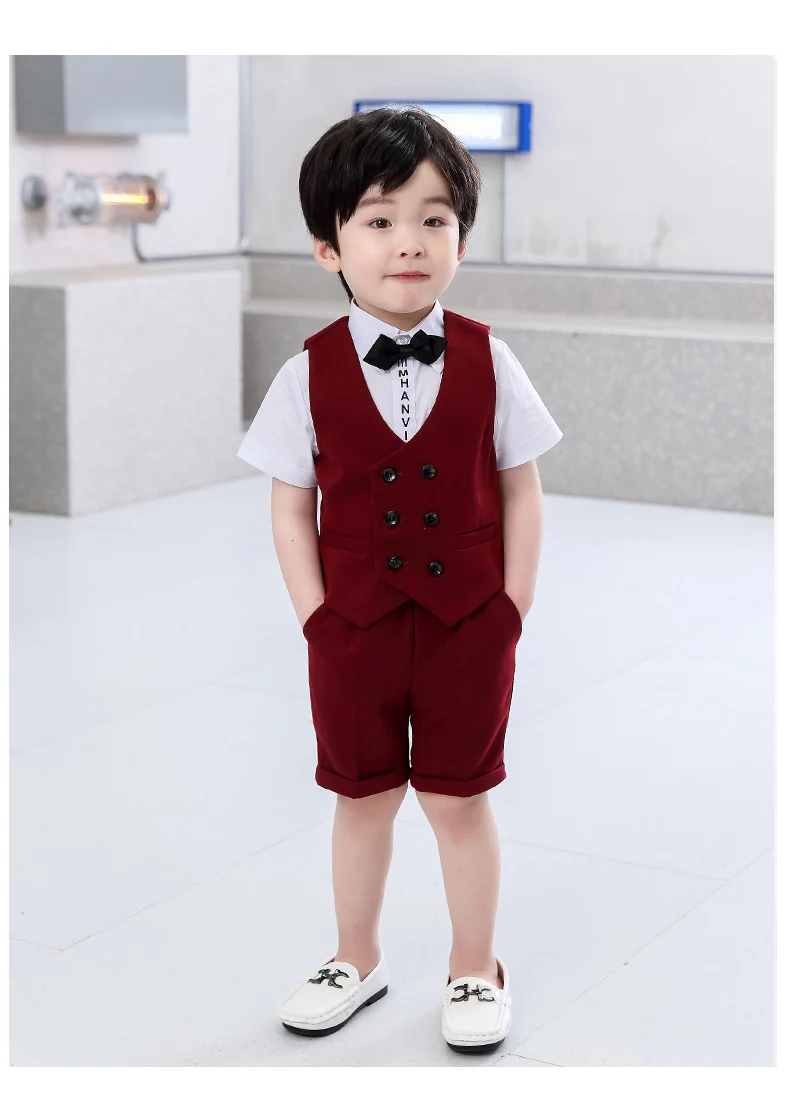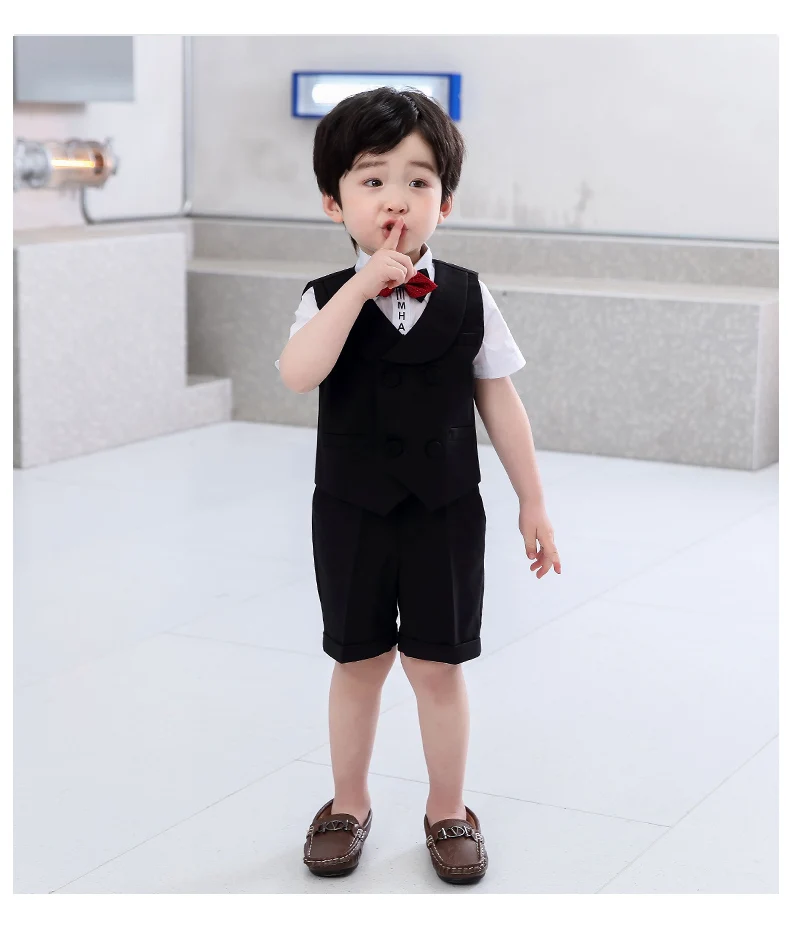 Children’s Summer Formal Vest Suit Set Baby Boy Birthday Party Performance Costume Kids Waistcoat Shorts Bowtie Clothing Set