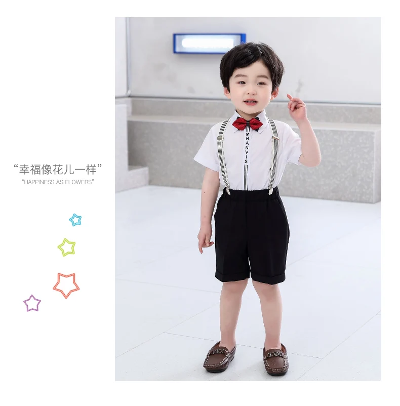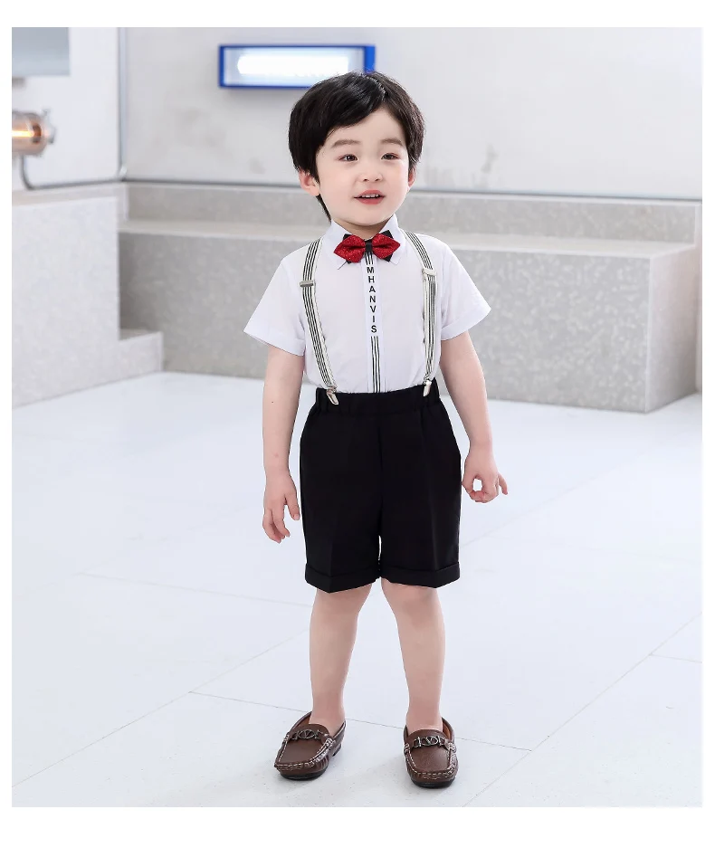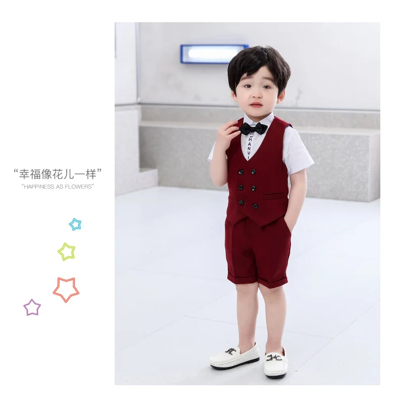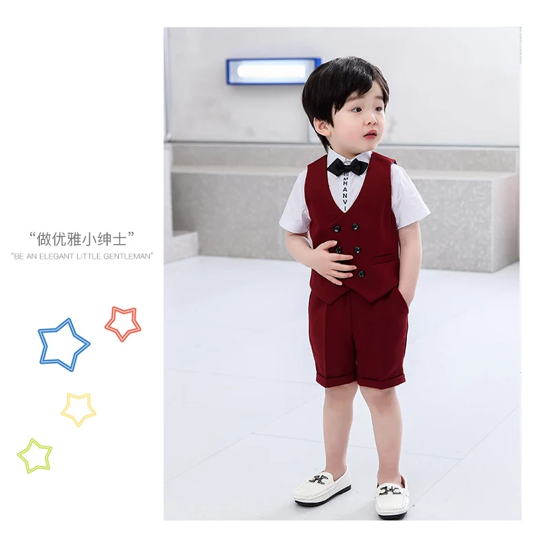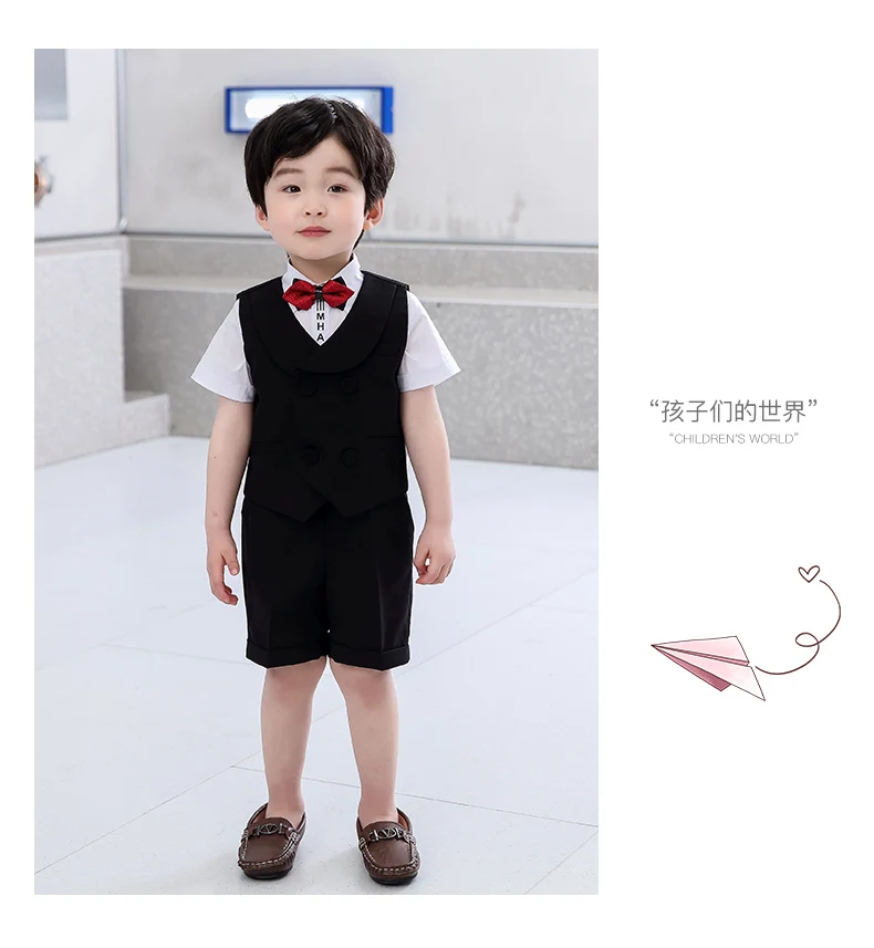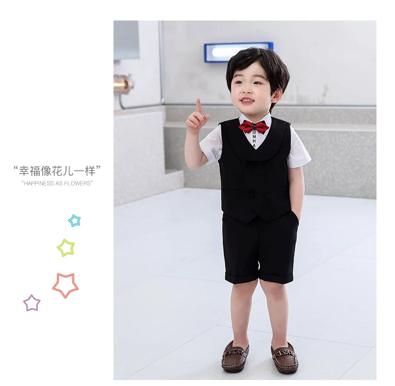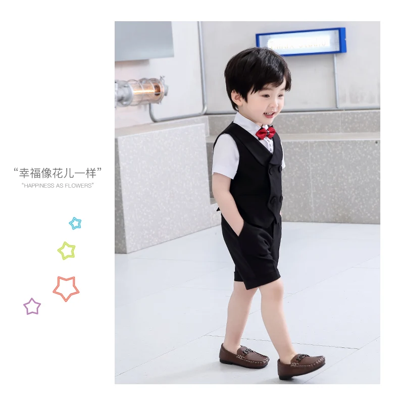 Children’s Summer Formal Vest Suit Set Baby Boy Birthday Party Performance Costume Kids Waistcoat Shorts Bowtie Clothing Set