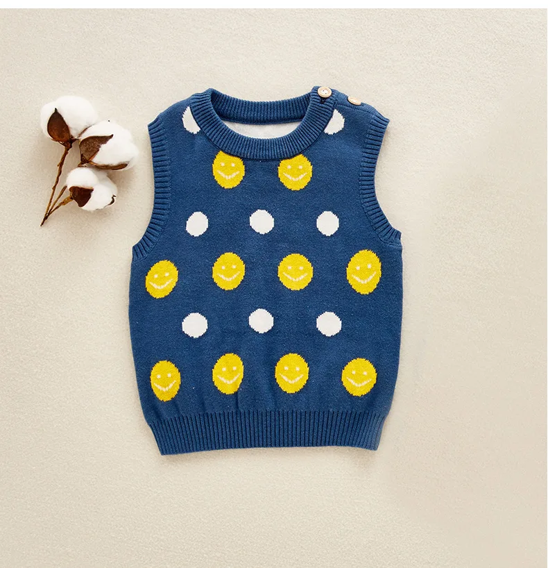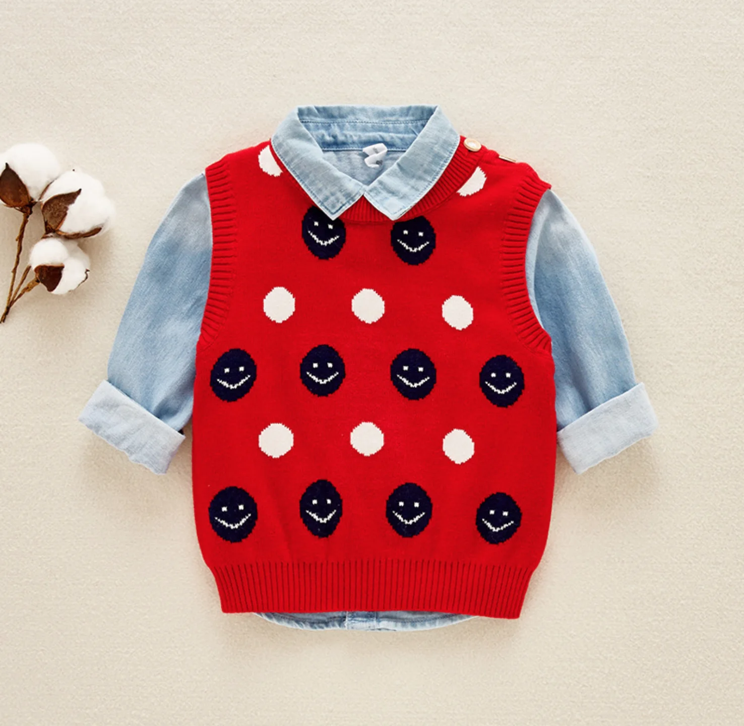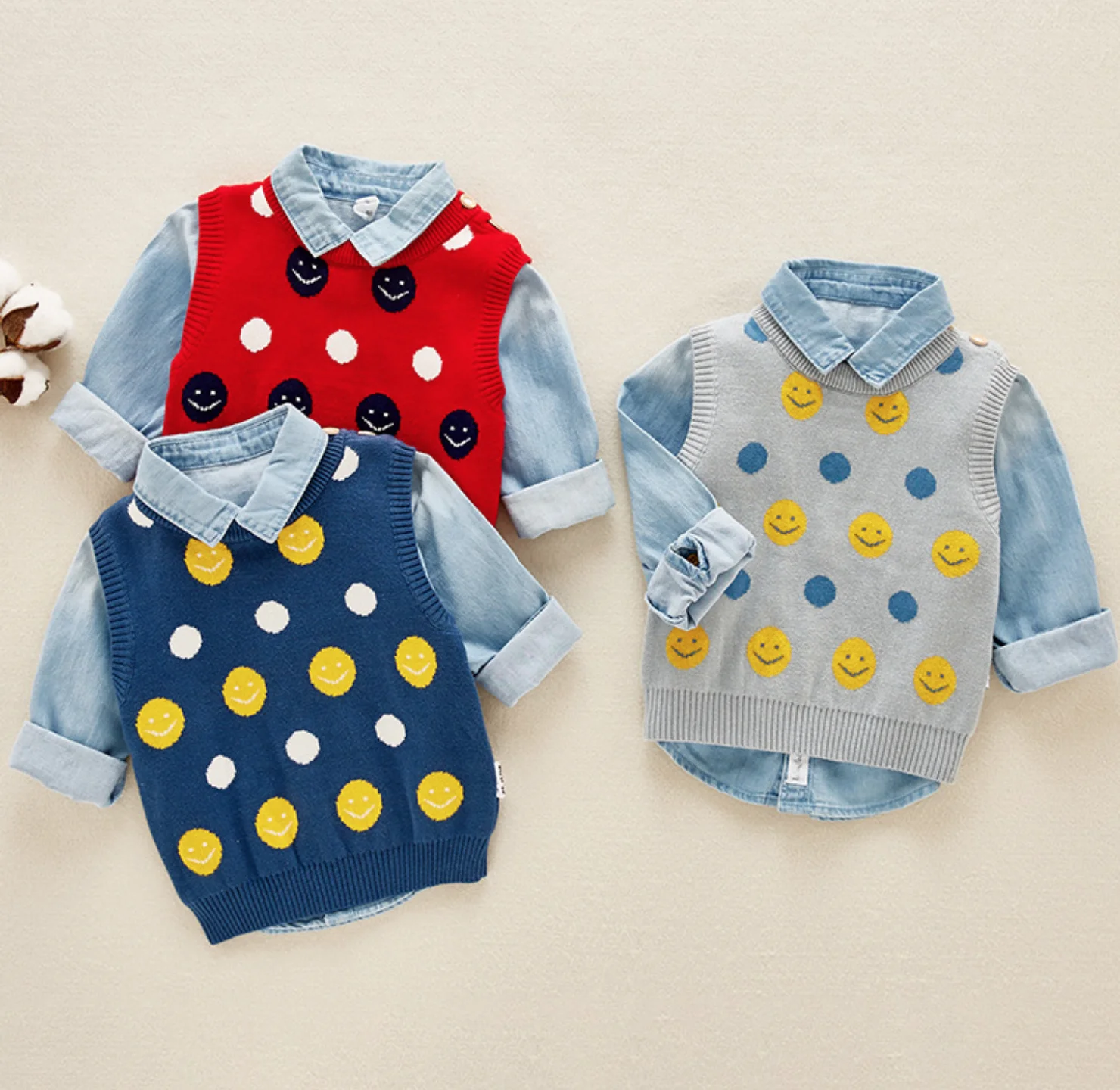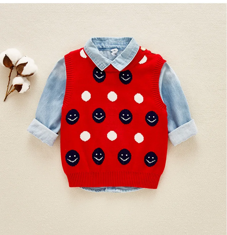 Children’s sweater boy vest double smiley pattern sleeveless top baby wild children’s clothing new