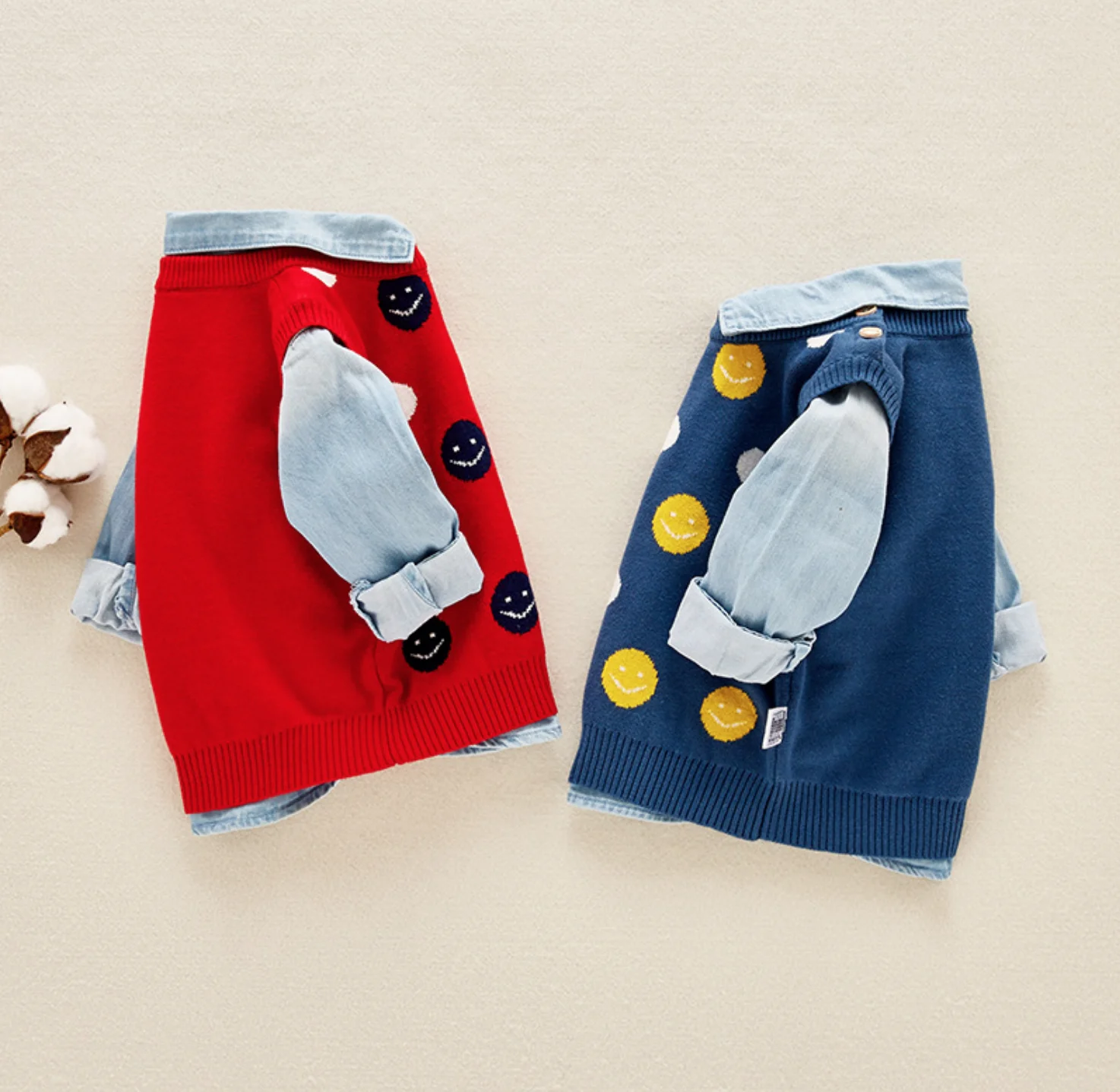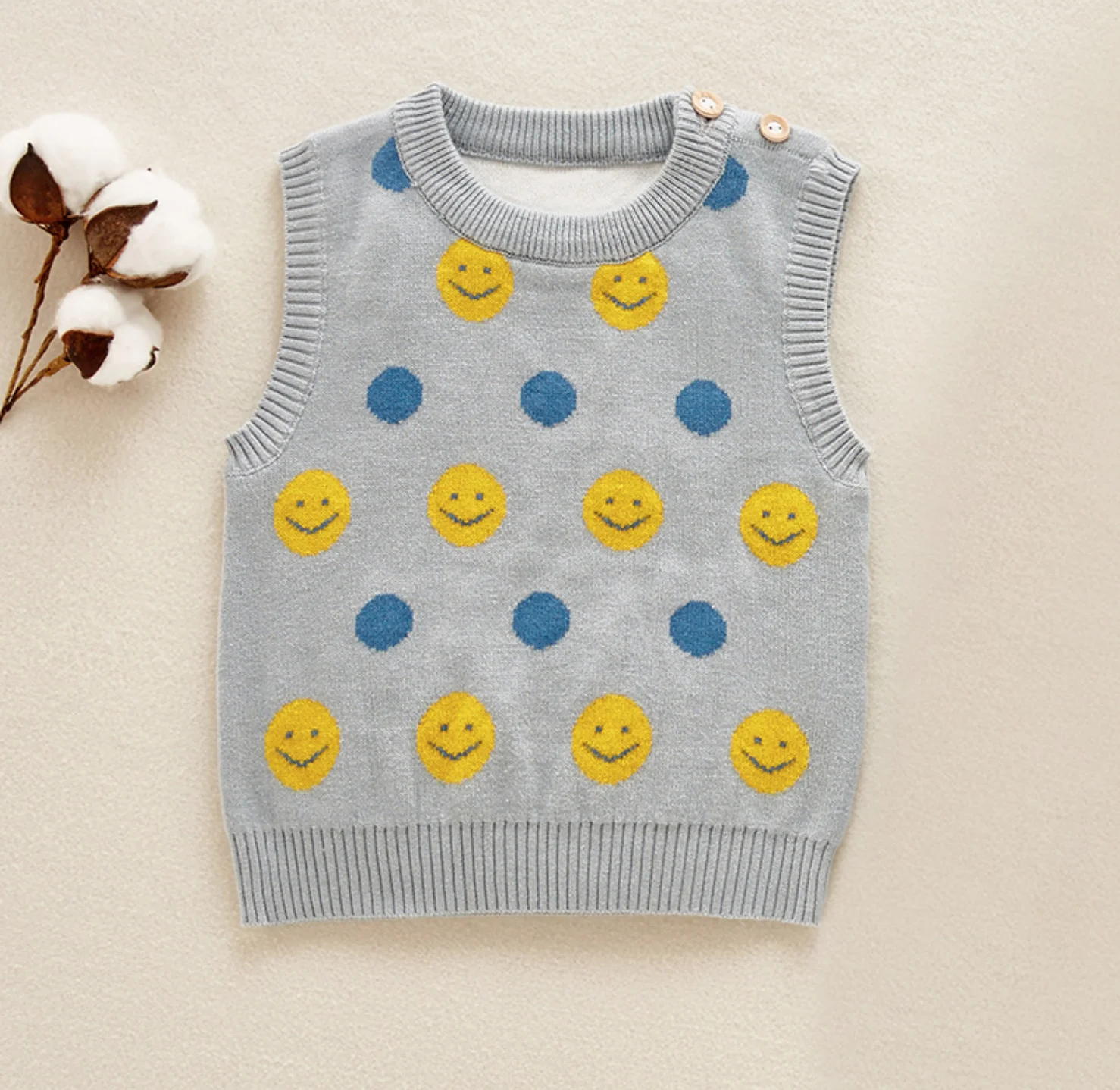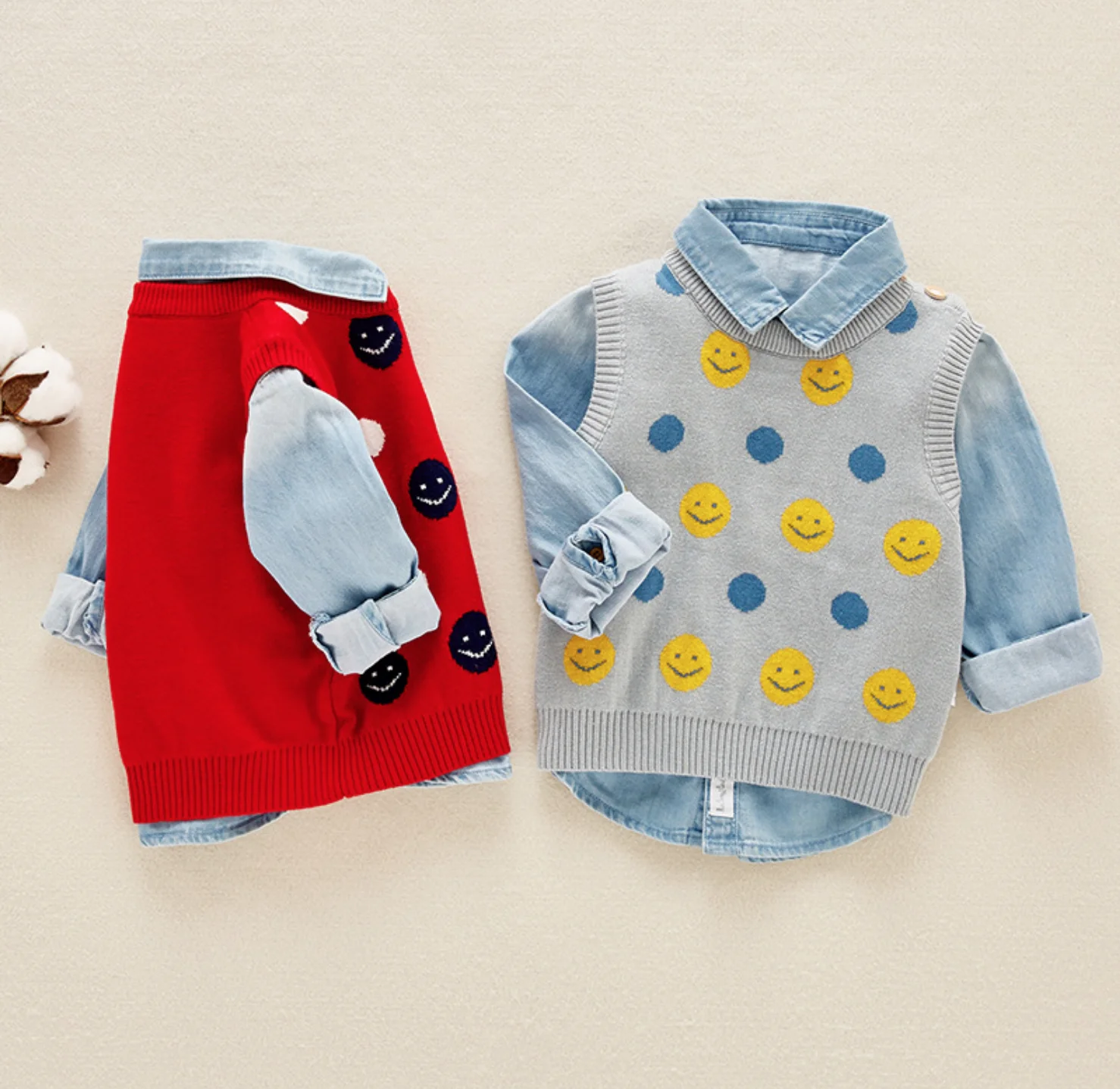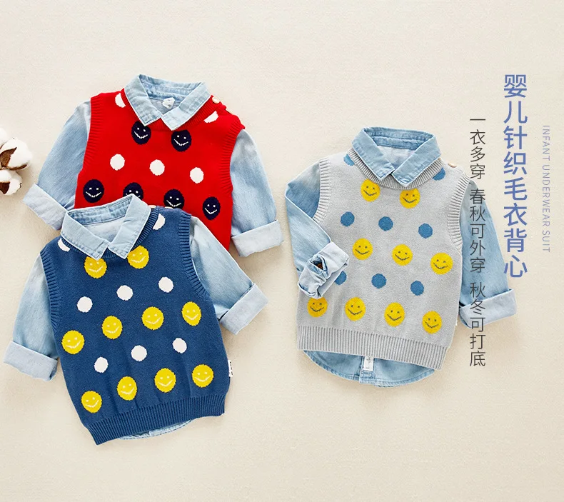 Children’s sweater boy vest double smiley pattern sleeveless top baby wild children’s clothing new