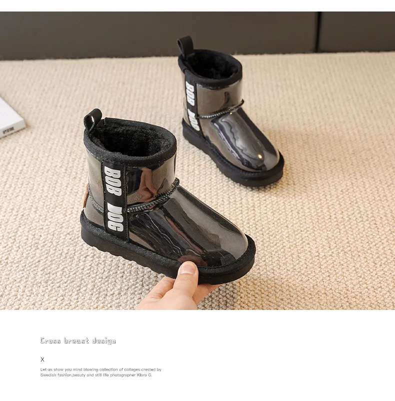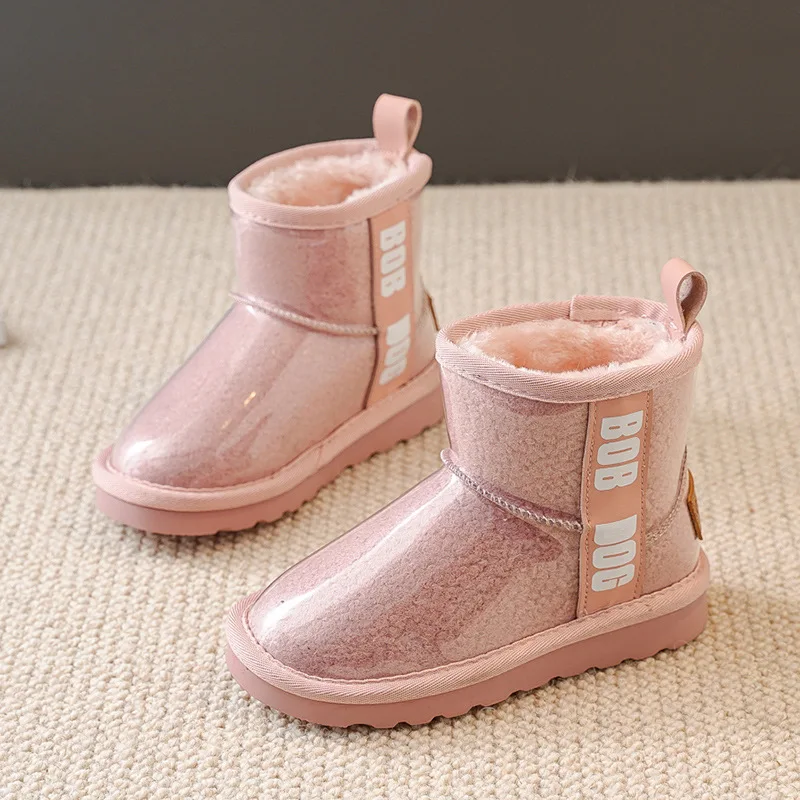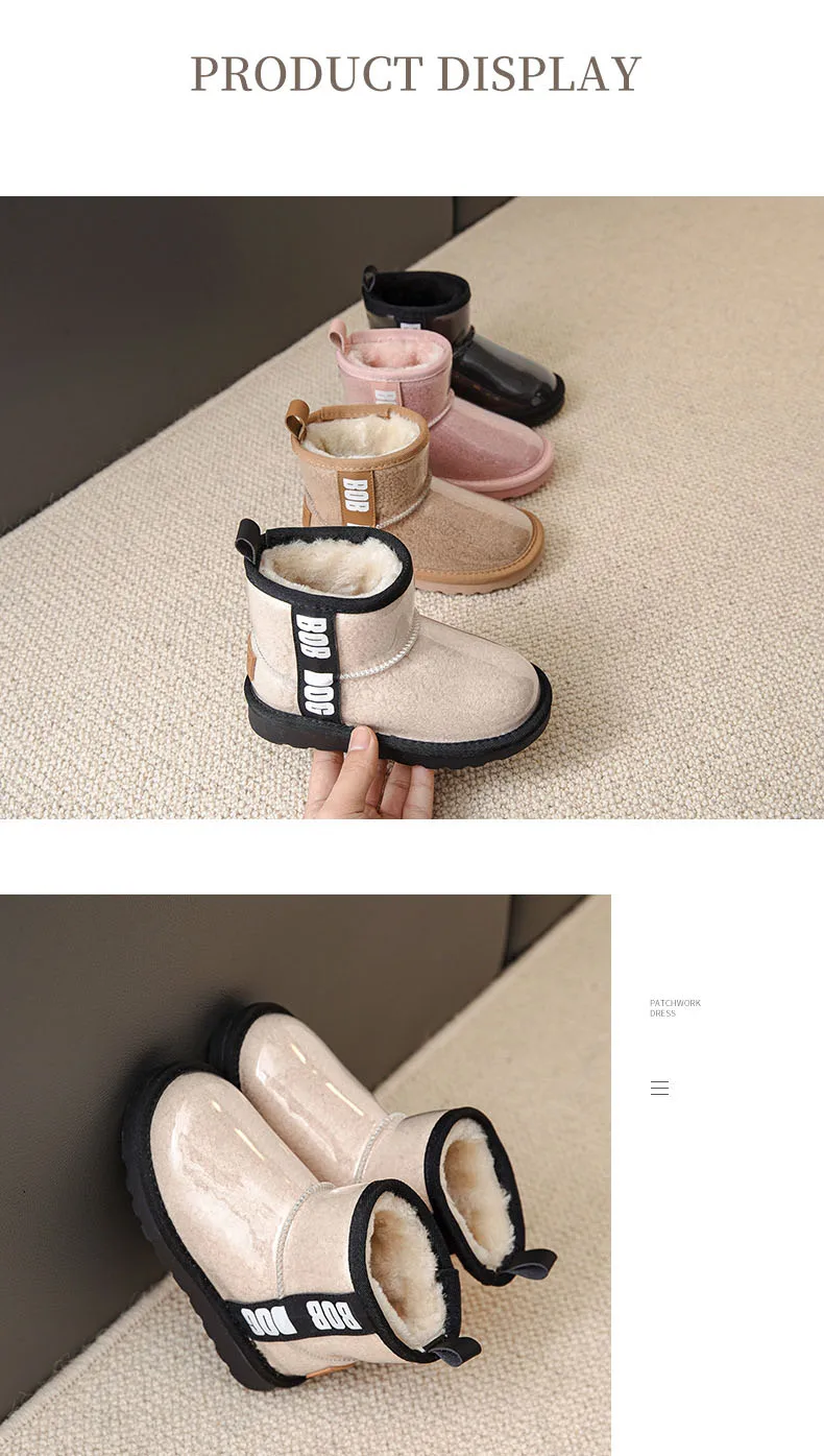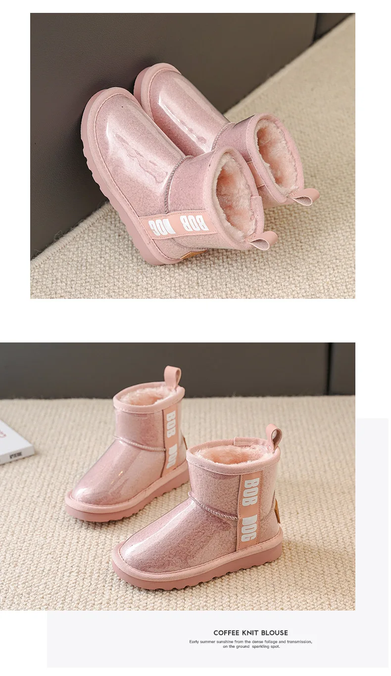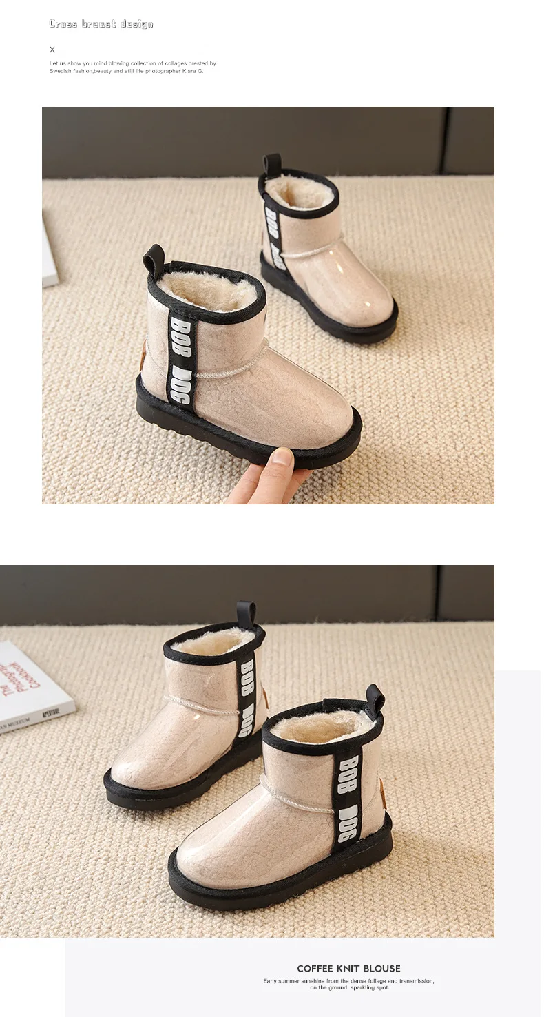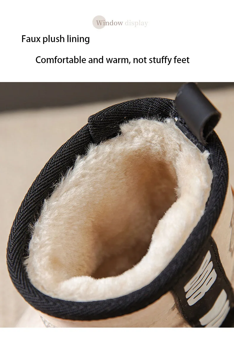 Children’s Winter Girls Warm and Waterproof Snow Boots Boys’ Fleece Thickened Large Cotton Shoes