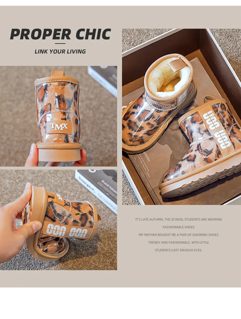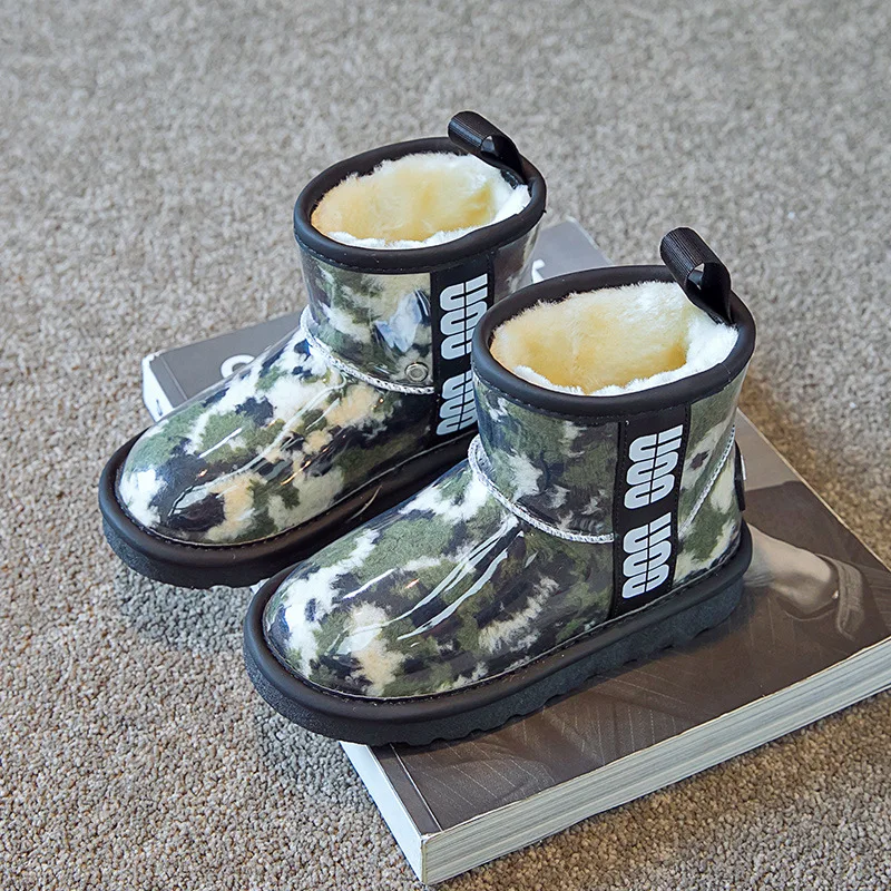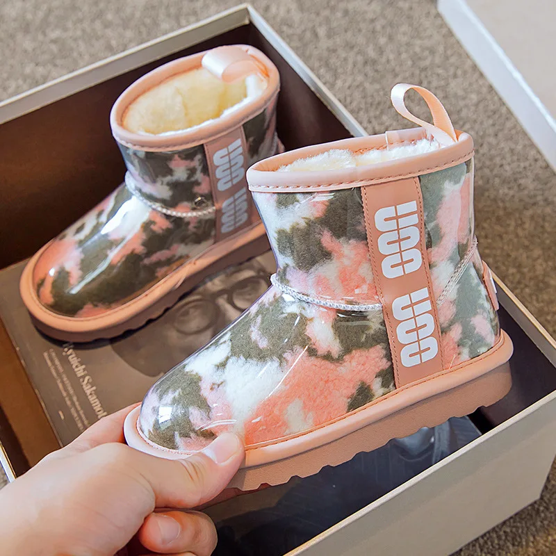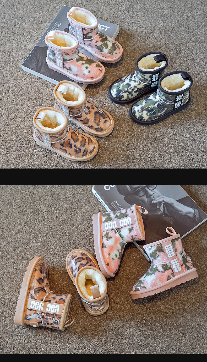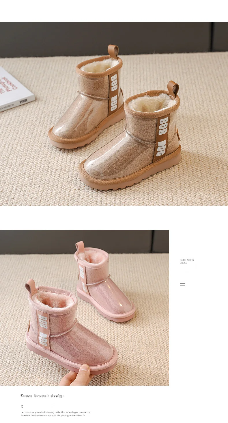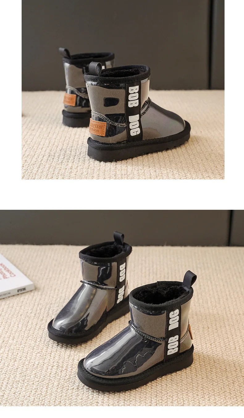 Children’s Winter Girls Warm and Waterproof Snow Boots Boys’ Fleece Thickened Large Cotton Shoes