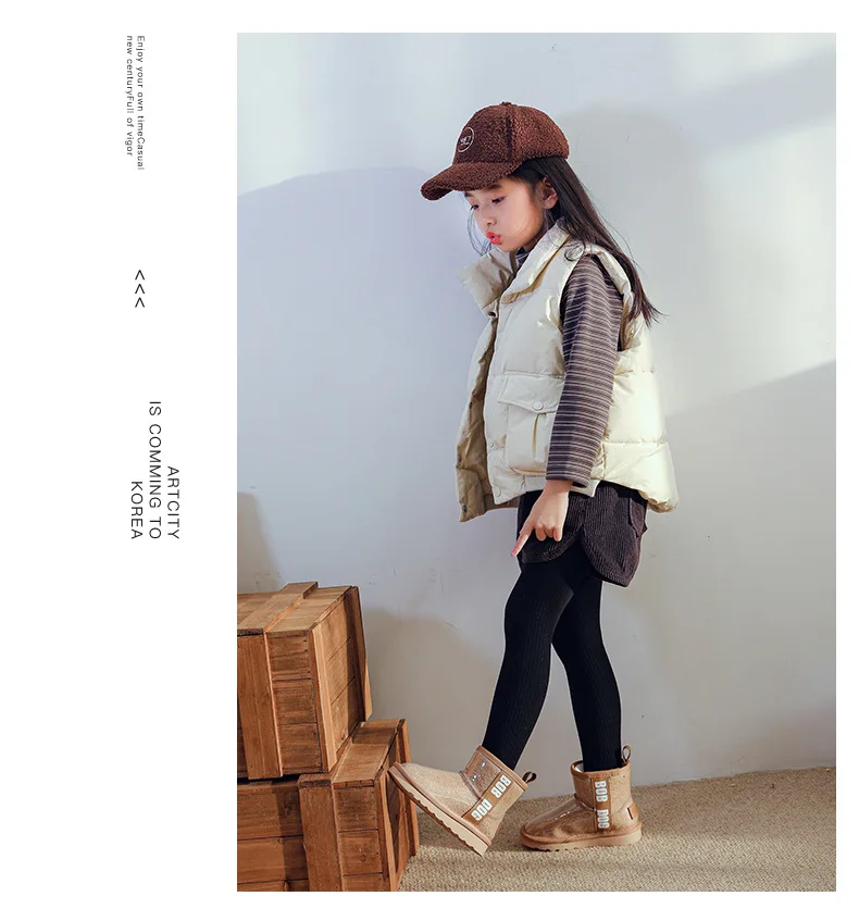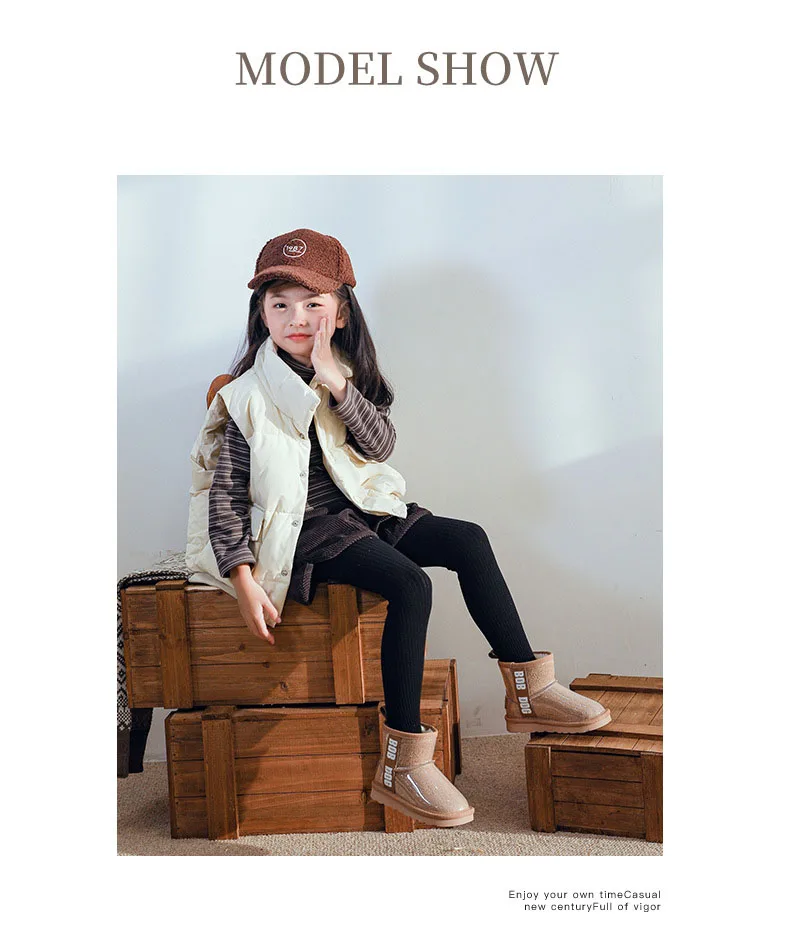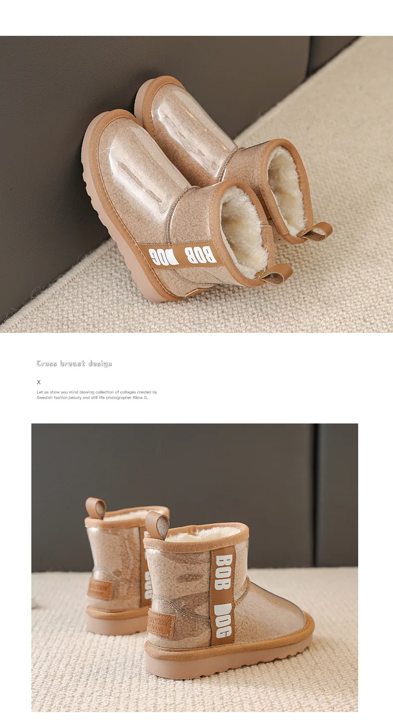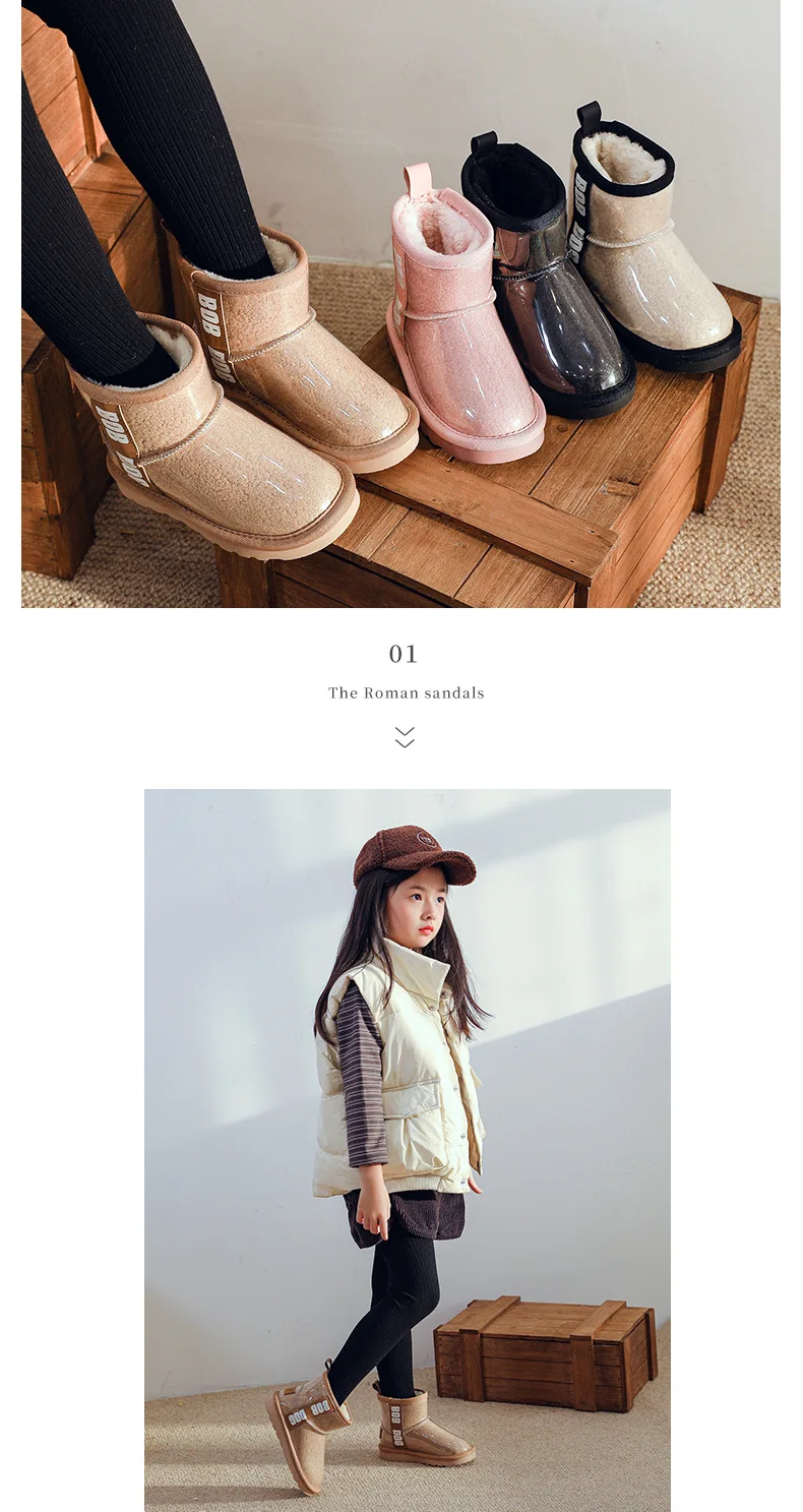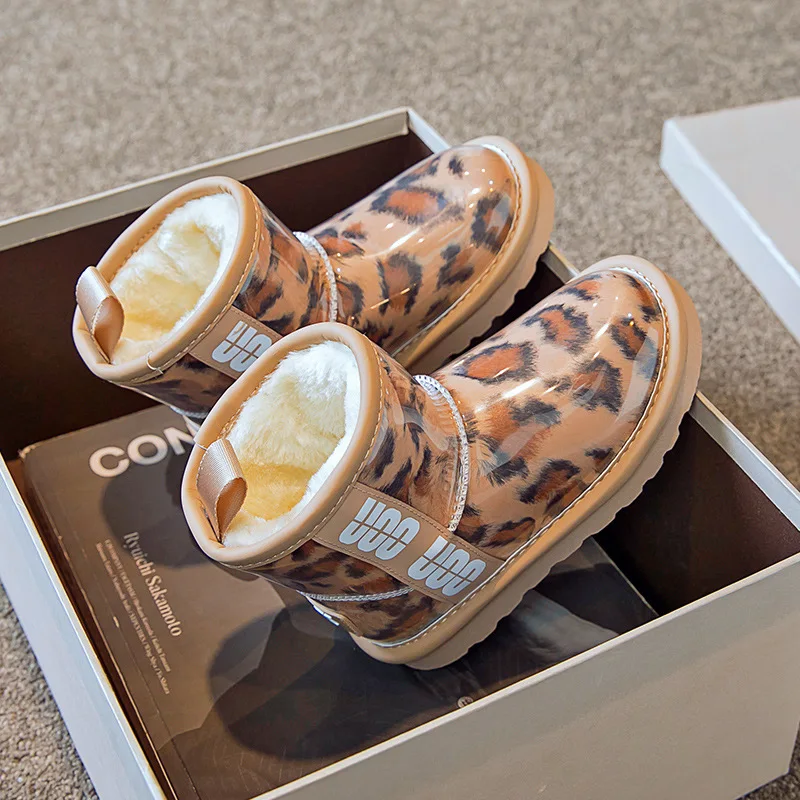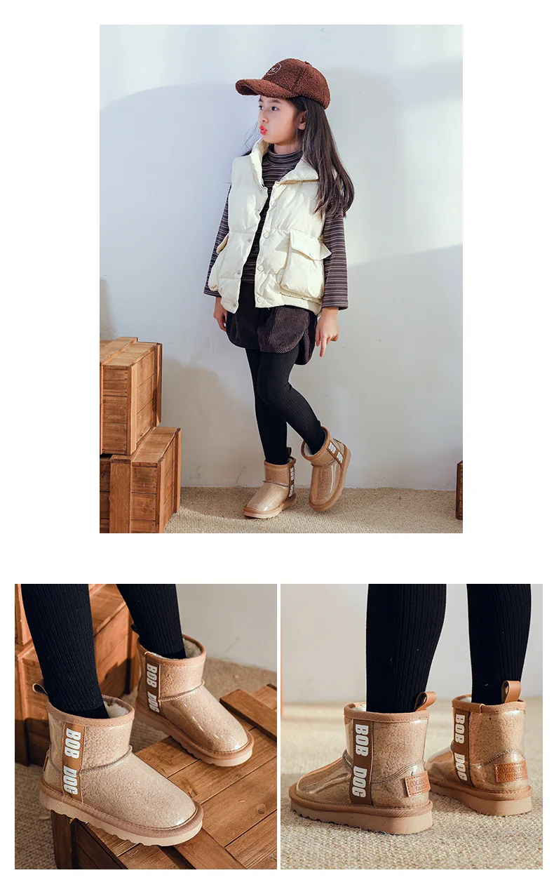 Children’s Winter Girls Warm and Waterproof Snow Boots Boys’ Fleece Thickened Large Cotton Shoes