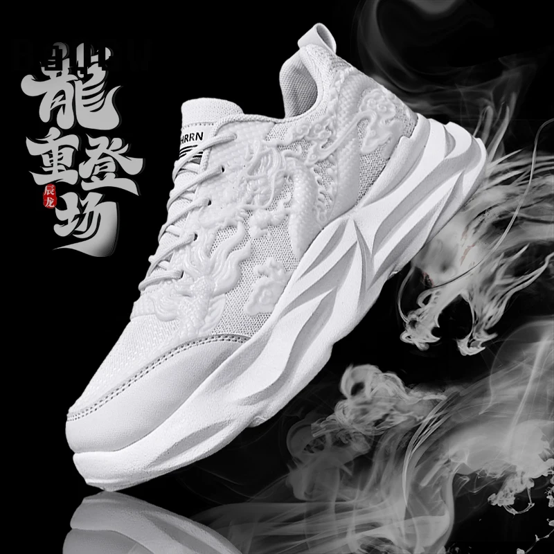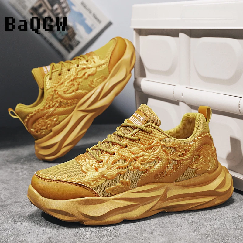 Chinese Style 2024 New Year Dragon Pattern Carving Fashion Men’s Sneakers Casual Sport Running Shoes Designer Luxury Breathable