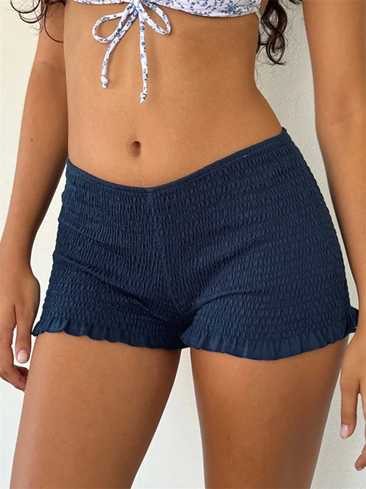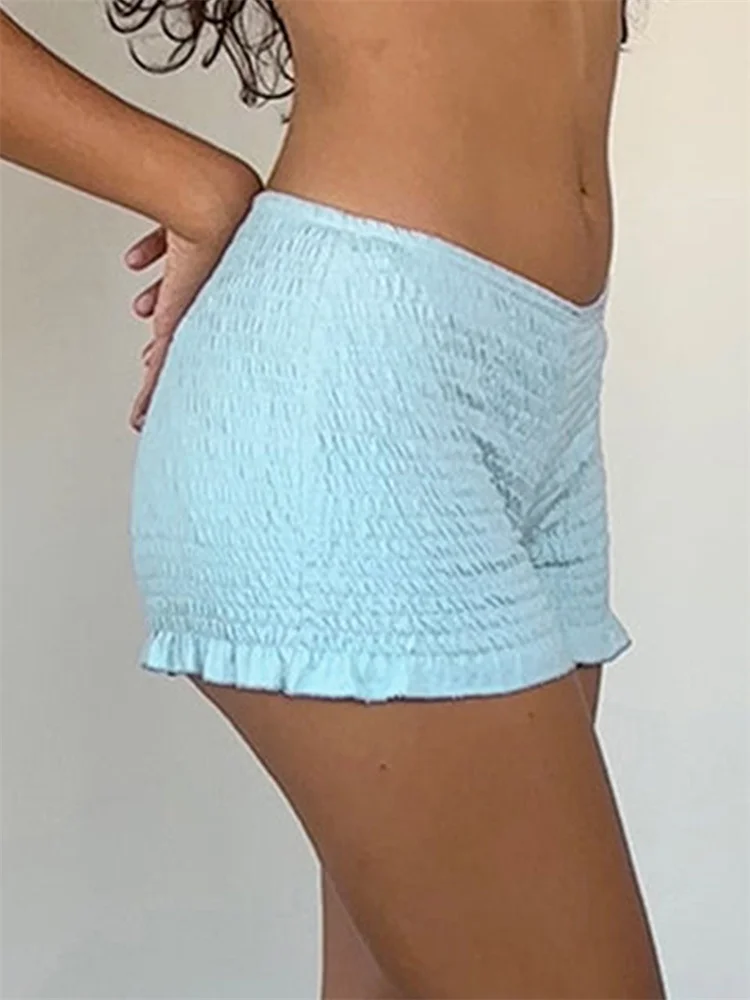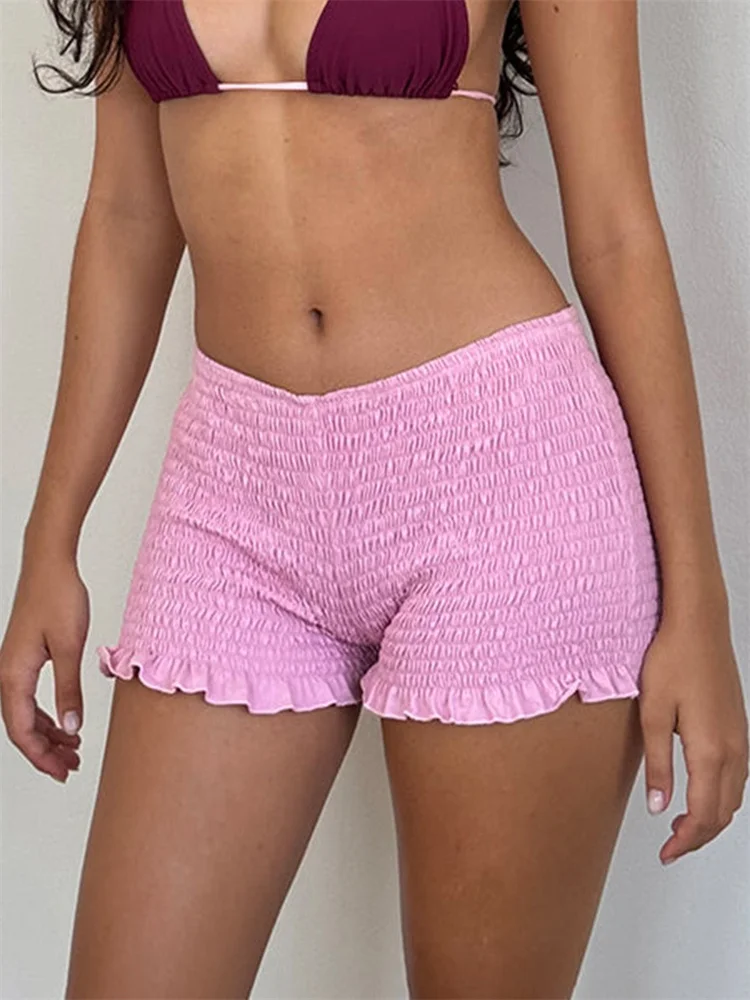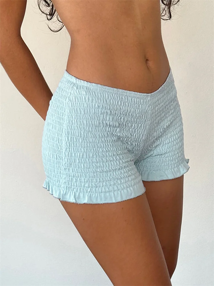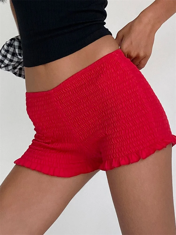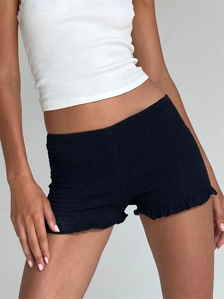 CHRONSTYLE Women Ruched Shorts Slim Fit Casual Elastic Waist Solid Color Ruffles Short Pants for Summer Party Clubwear 2024 New