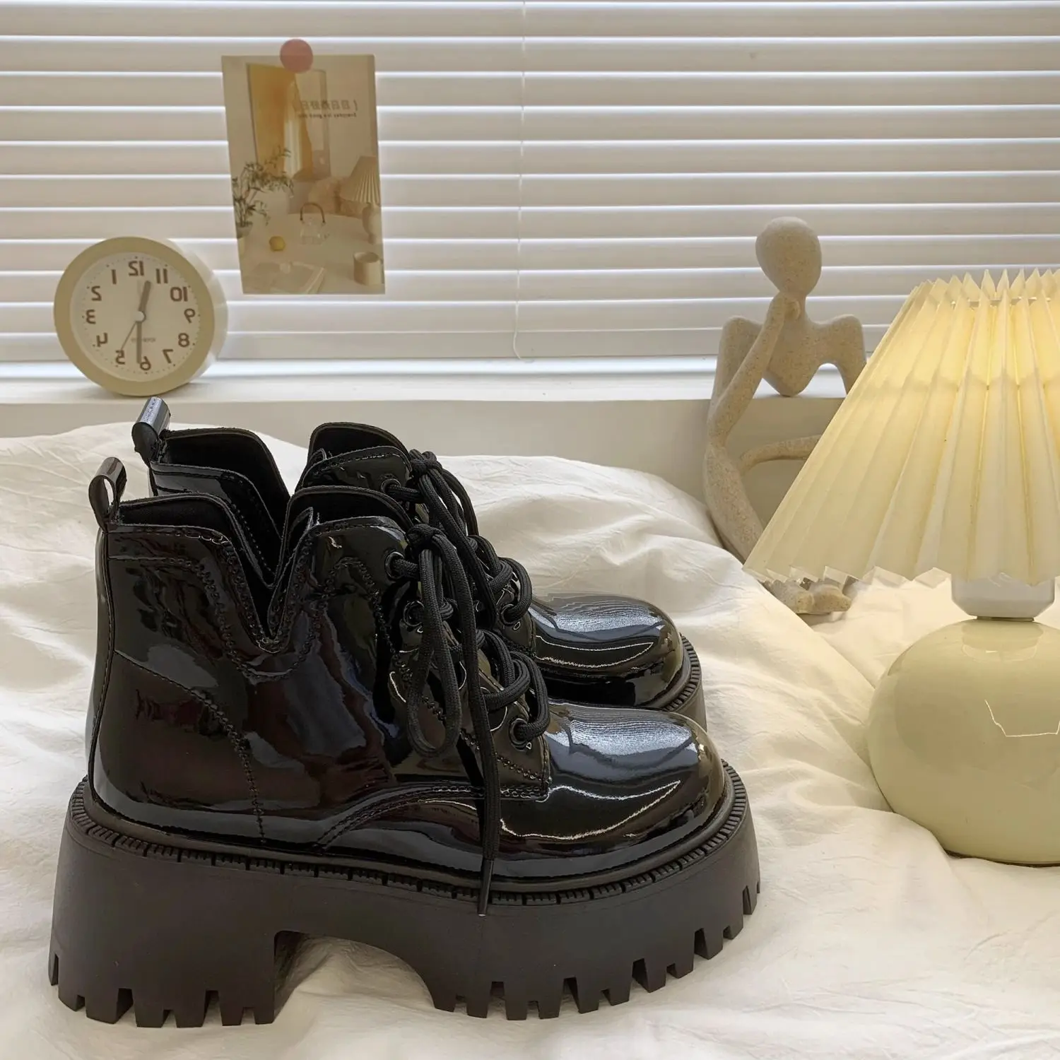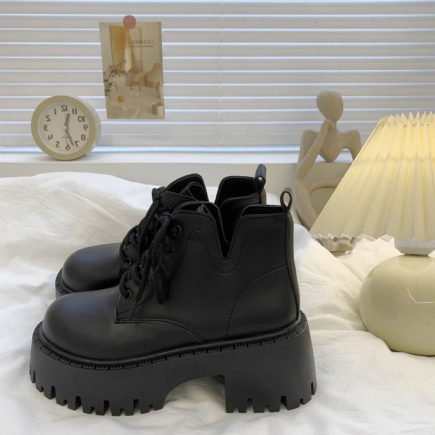 Chunky Black Platform Casual Women’s Ankle Boots 2024 New Designer Autumn Winter British Style Platform Boots Shoes for Women