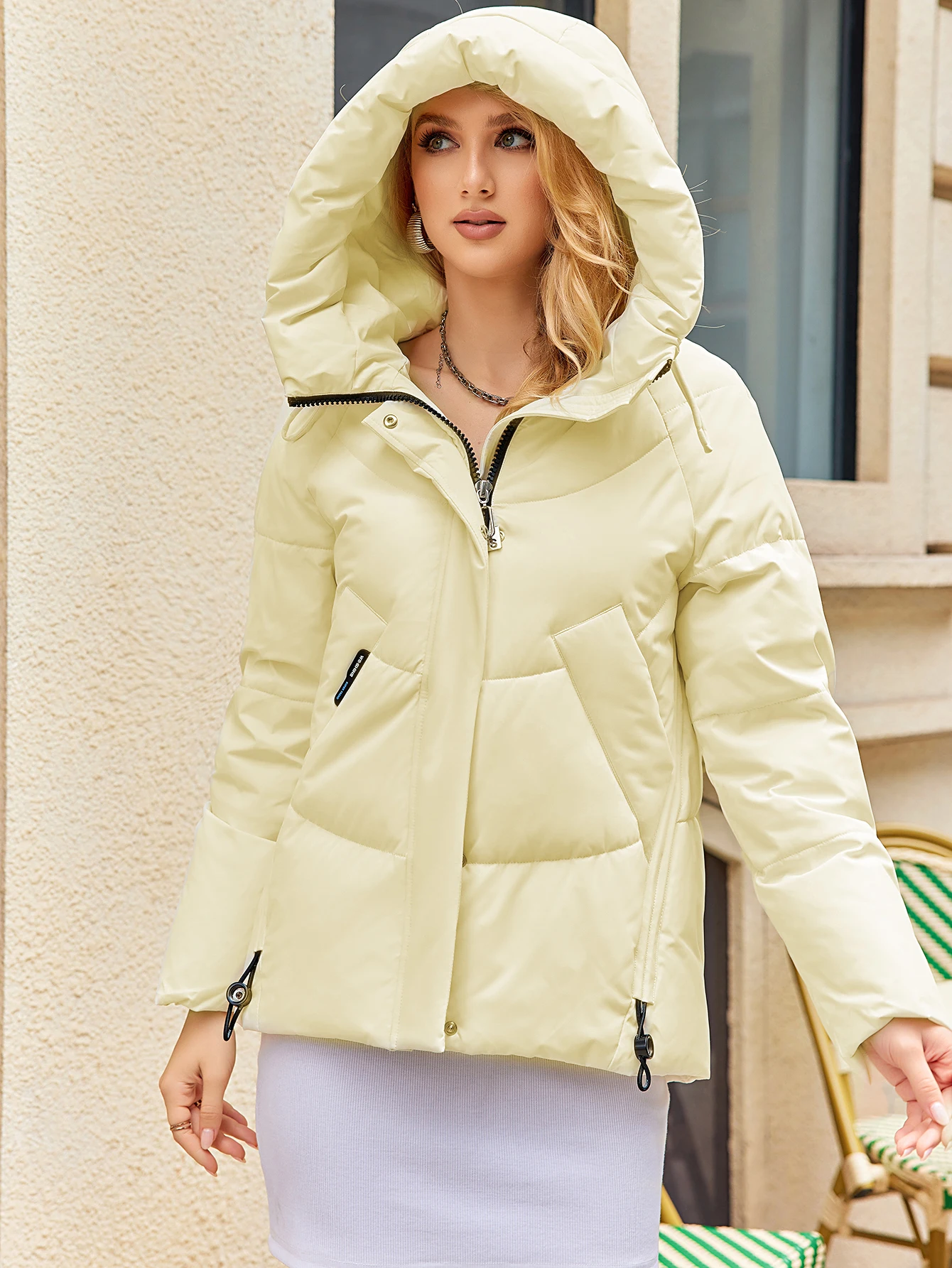 Cinemore Winter Down Jacket Women Short Classic zipper Design Pocket Stand Collar Hooded Slim Coat Women Parkas 83319