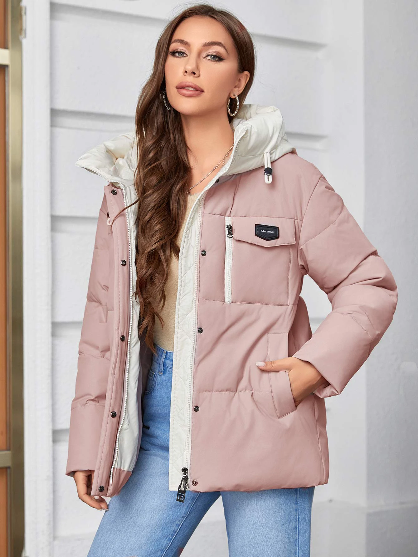 Buttons, lapels, pockets, quilted jacket