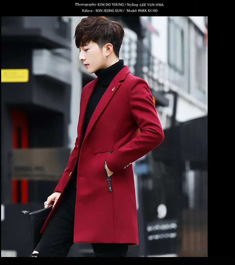 Claret Red Long Trench Coats For Mens Fashionable Slim Fit Burgundy Overcoats Mens Black Long Jackets Steampunk Style Clothing