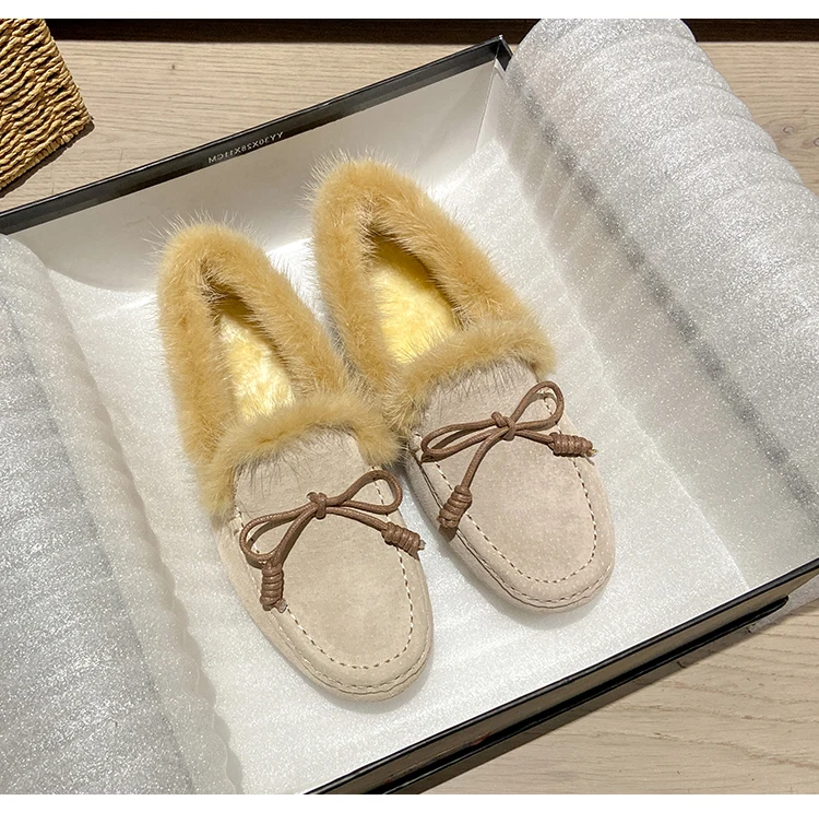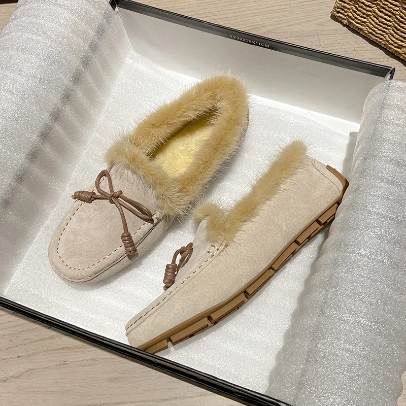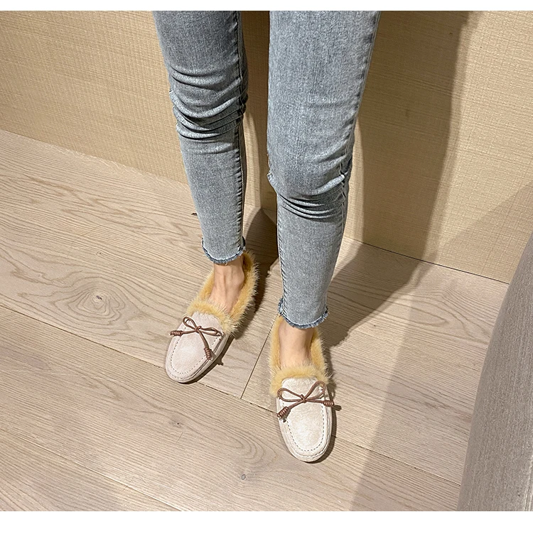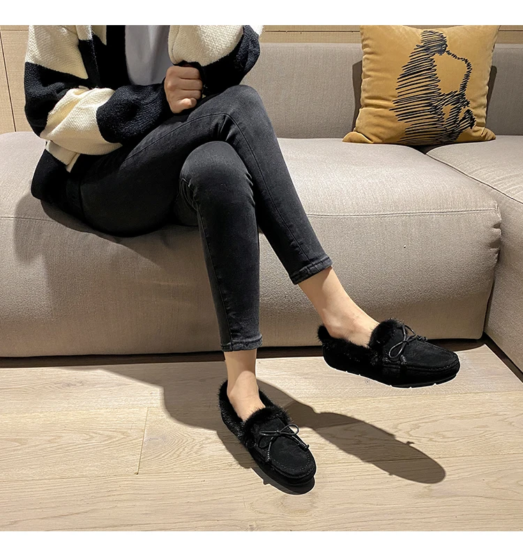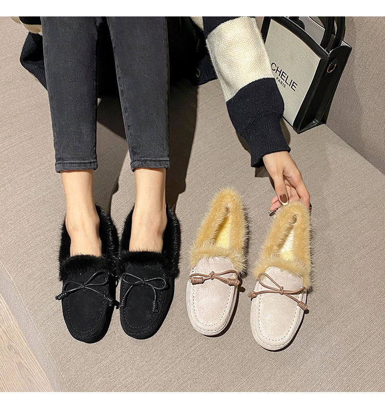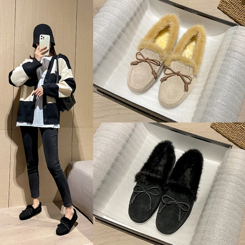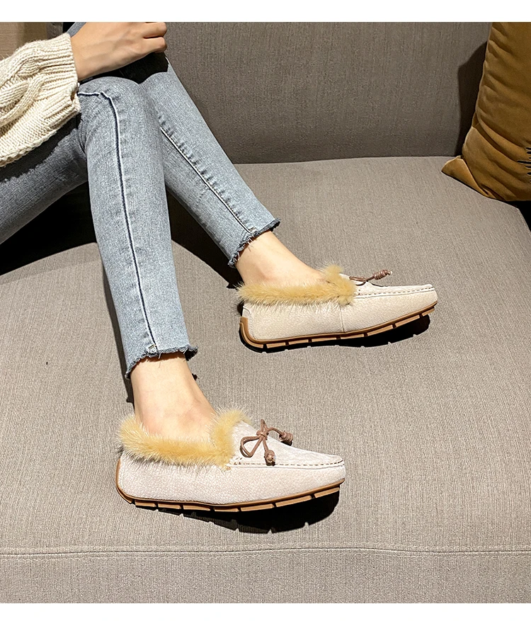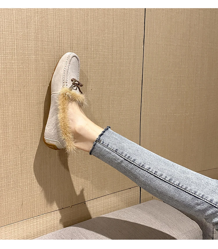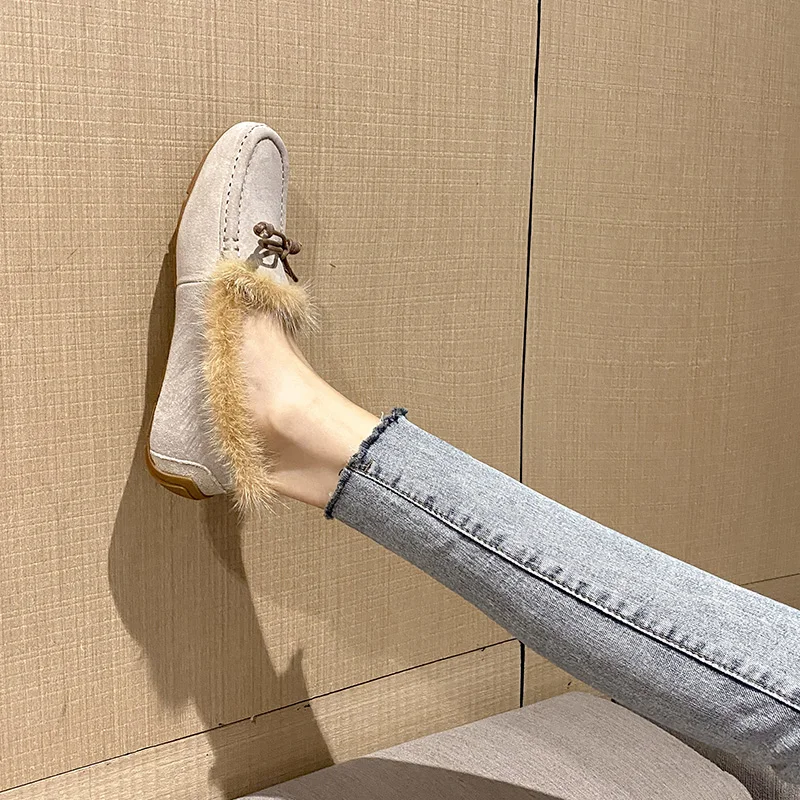 2023 Real Fur Moccasins Women Genuine Leather Flats Walking Shoes