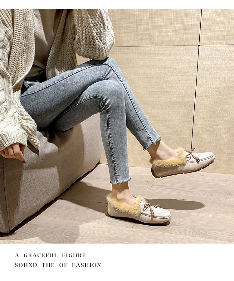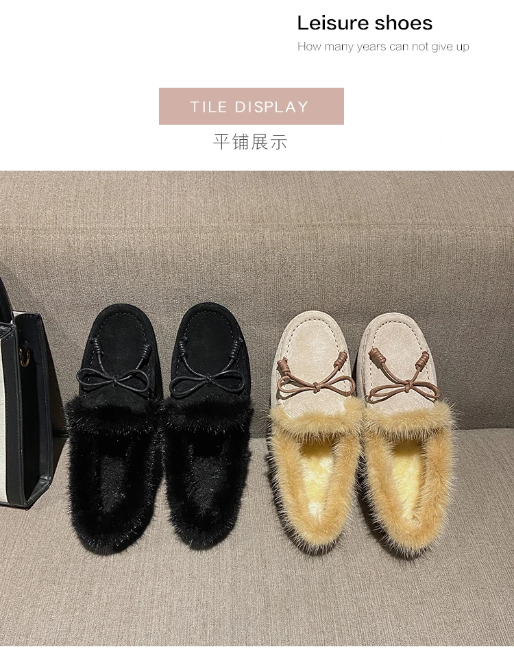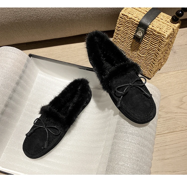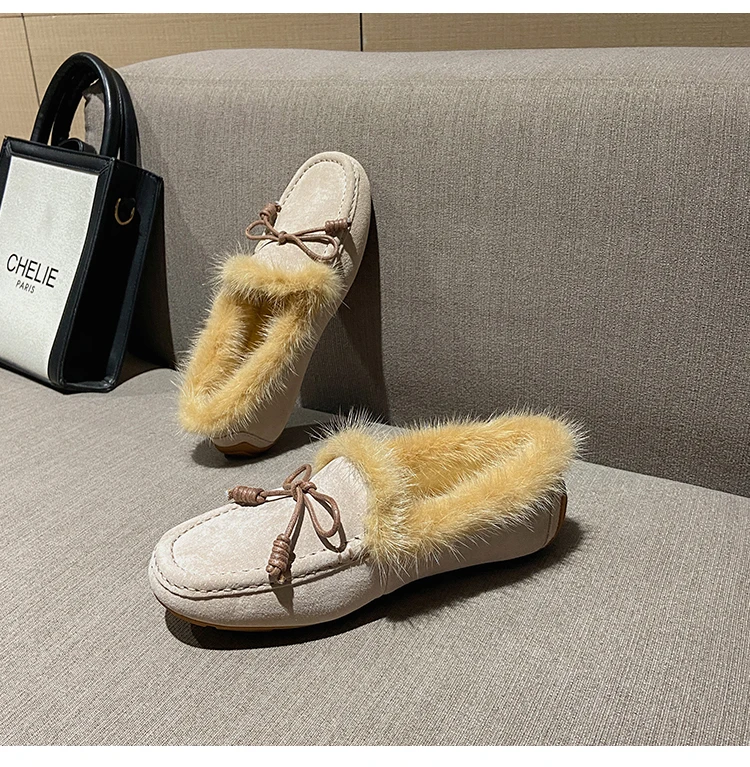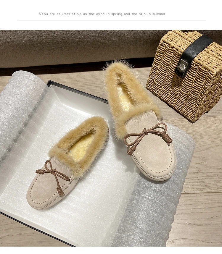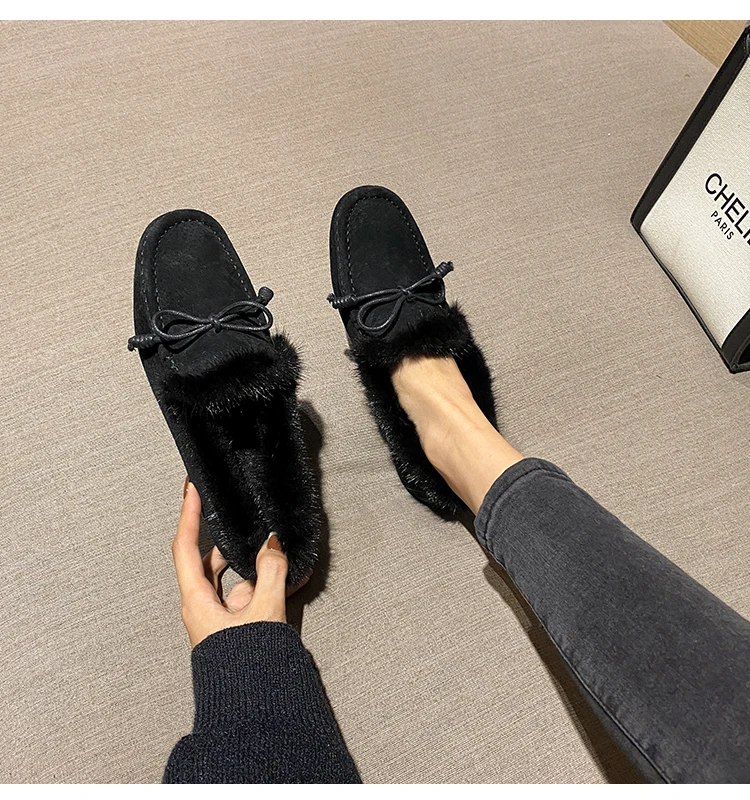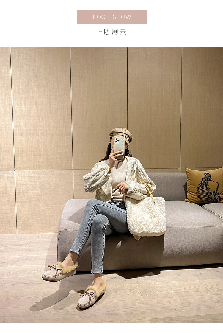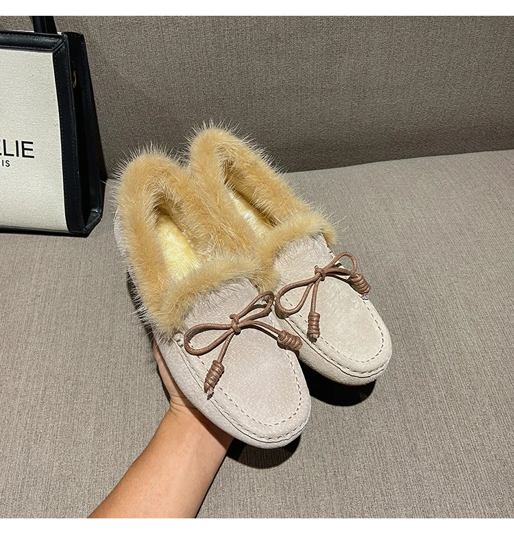 2023 Real Fur Moccasins Women Genuine Leather Flats Walking Shoes
