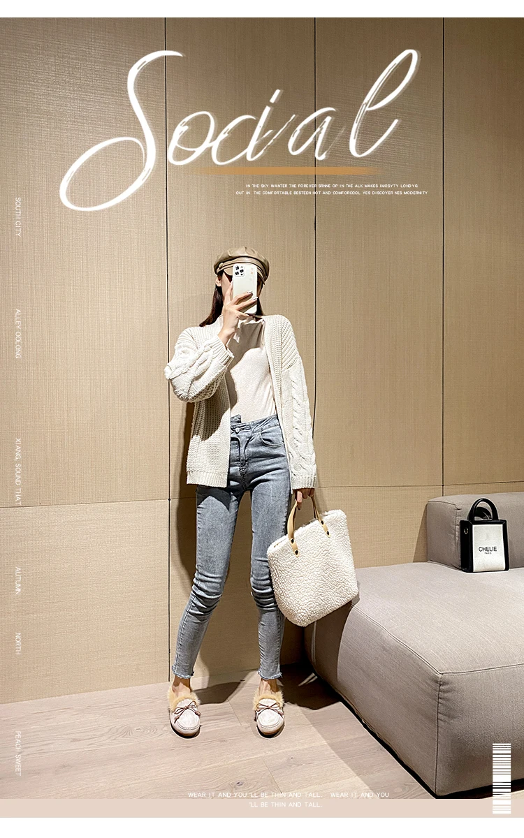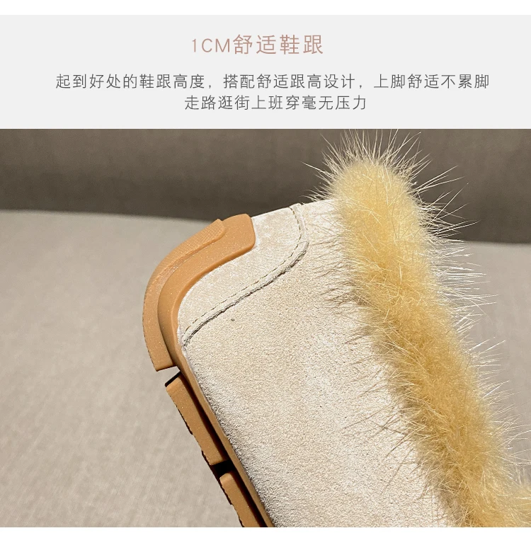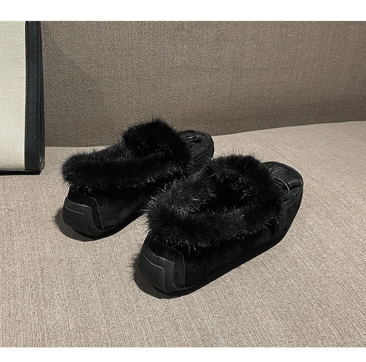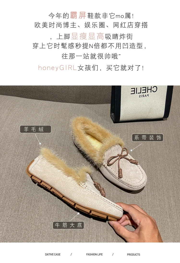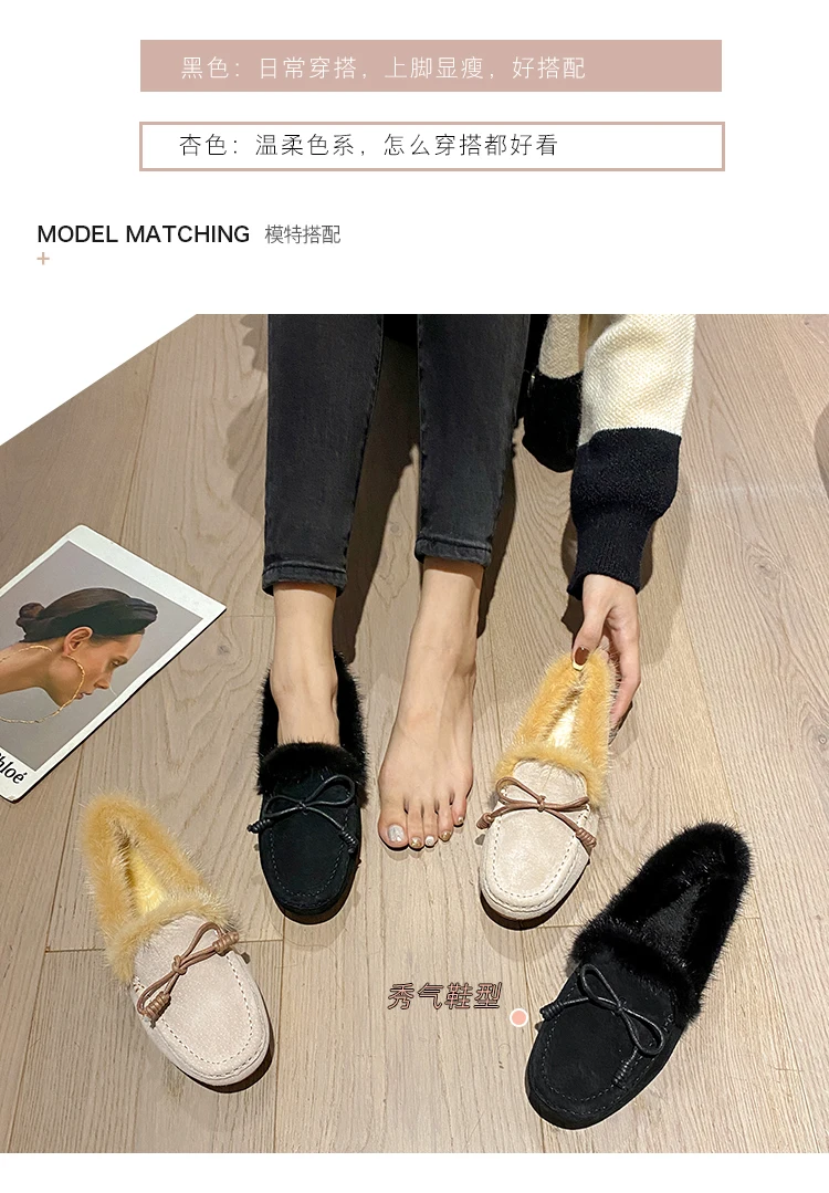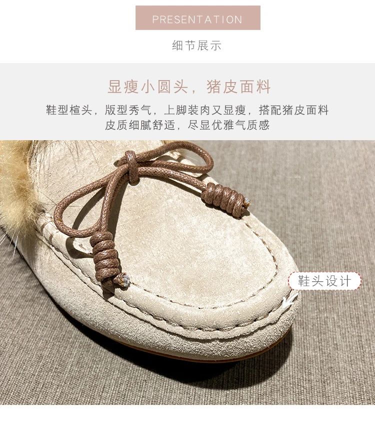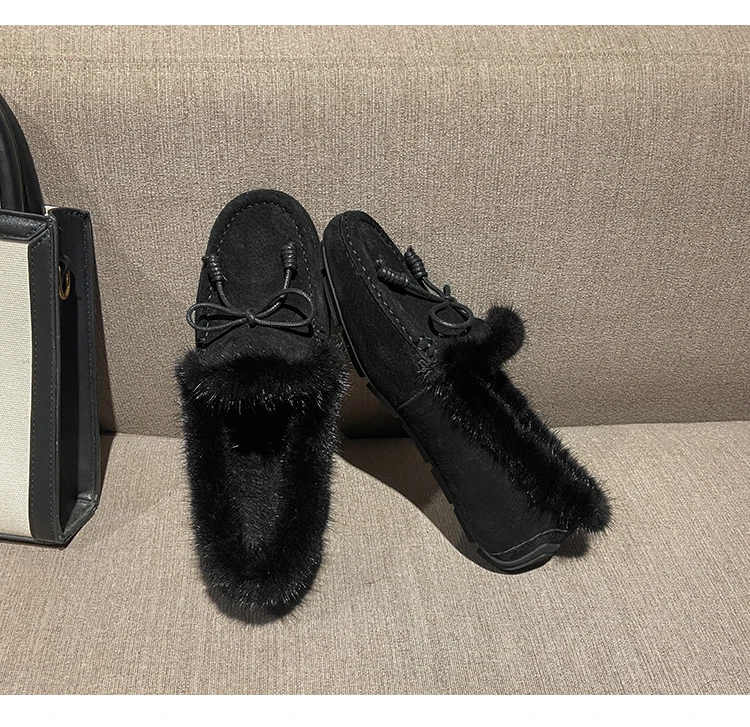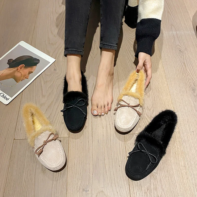 2023 Real Fur Moccasins Women Genuine Leather Flats Walking Shoes