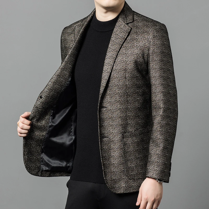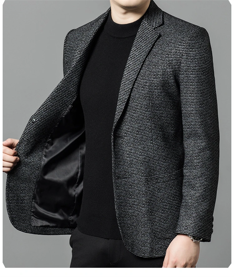 Classic Casual Sheepskin Blazers For Men Slim Fit Luxury Jacket Winter Quality Smooth Comfortable Pocket Leather Terno Masculino