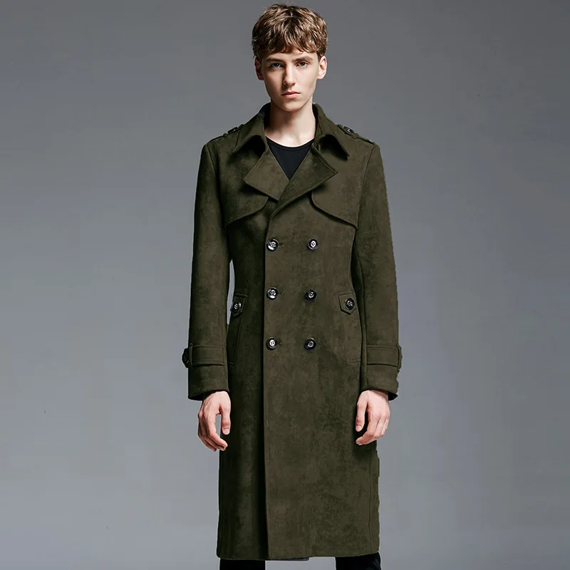 Classic Double Breasted X-Long Suede Men Overcoat Winter Male Long Trench Coat Windbreaker Plus Size Mens Poncho Cloak 5XL 6XL