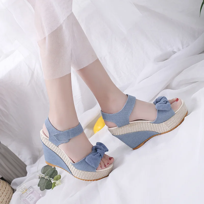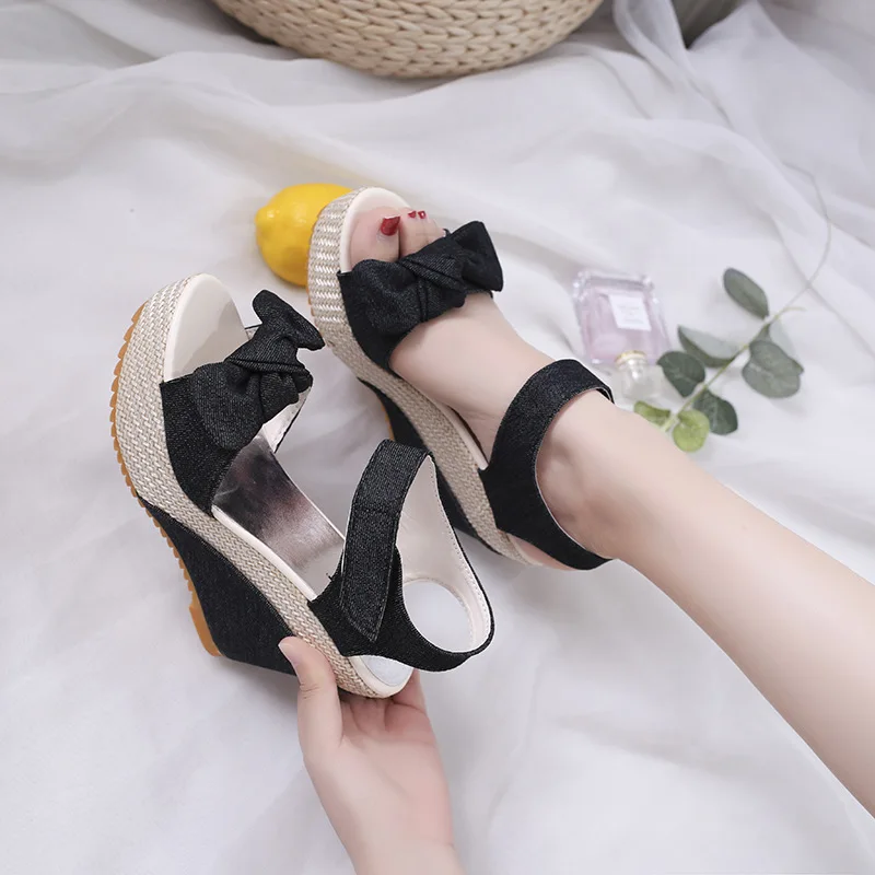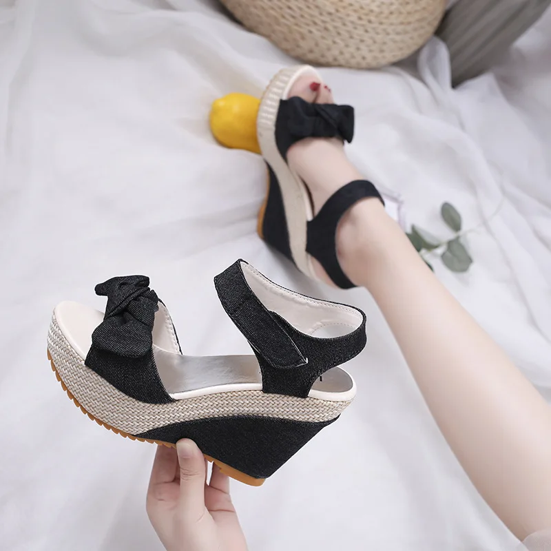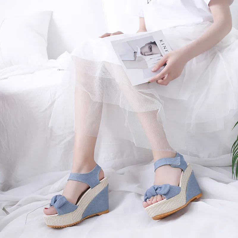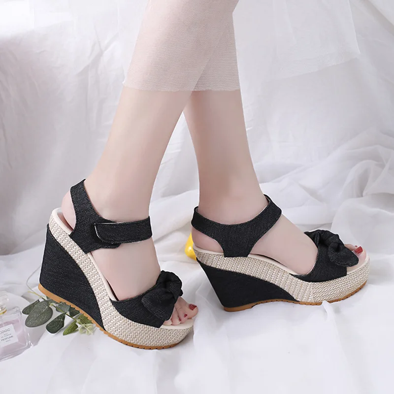 Classic new Summer Casual Sandals Women Wedges Sandals Pumps Ankle Bow Open Toe Fish Mouth Women Shoes Fashion Wedges Shoes