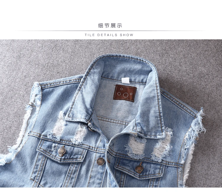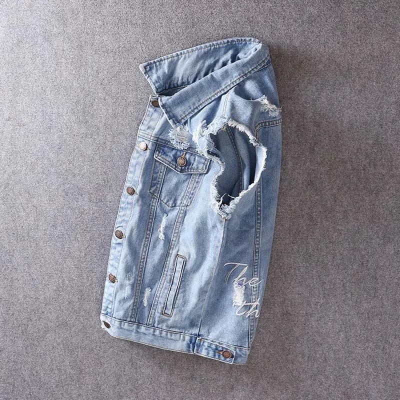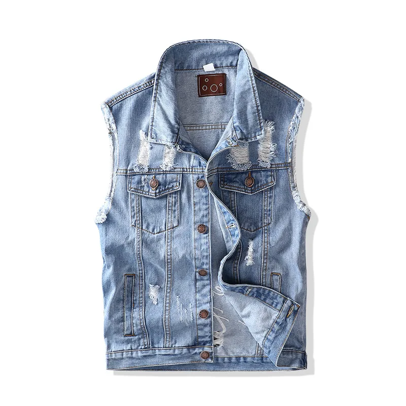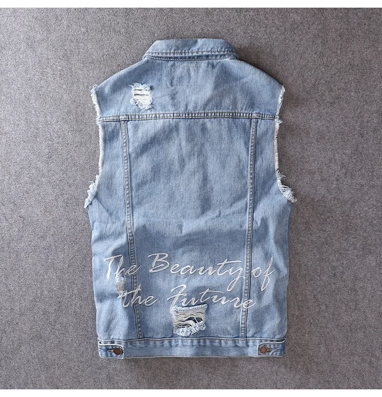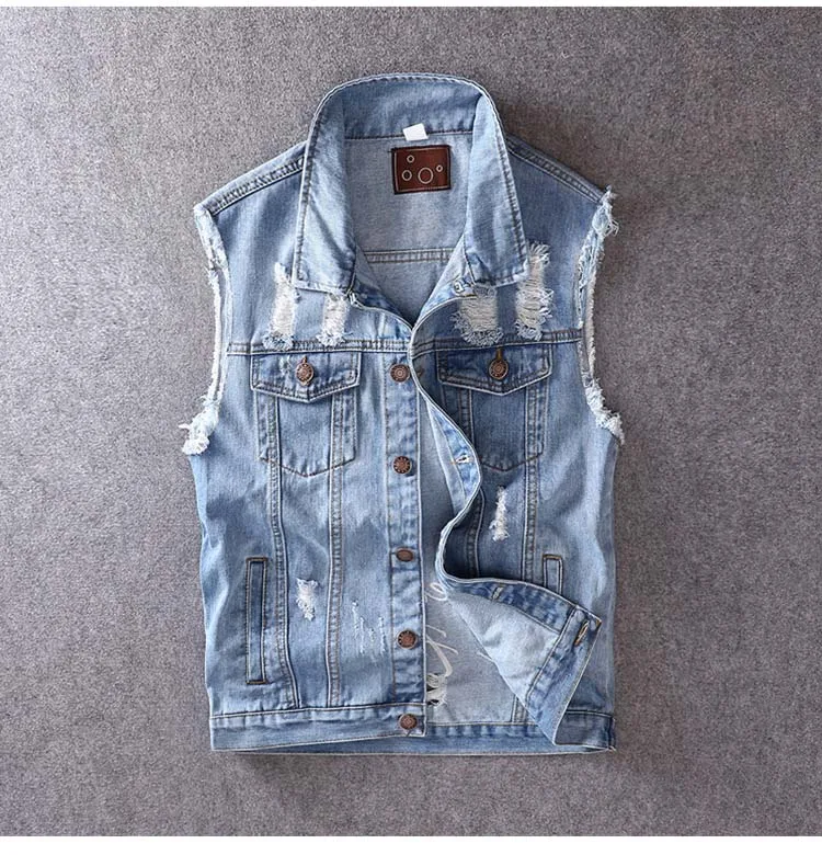 Classic Vintage Men’s Jeans Vest Sleeveless Jackets Patch Designs Rock Style Ripped Cowboy Frayed Denim Vests