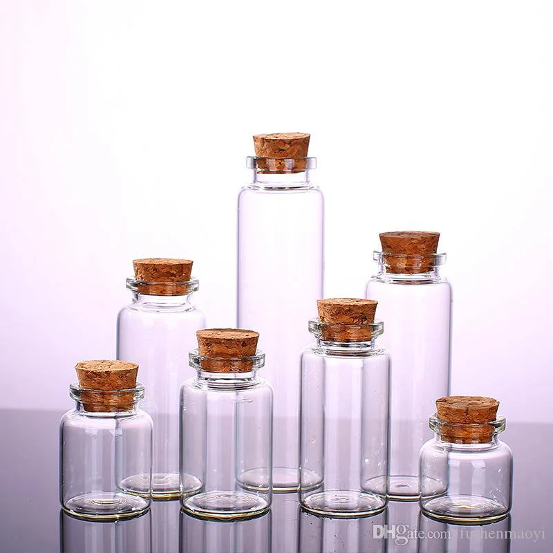 Clear Glass Bottle with Corks Vial Glass Jars Pendant Craft Projects DIY for Keepsakes 30mm Diameter